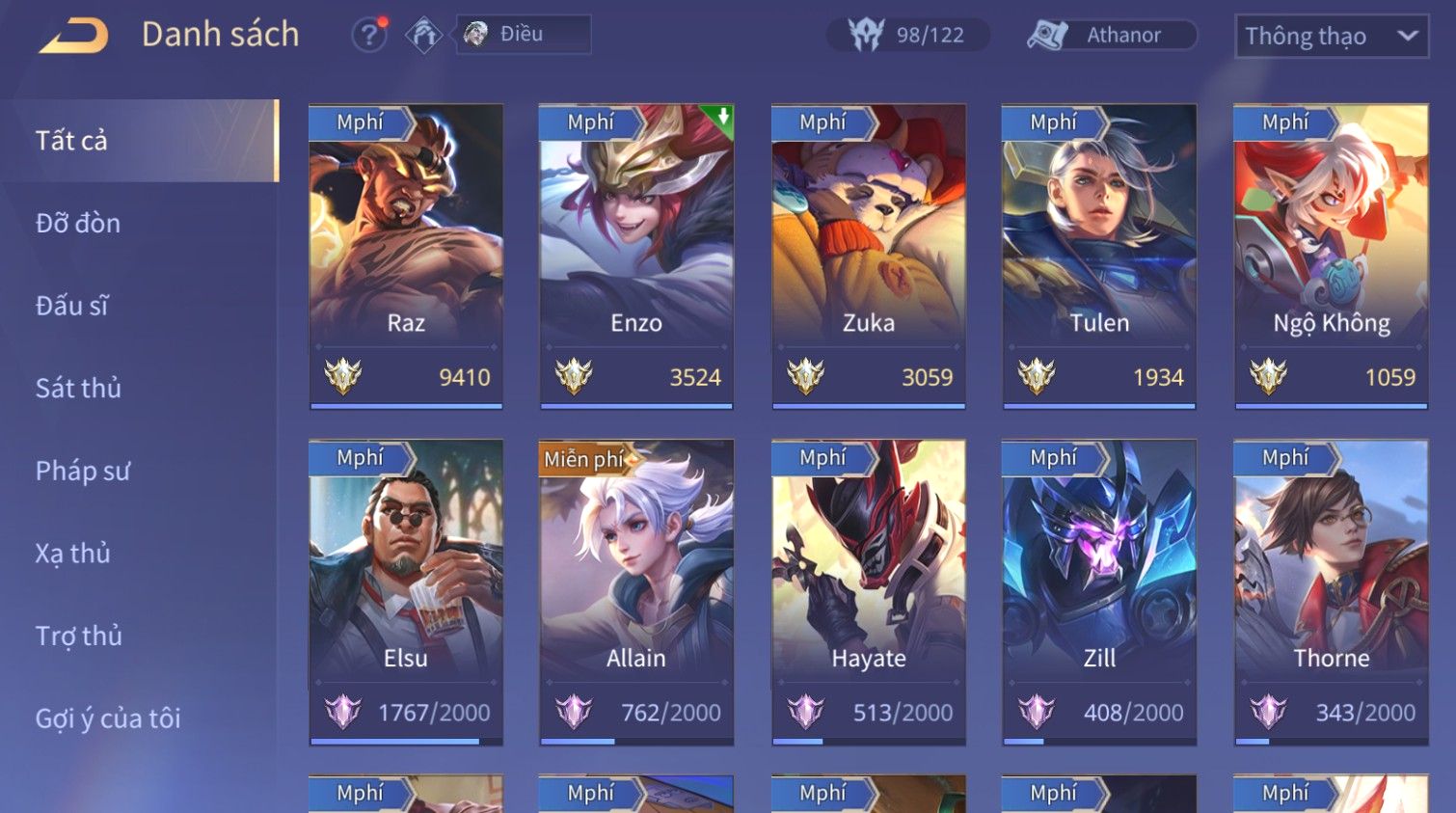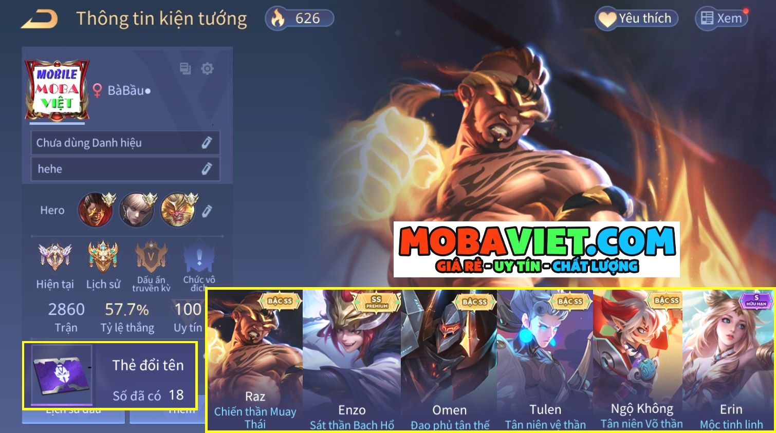Nổi bật: Skin: Raz Chiến Thần Muay Thái×Enzo Sát Thần Bạch Hổ×Omen Đao Phủ Tận Thế×Ngộ Không Tân Niên Võ Thần×Tulen Tân Niên Vệ Thần×