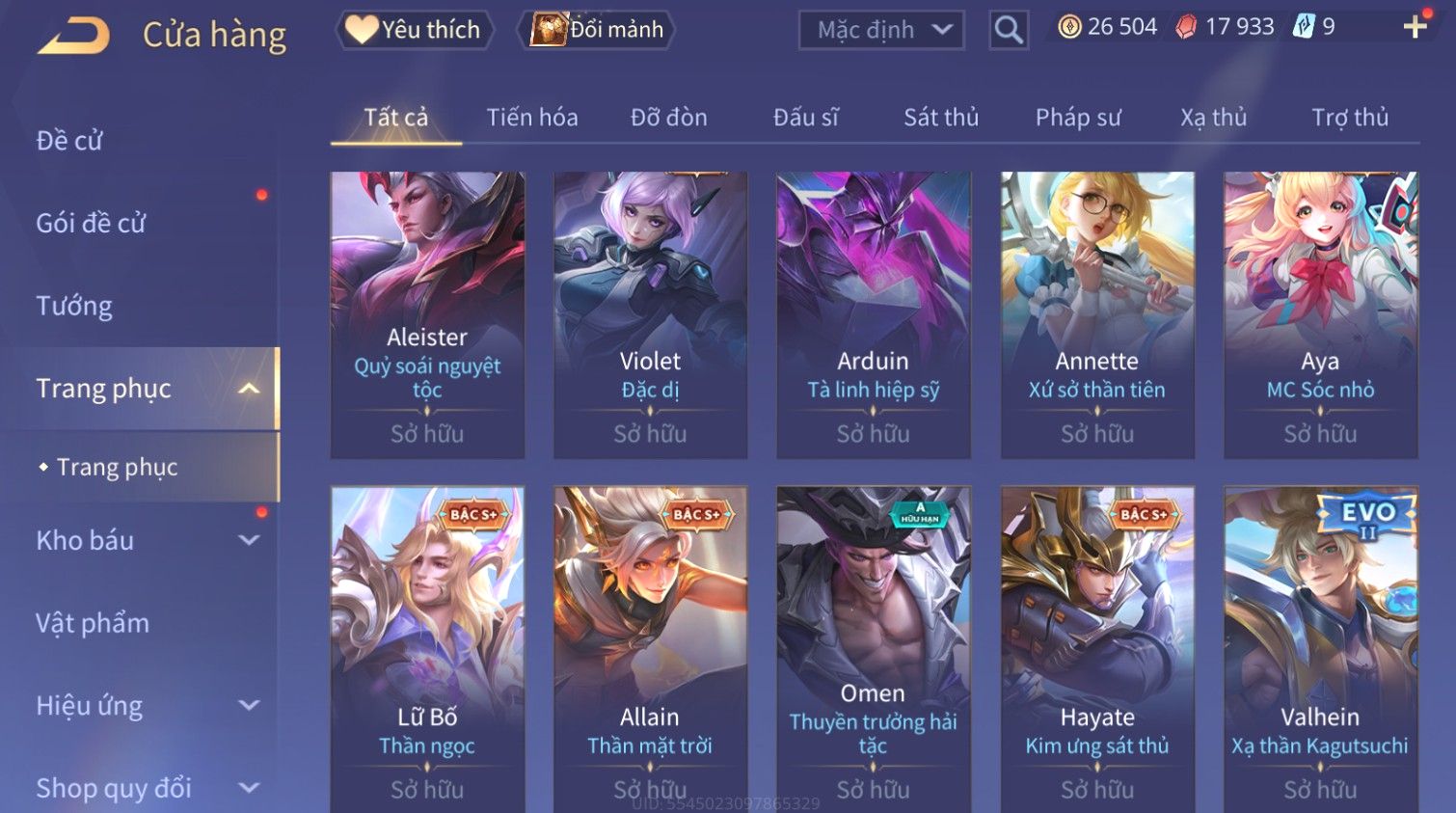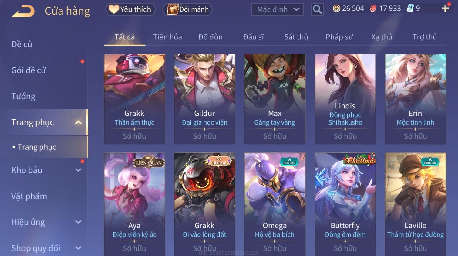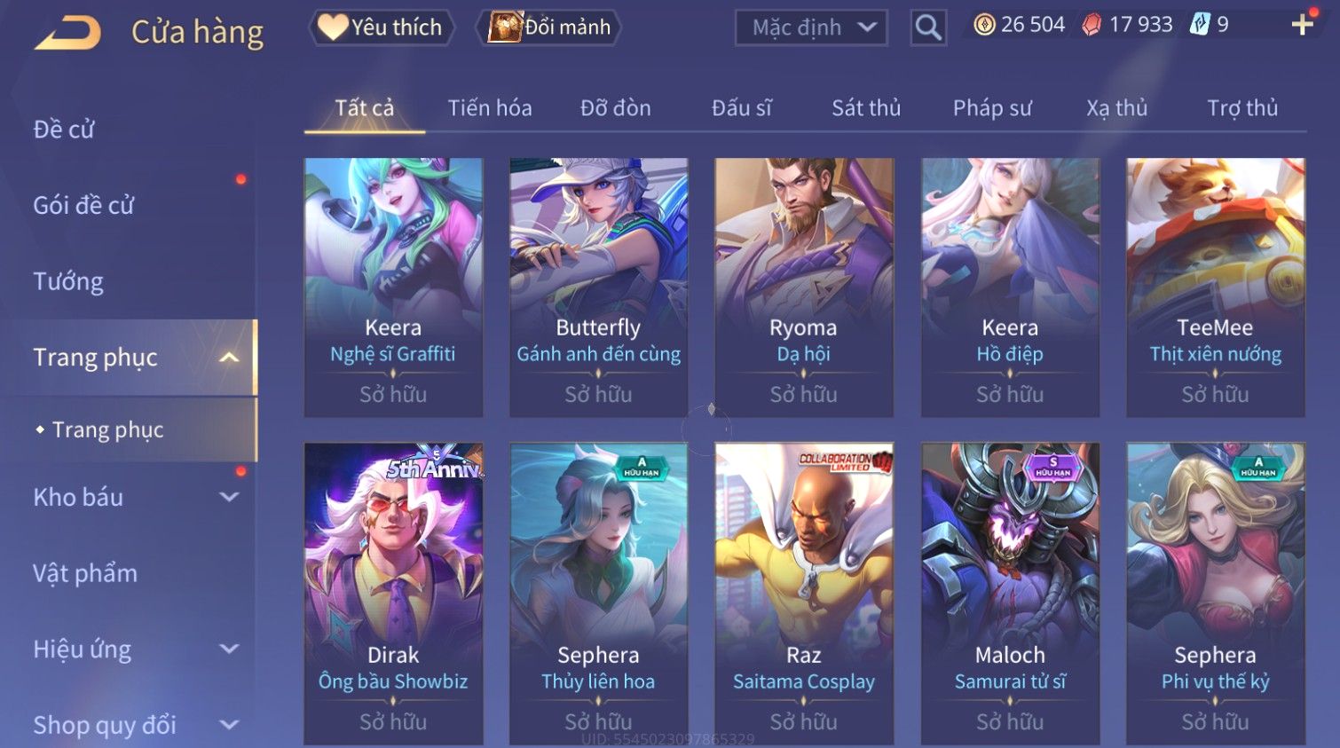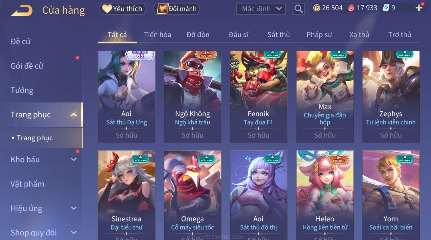 Nổi bật: Skin: Raz Gon×Capheny Tử Đinh Hương×Quillen Đặc Công Mãng Xà×Elsu Trấn Thiên Phi Hồ×Liliana Nguyệt Mị Ly×Aya Mc Sóc Nhỏ×Grakk Đi Vào Lòng Đất×Charlotte
