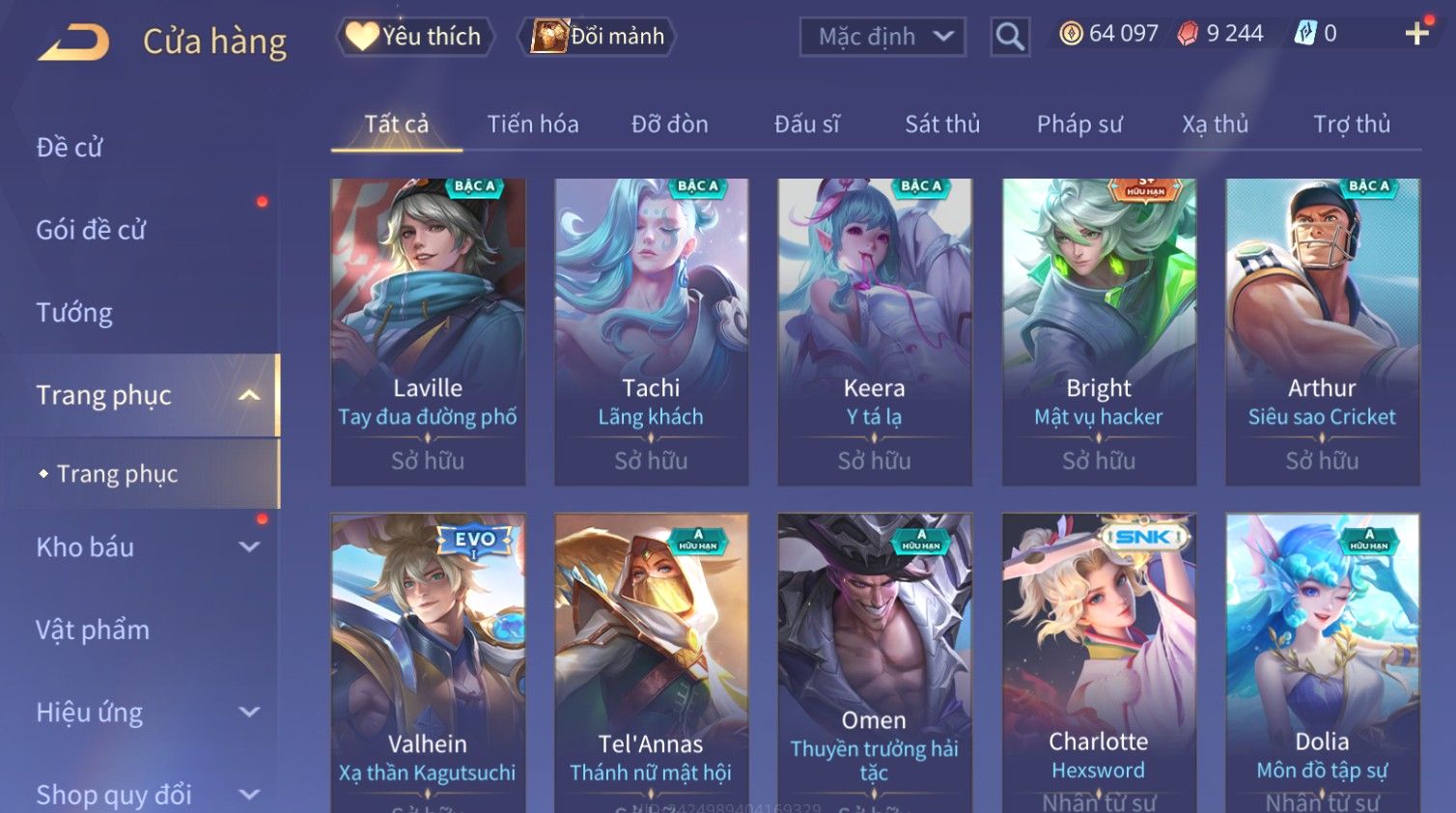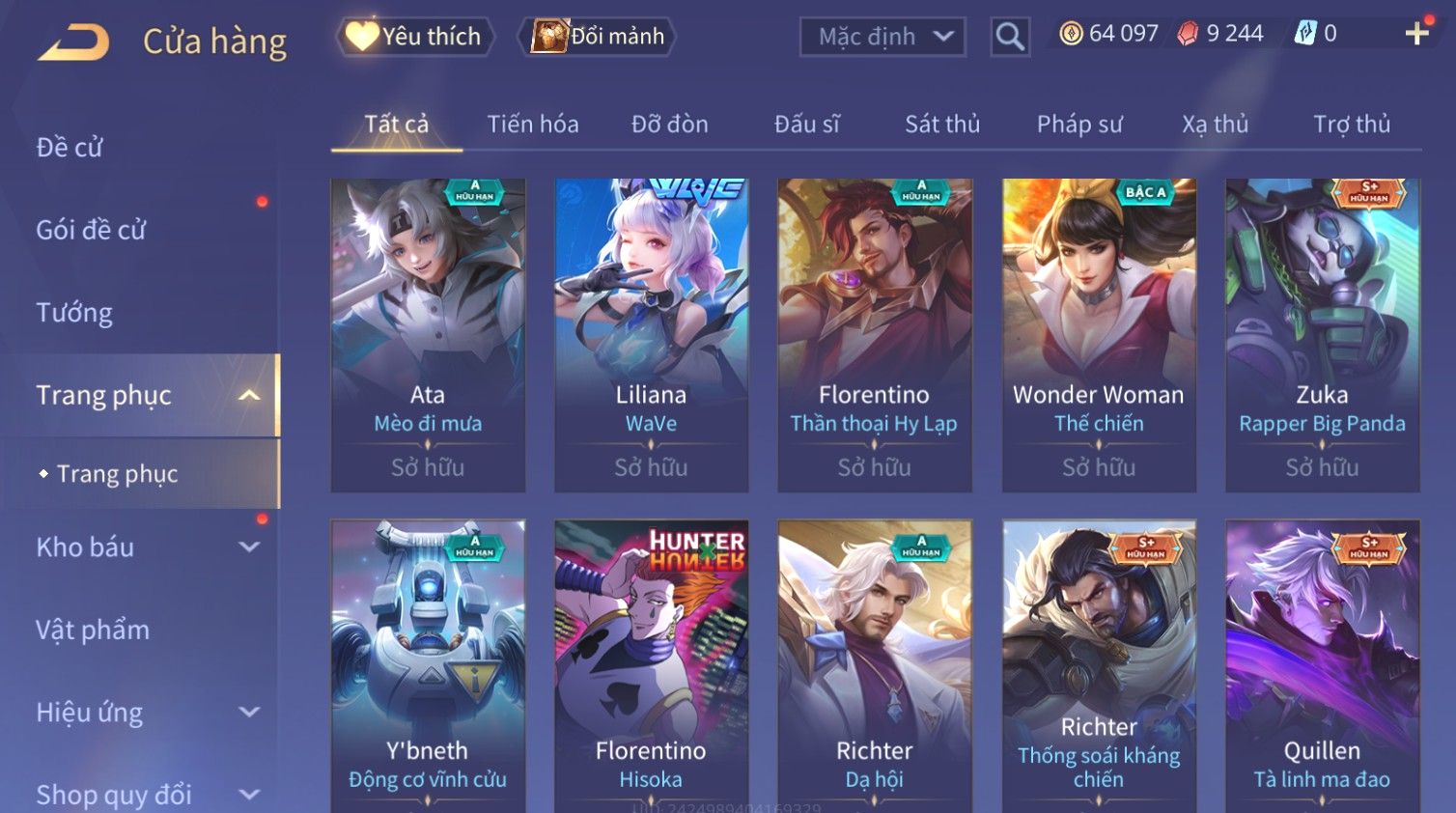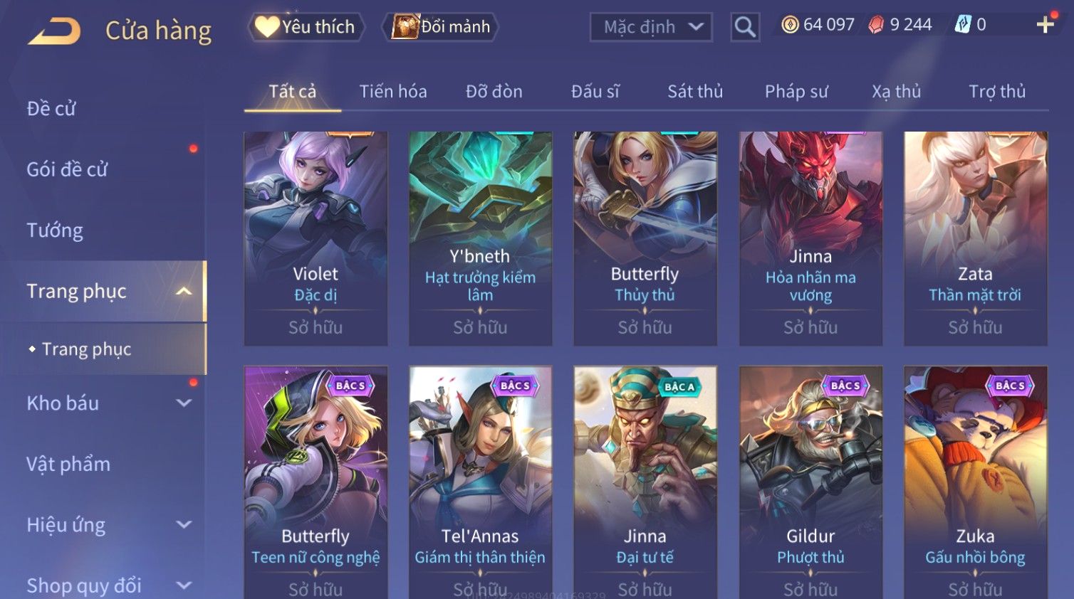Nổi bật: Skin: Raz Chiến Thần Muay Thái×Lauriel Tinh Vân Sứ×Violet Tiệc Bãi Biển×Liliana WaVe×Butterfly Nữ Quái Nổi Loạn×Richter Thống Soái Kháng Chiến×Volkath Ma Kỵ Tử Sĩ×Ryoma Thanh Long Bang Chủ×Full Ngọc, Nhiều Skin Đẹp