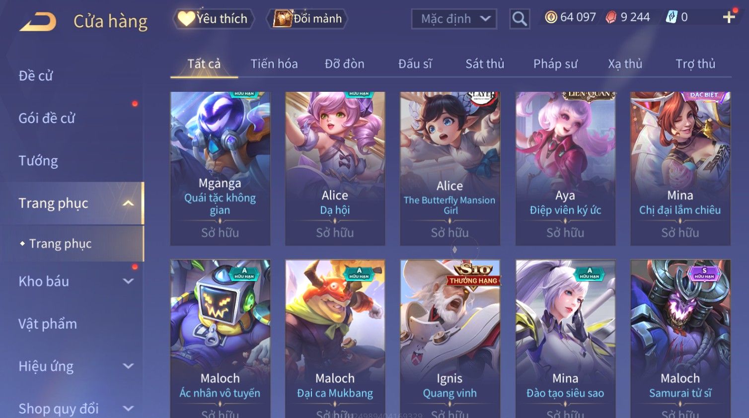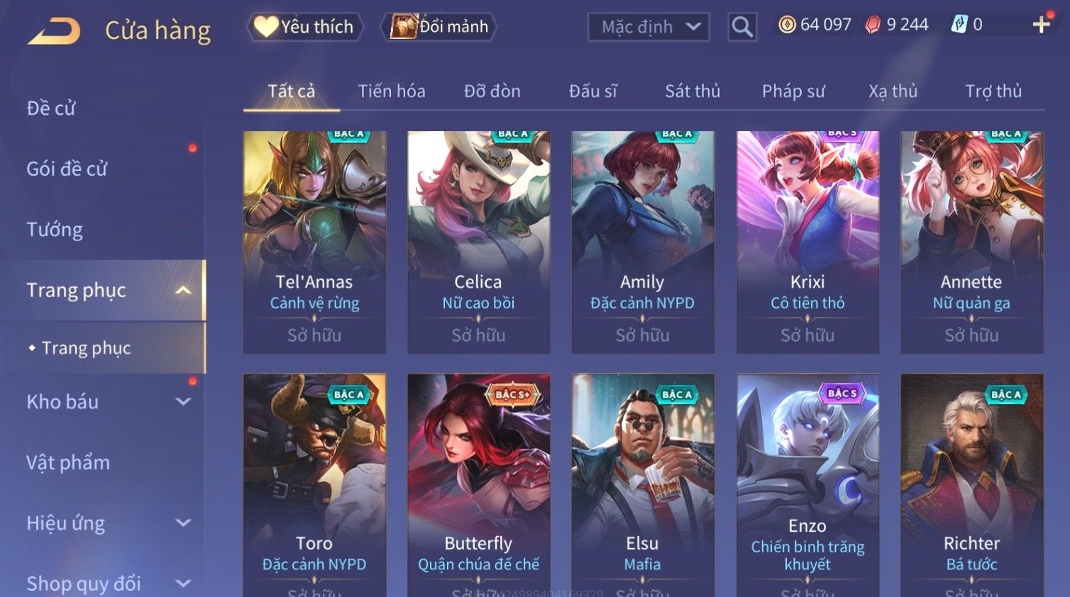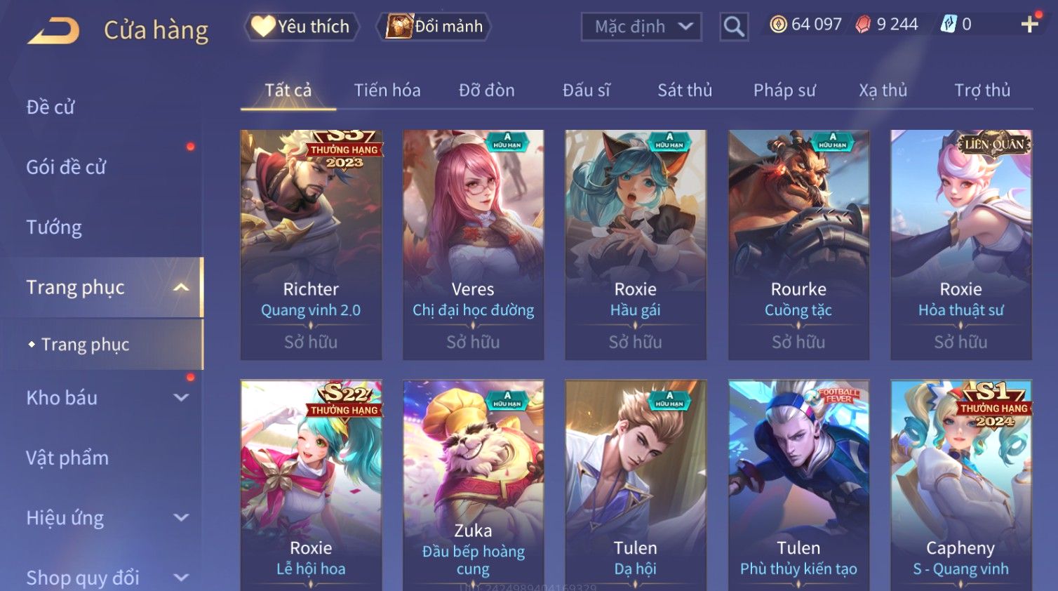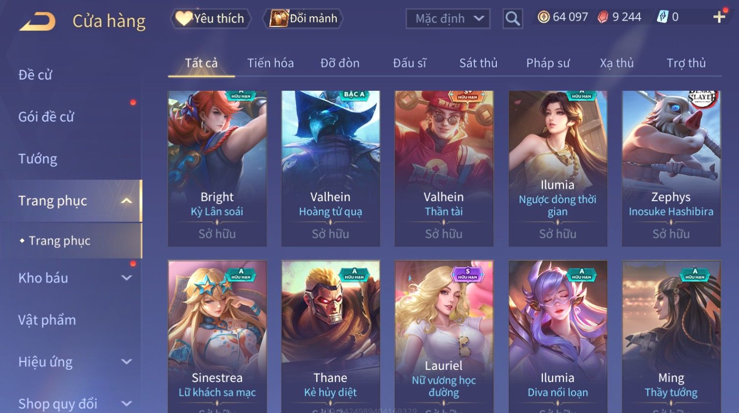 Nổi bật: Skin: Raz Chiến Thần Muay Thái×Lauriel Tinh Vân Sứ×Violet Tiệc Bãi Biển×Liliana WaVe×Butterfly Nữ Quái Nổi Loạn×Richter Thống Soái Kháng Chiến×Volkath Ma Kỵ Tử Sĩ×Ryoma Thanh Long Bang Chủ×Full Ngọc, Nhiều Skin Đẹp