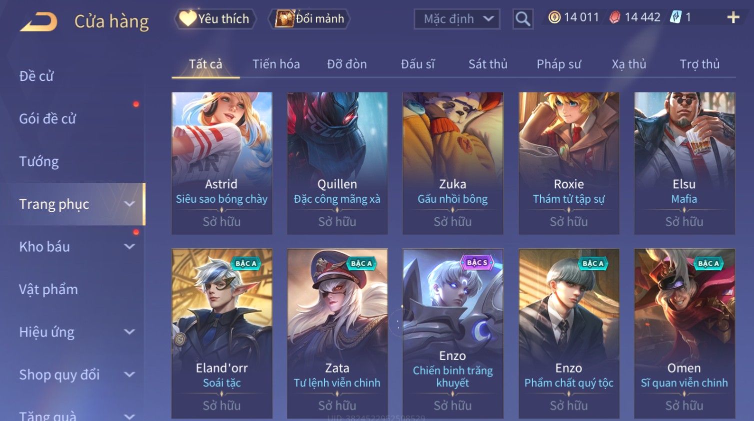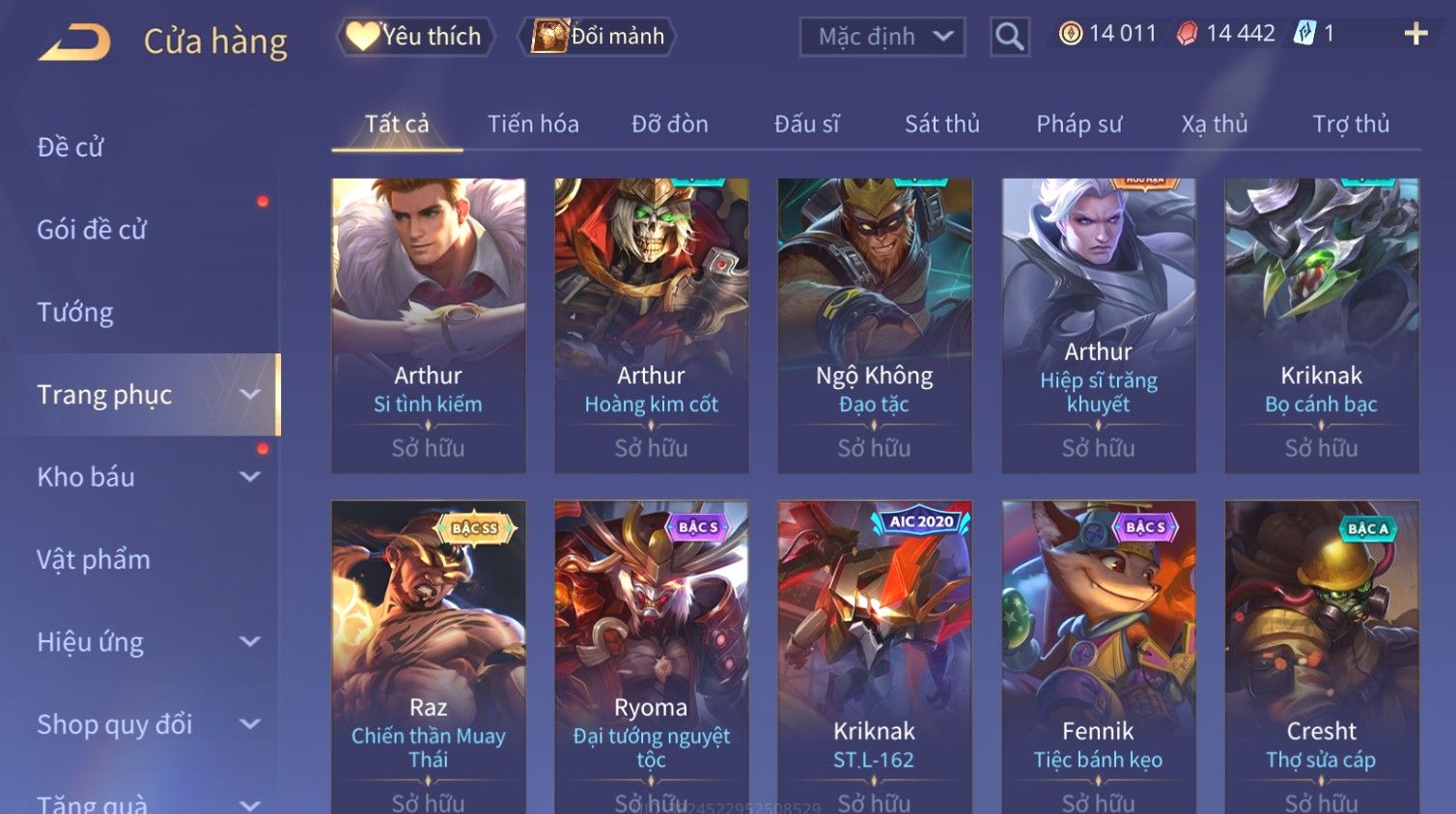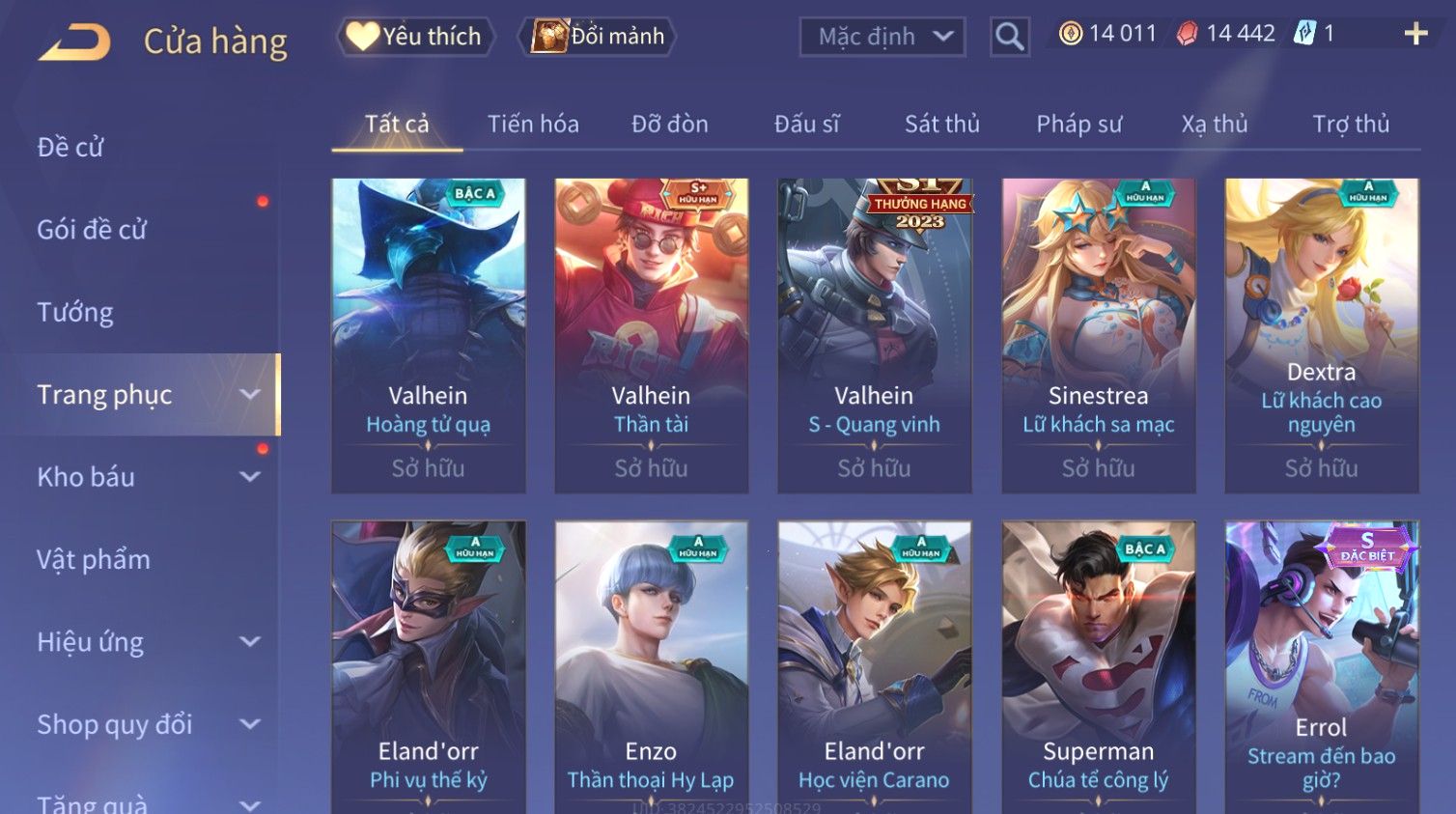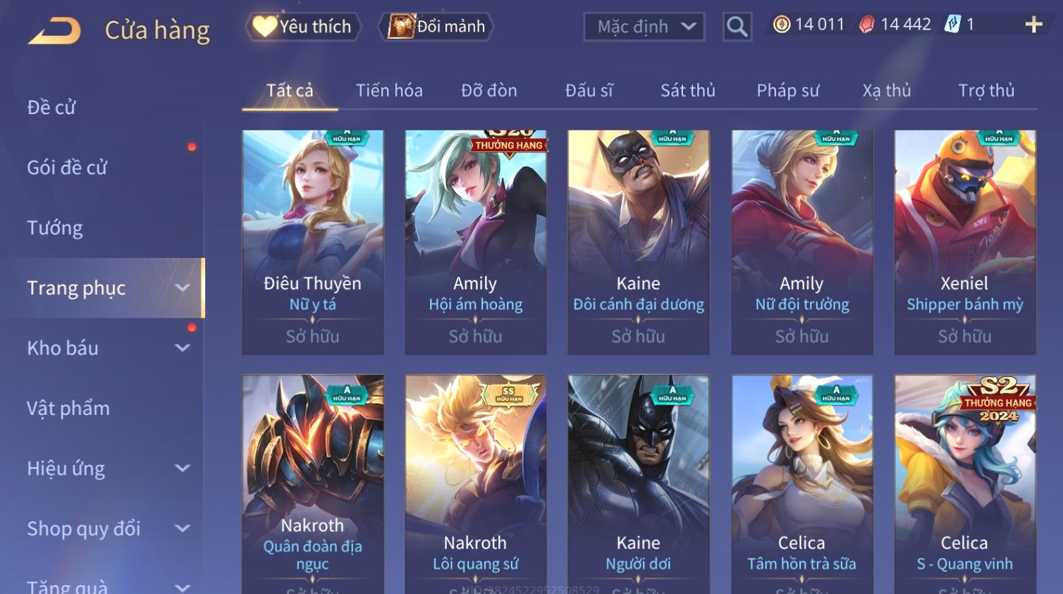 Nổi bật: Skin: Nakroth Lôi Quang Sứ×Liliana Tiểu Thơ Anh Đào×Zephys Siêu Việt×Quillen Đặc Công Mãng Xà×Violet Thần Long Tỷ Tỷ×Raz Chiến Thần Muay Thái×Lauriel Thánh Quang Sứ×Zata Sứ Giả Tinh Hệ×Florentino Giám Sát Tinh Hệ×Veres Gián Điệp Tinh Hệ×Ryoma Thanh Long Bang Chủ×Airi Kiemono×Butterfly Nữ Quái Nổi Loạn×