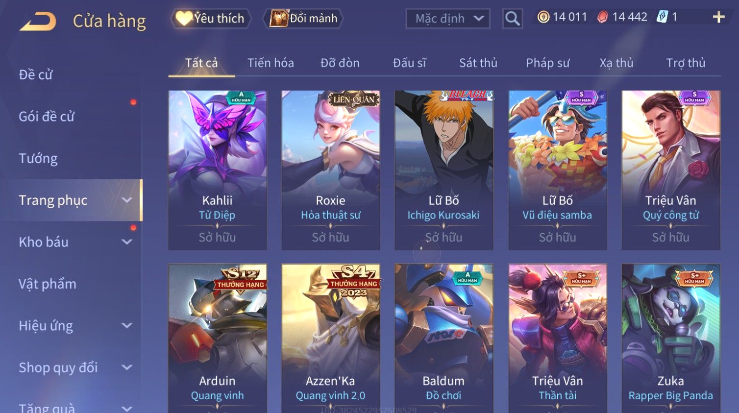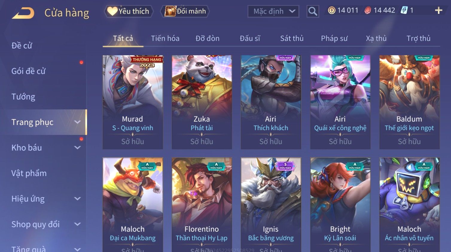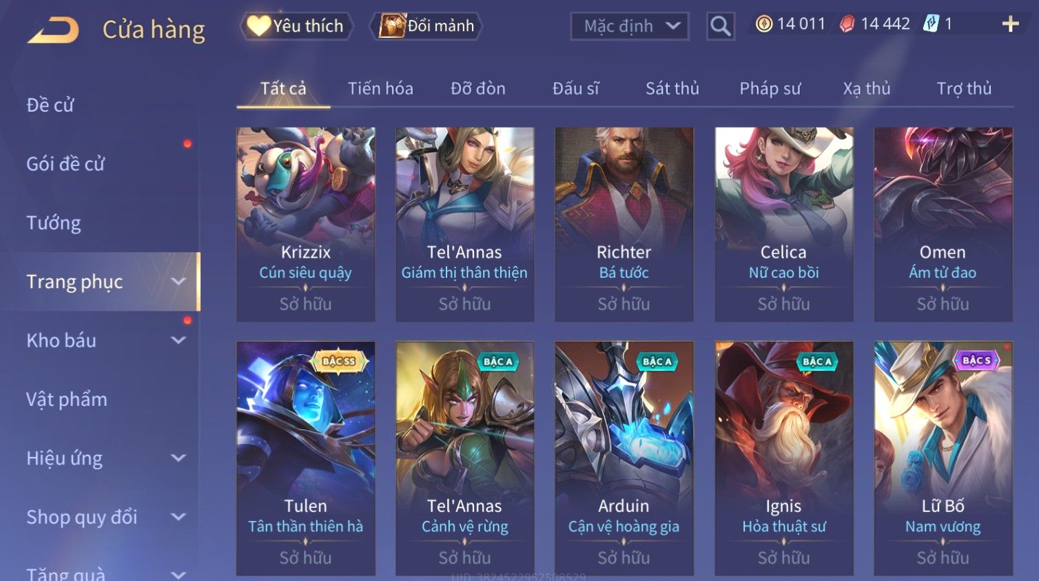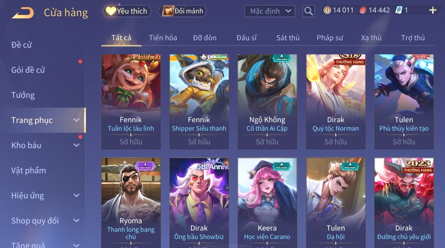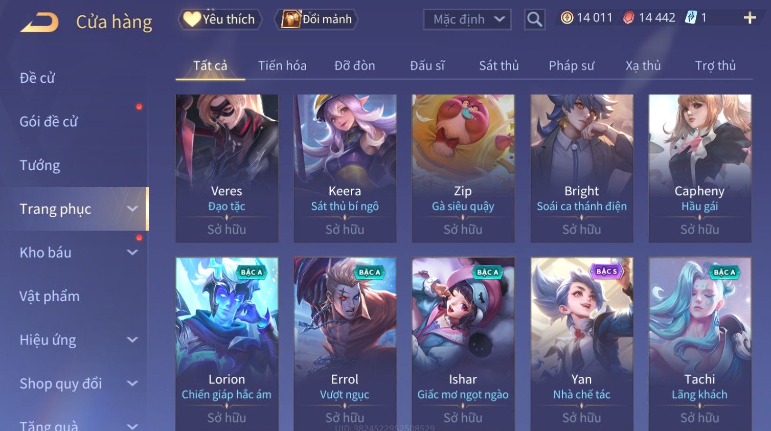 Nổi bật: Skin: Nakroth Lôi Quang Sứ×Liliana Tiểu Thơ Anh Đào×Zephys Siêu Việt×Quillen Đặc Công Mãng Xà×Violet Thần Long Tỷ Tỷ×Raz Chiến Thần Muay Thái×Lauriel Thánh Quang Sứ×Zata Sứ Giả Tinh Hệ×Florentino Giám Sát Tinh Hệ×Veres Gián Điệp Tinh Hệ×Ryoma Thanh Long Bang Chủ×Airi Kiemono×Butterfly Nữ Quái Nổi Loạn×