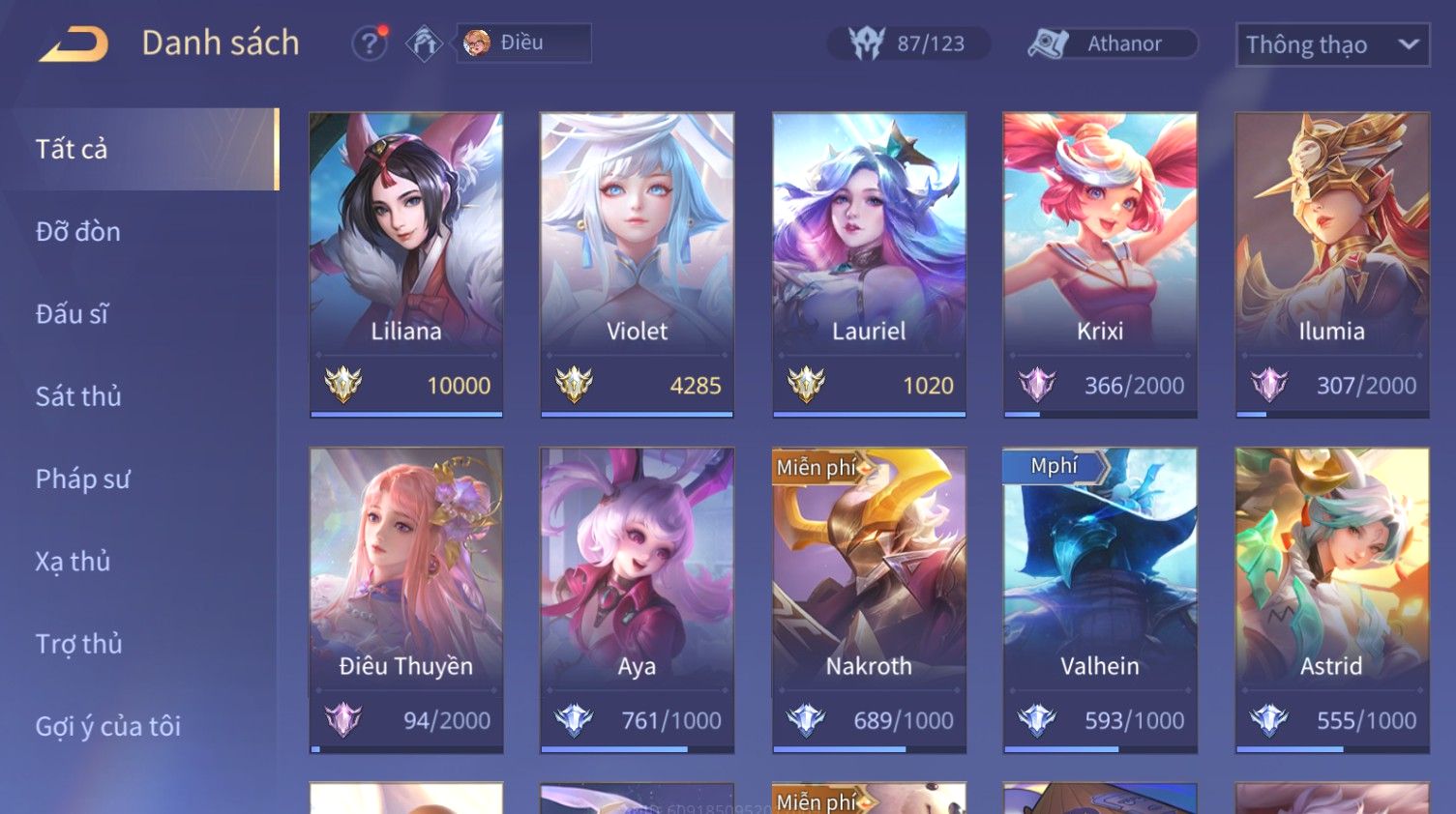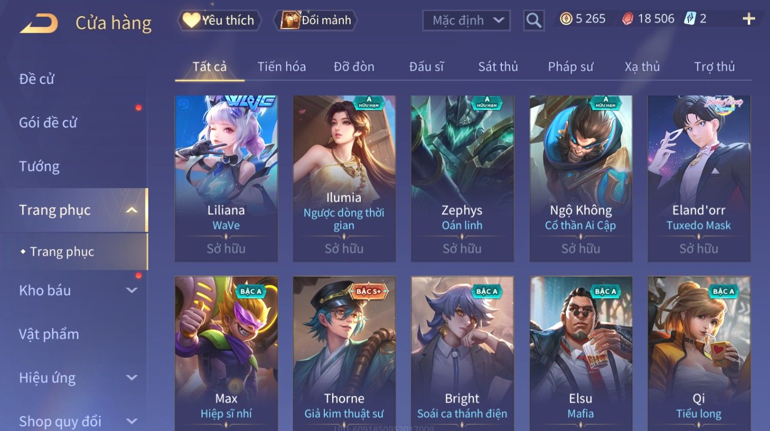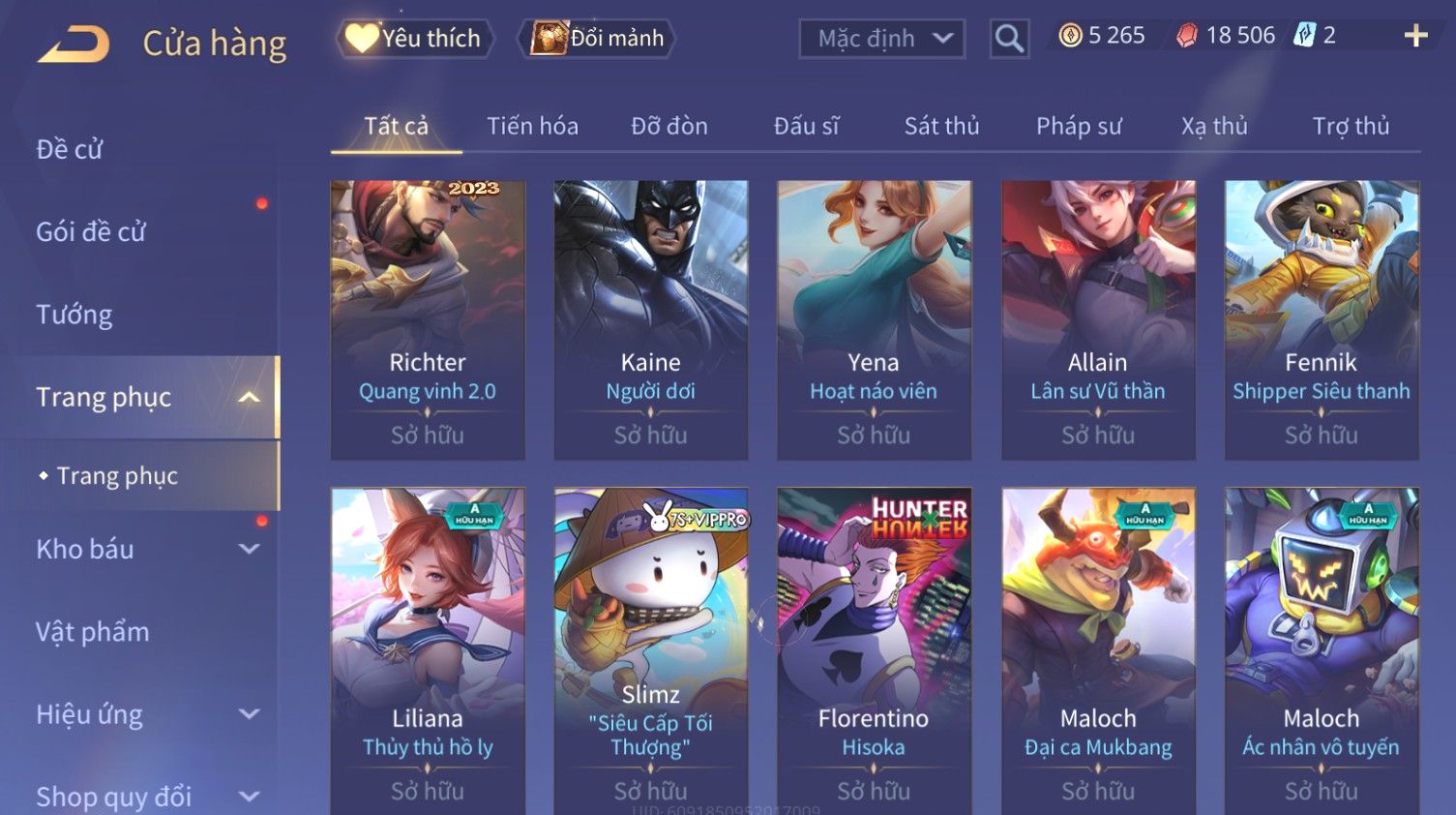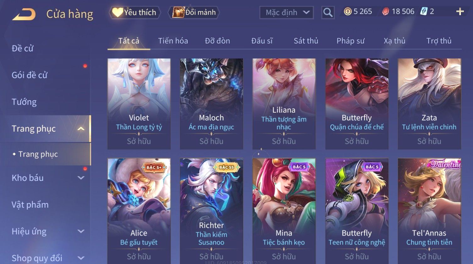 Nổi bật: Skin: Yena WaVe×Liliana WaVe×Violet Thần Long Tỷ Tỷ×Richter Thần Kiếm Susanoo×Điêu Thuyền Thất Tịch Tiên Tử×Lauriel Tinh Vân Sứ×Eland'orr Tuxedo Mask×Full Ngọc, Nhiều Skin Đẹp