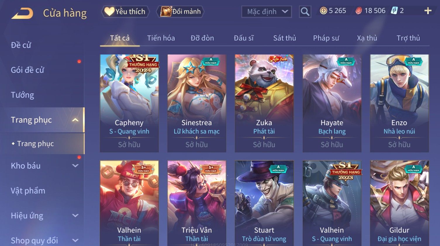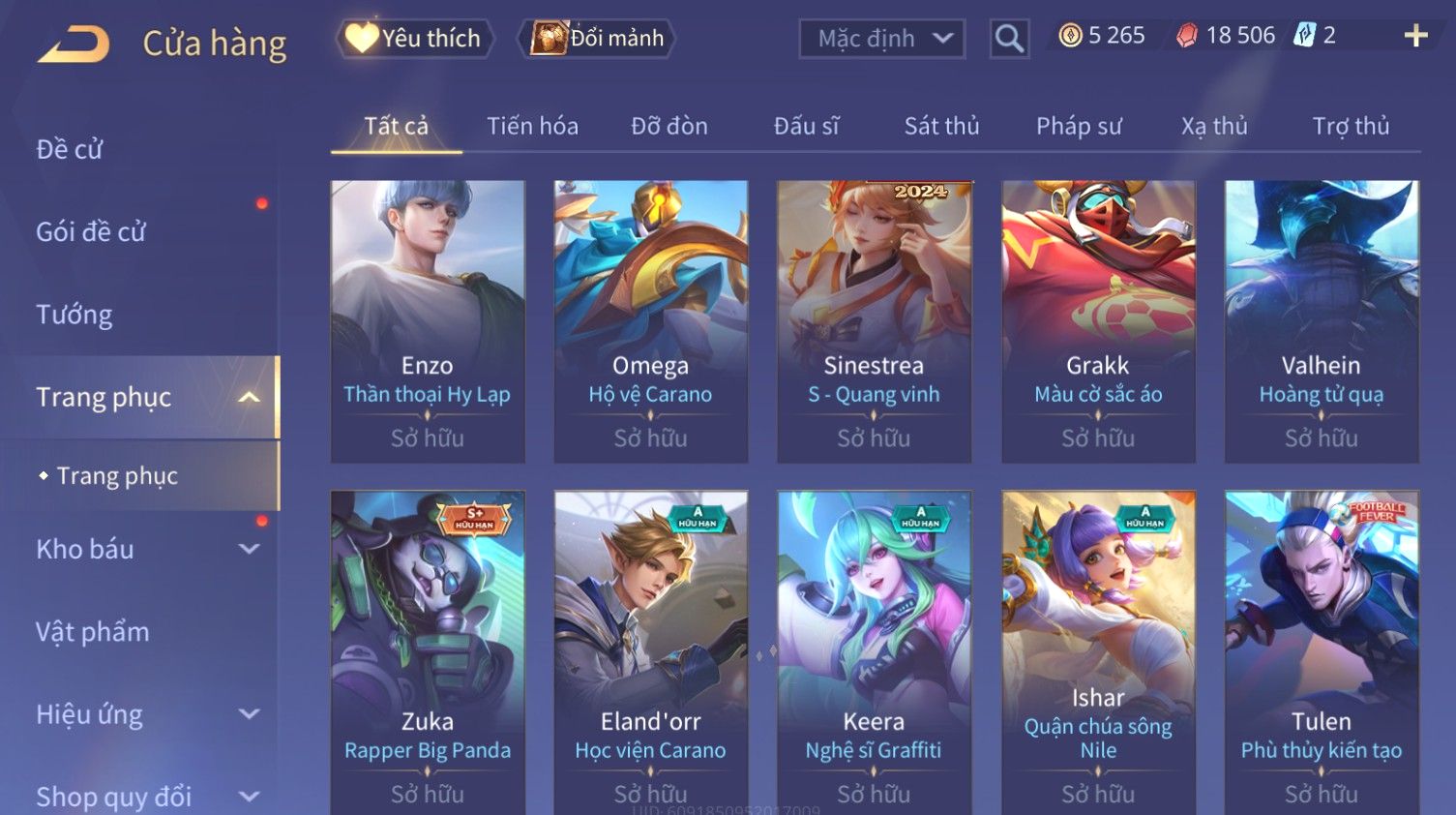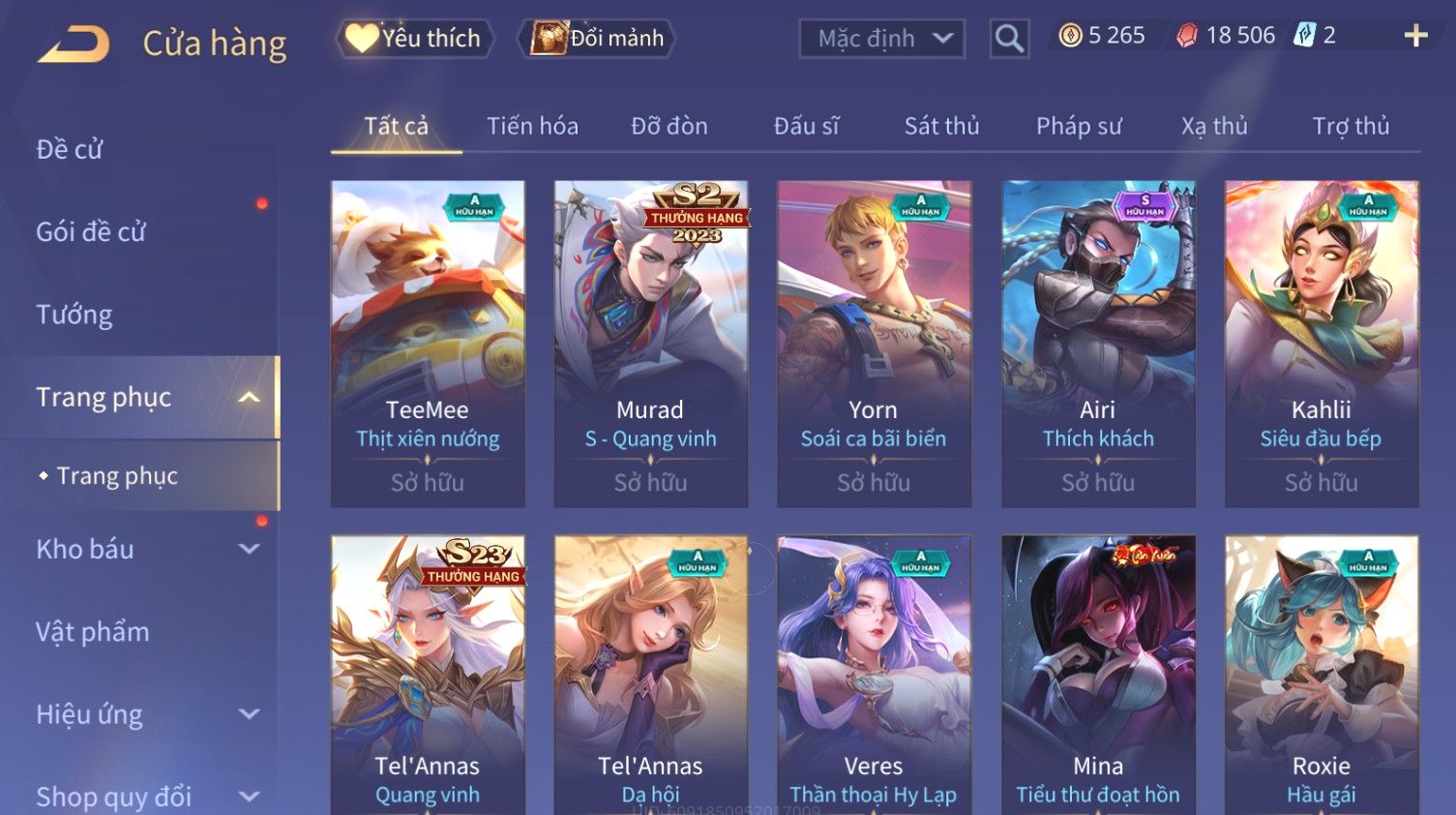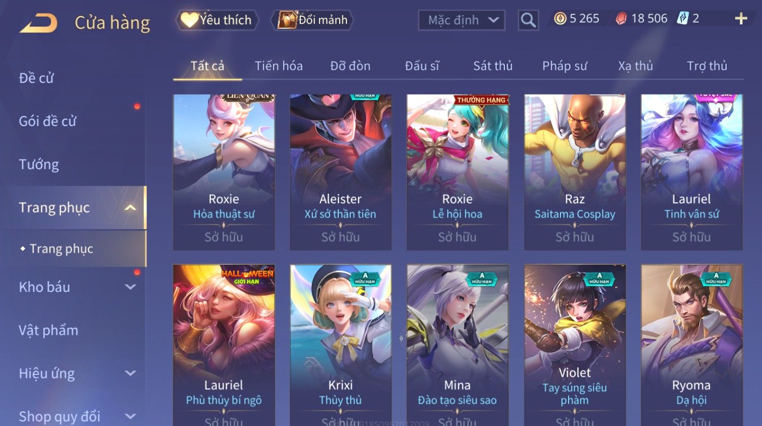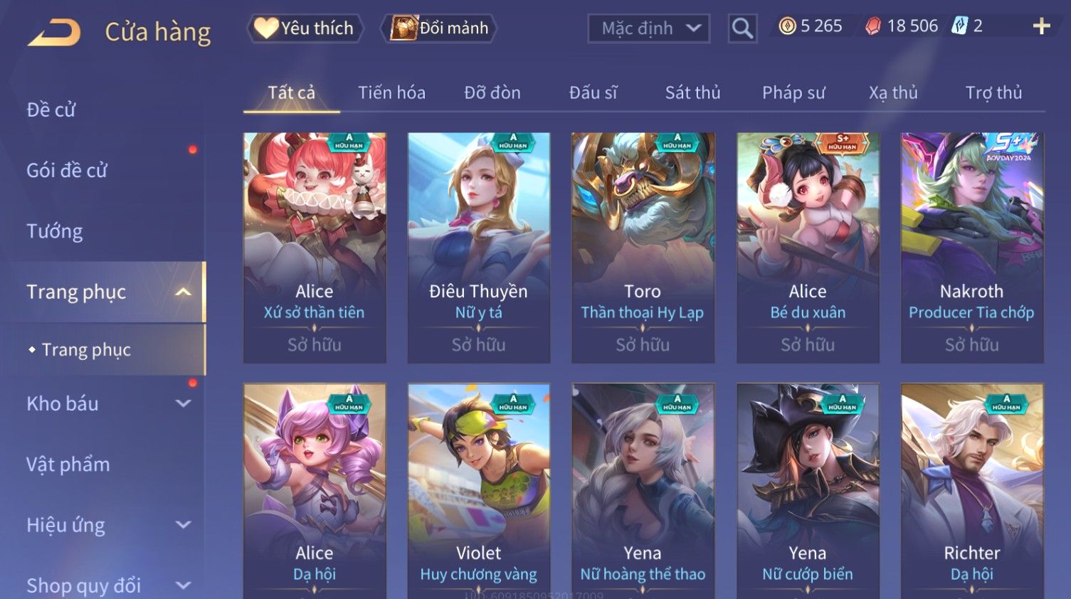 Nổi bật: Skin: Yena WaVe×Liliana WaVe×Violet Thần Long Tỷ Tỷ×Richter Thần Kiếm Susanoo×Điêu Thuyền Thất Tịch Tiên Tử×Lauriel Tinh Vân Sứ×Eland'orr Tuxedo Mask×Full Ngọc, Nhiều Skin Đẹp