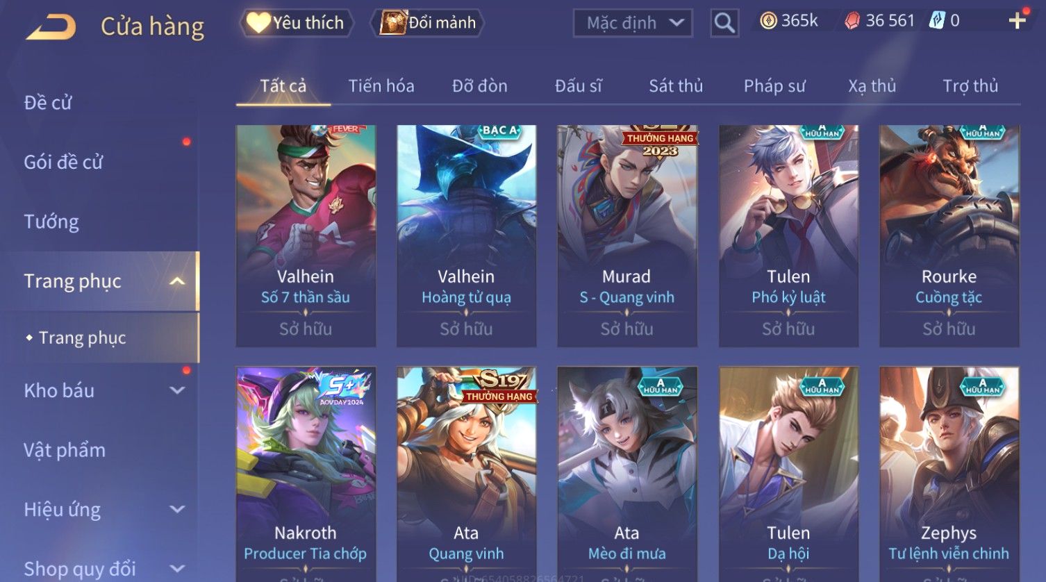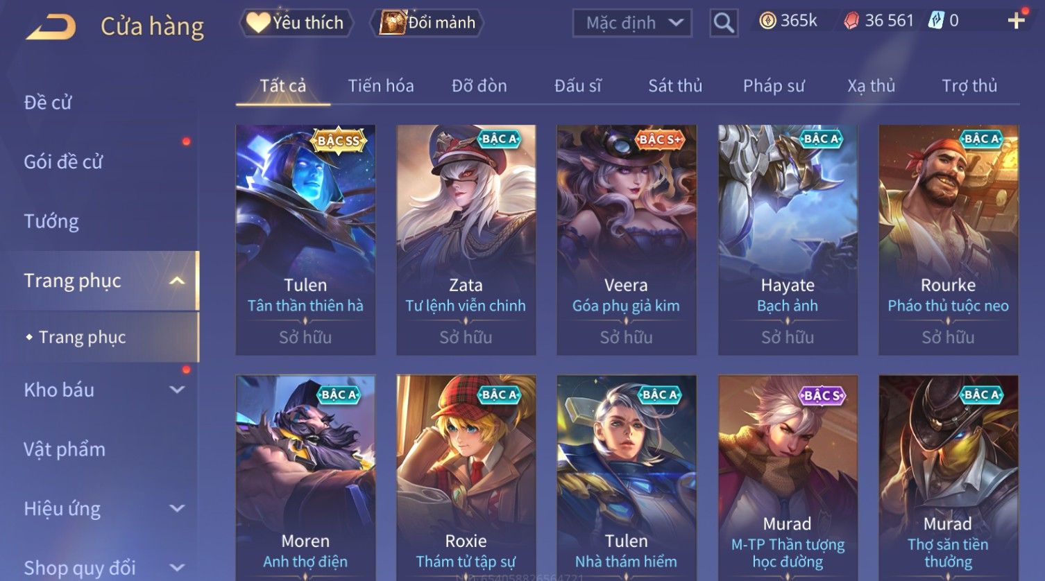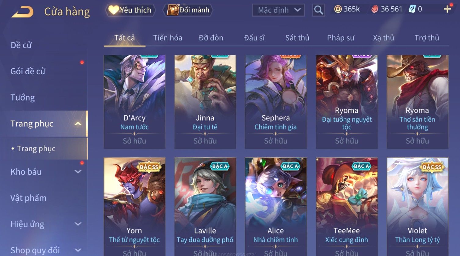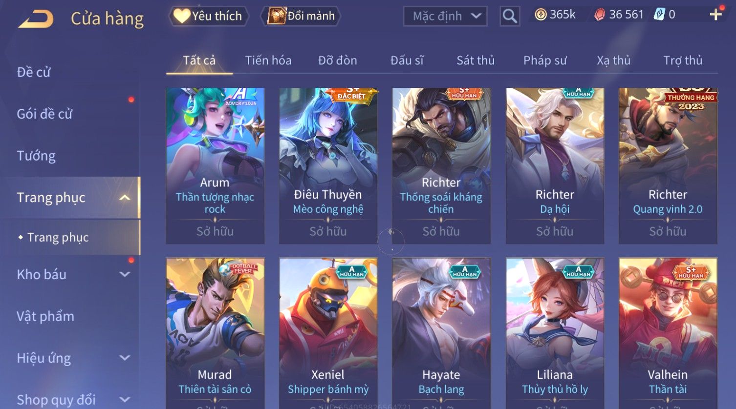 Nổi bật: Skin: Violet Tiệc Bãi Biển×Violet Thần Long Tỷ Tỷ×Richter Thần Kiếm Susanoo×Bijan Hoàng Kim Cơ Giáp×Valhein Đệ Nhất Thần Thám×Capheny Kimono×Lauriel Thánh Quang Sứ×Airi Kiemono×Full Ngọc, Nhiều Skin SS Đẹp