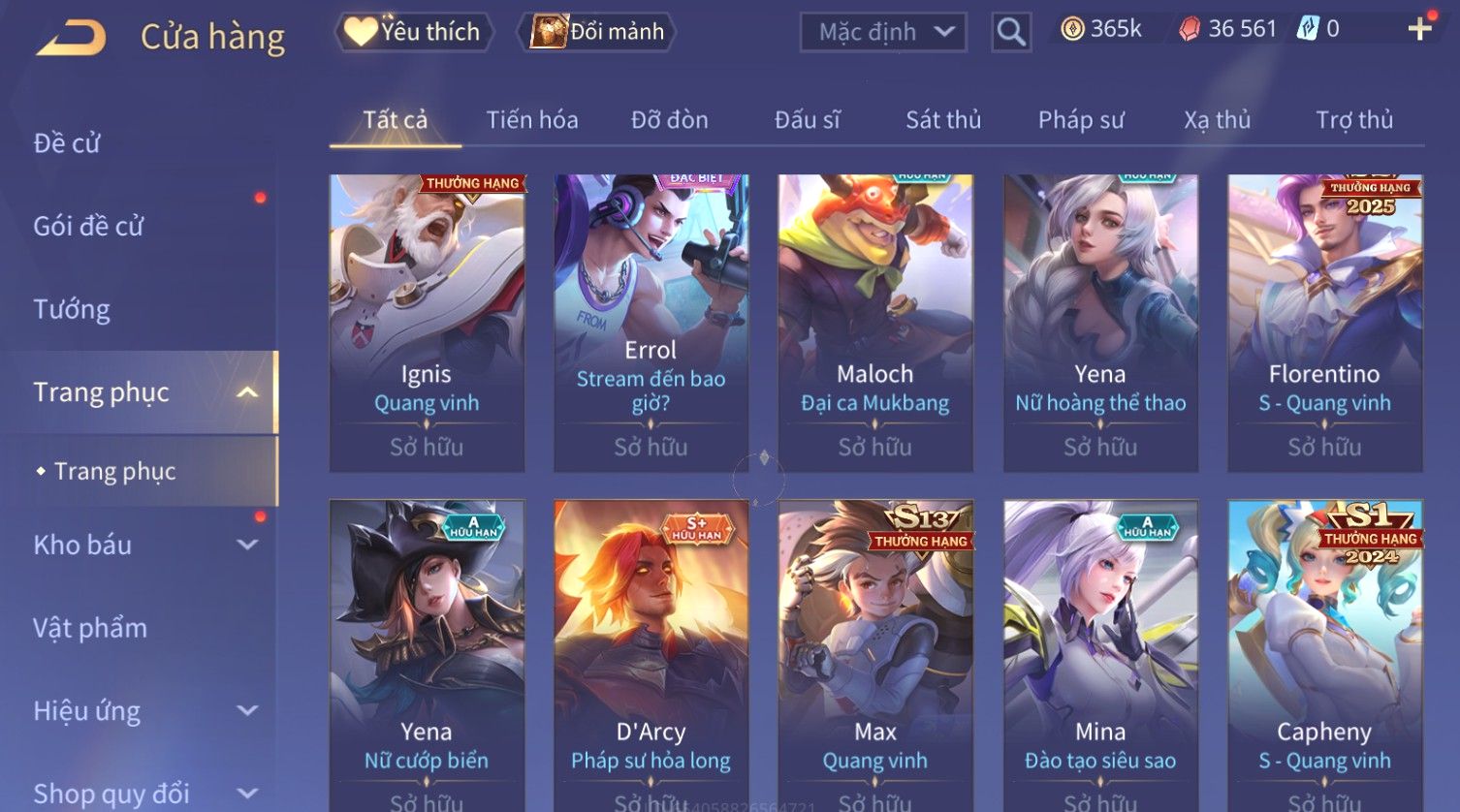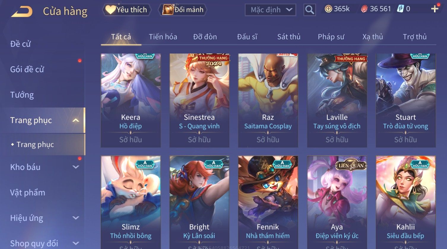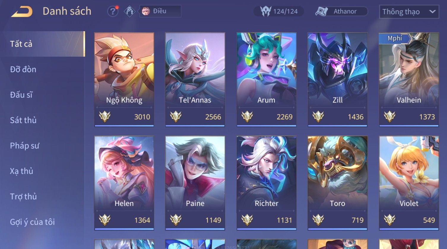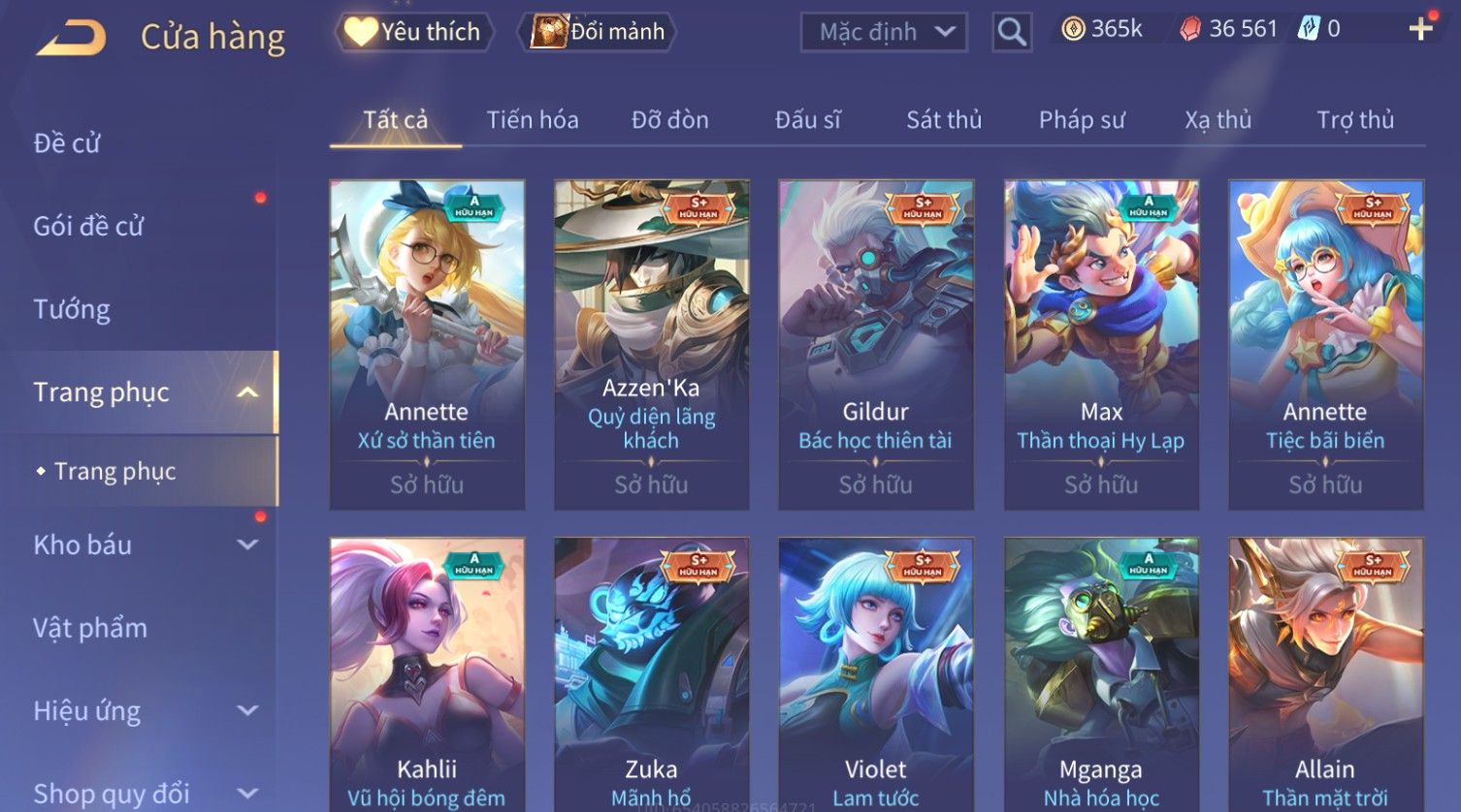 Nổi bật: Skin: Violet Tiệc Bãi Biển×Violet Thần Long Tỷ Tỷ×Richter Thần Kiếm Susanoo×Bijan Hoàng Kim Cơ Giáp×Valhein Đệ Nhất Thần Thám×Capheny Kimono×Lauriel Thánh Quang Sứ×Airi Kiemono×Full Ngọc, Nhiều Skin SS Đẹp