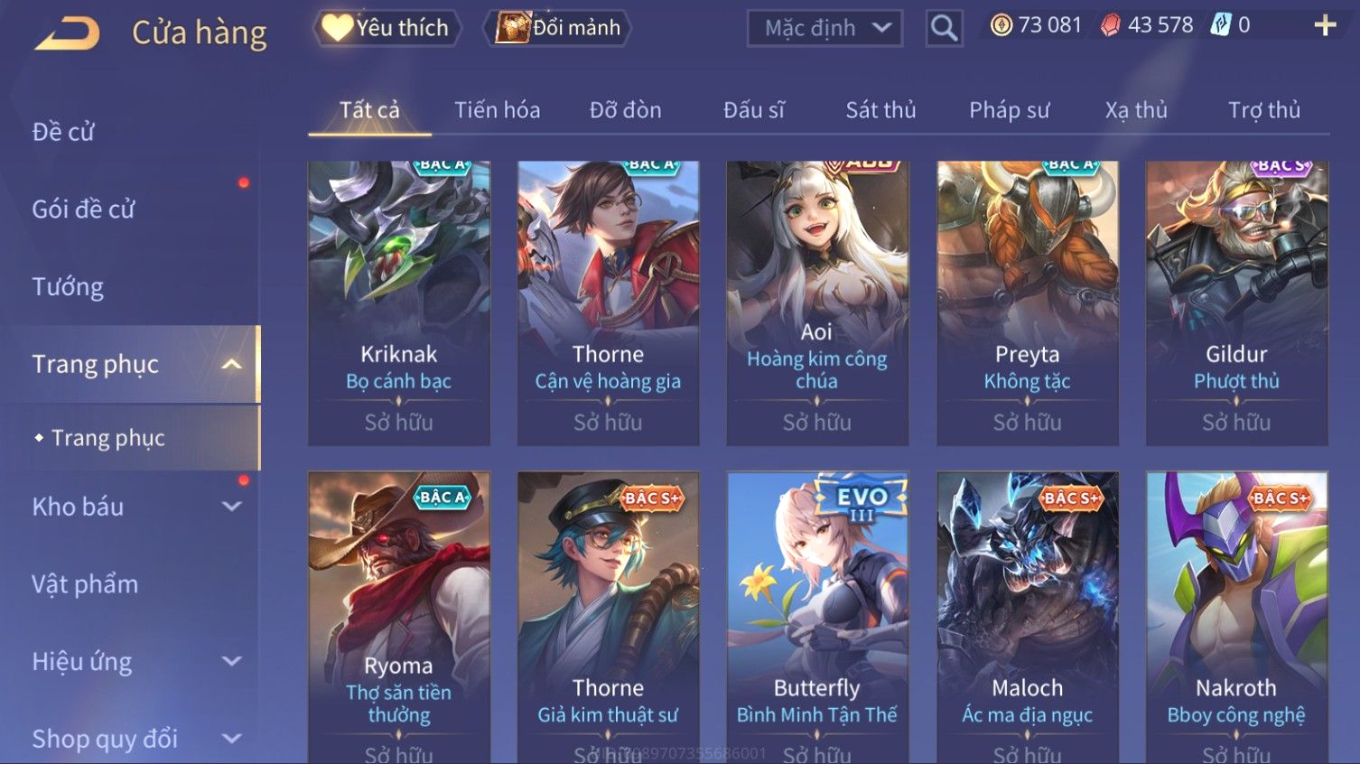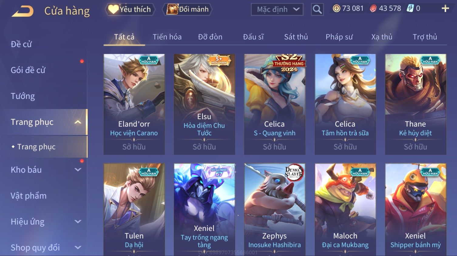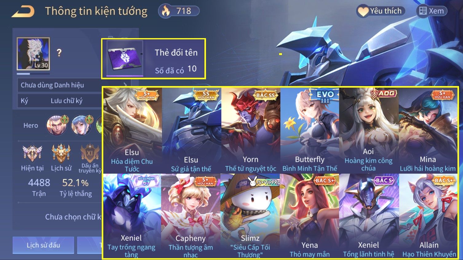 Nổi bật: Skin: Elsu Sử Giả Tận Thế×Elsu Hỏa diệm chu tước×Aoi Hoàng Kim Công Chúa×Full Ngọc, Nhiều Skin SS Đẹp