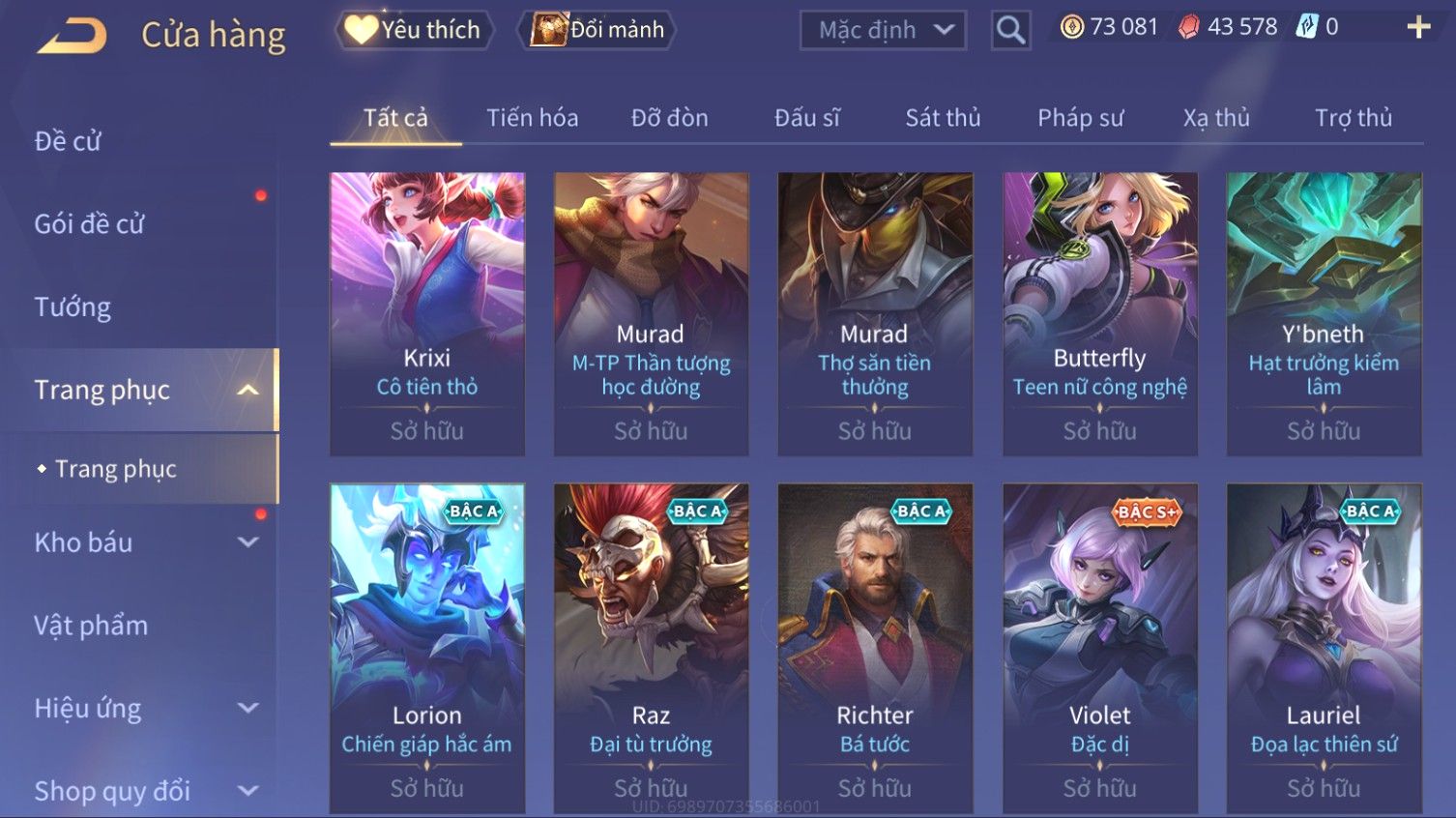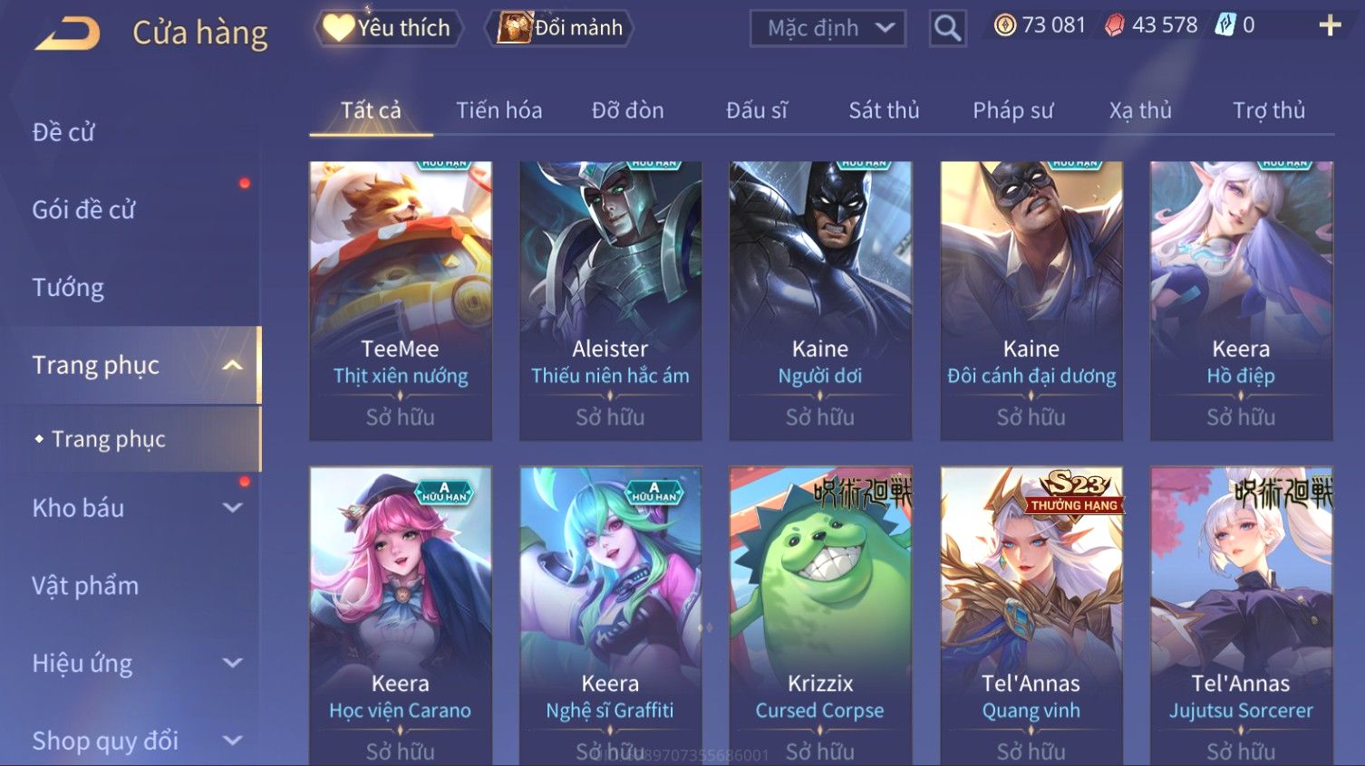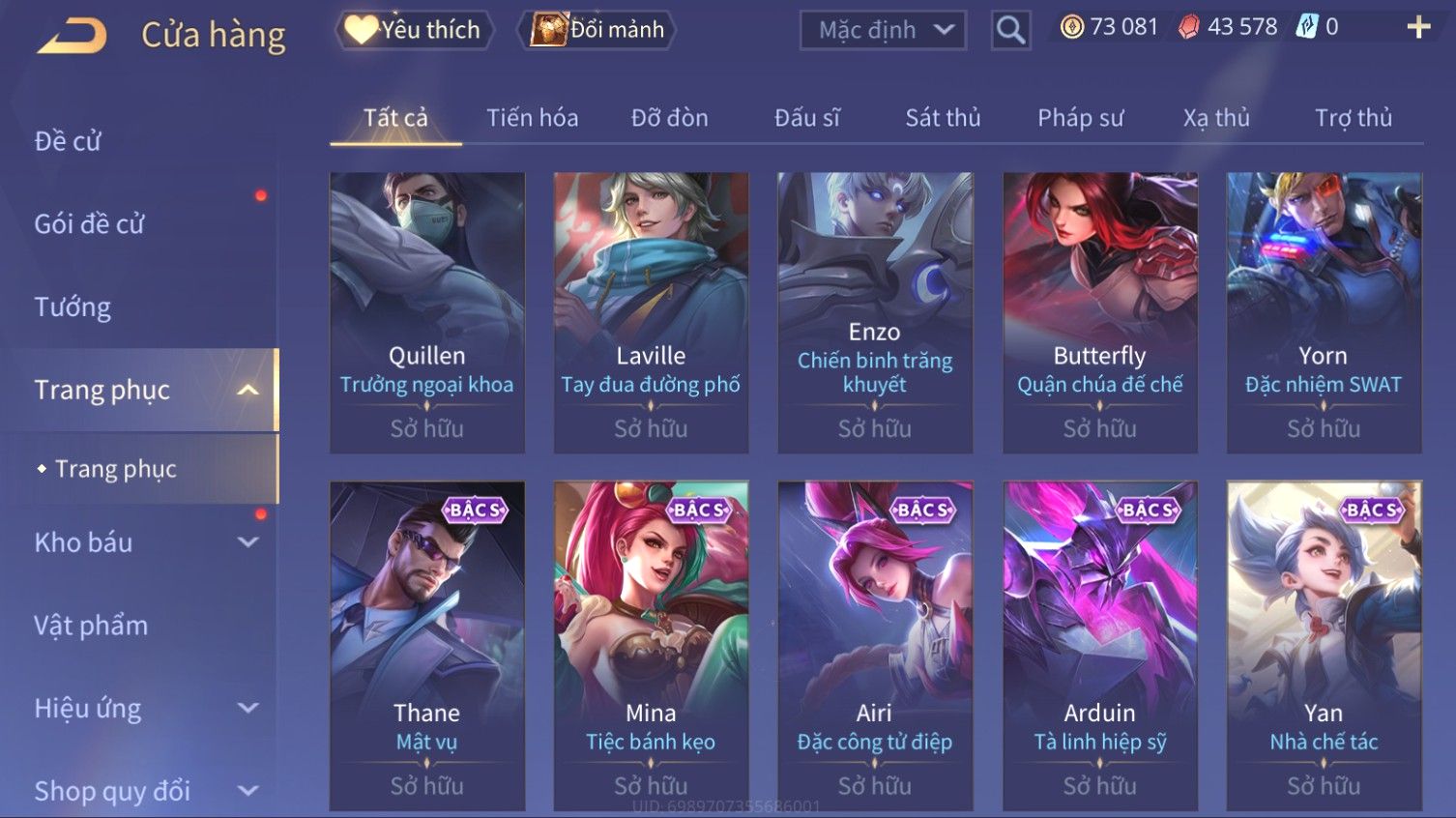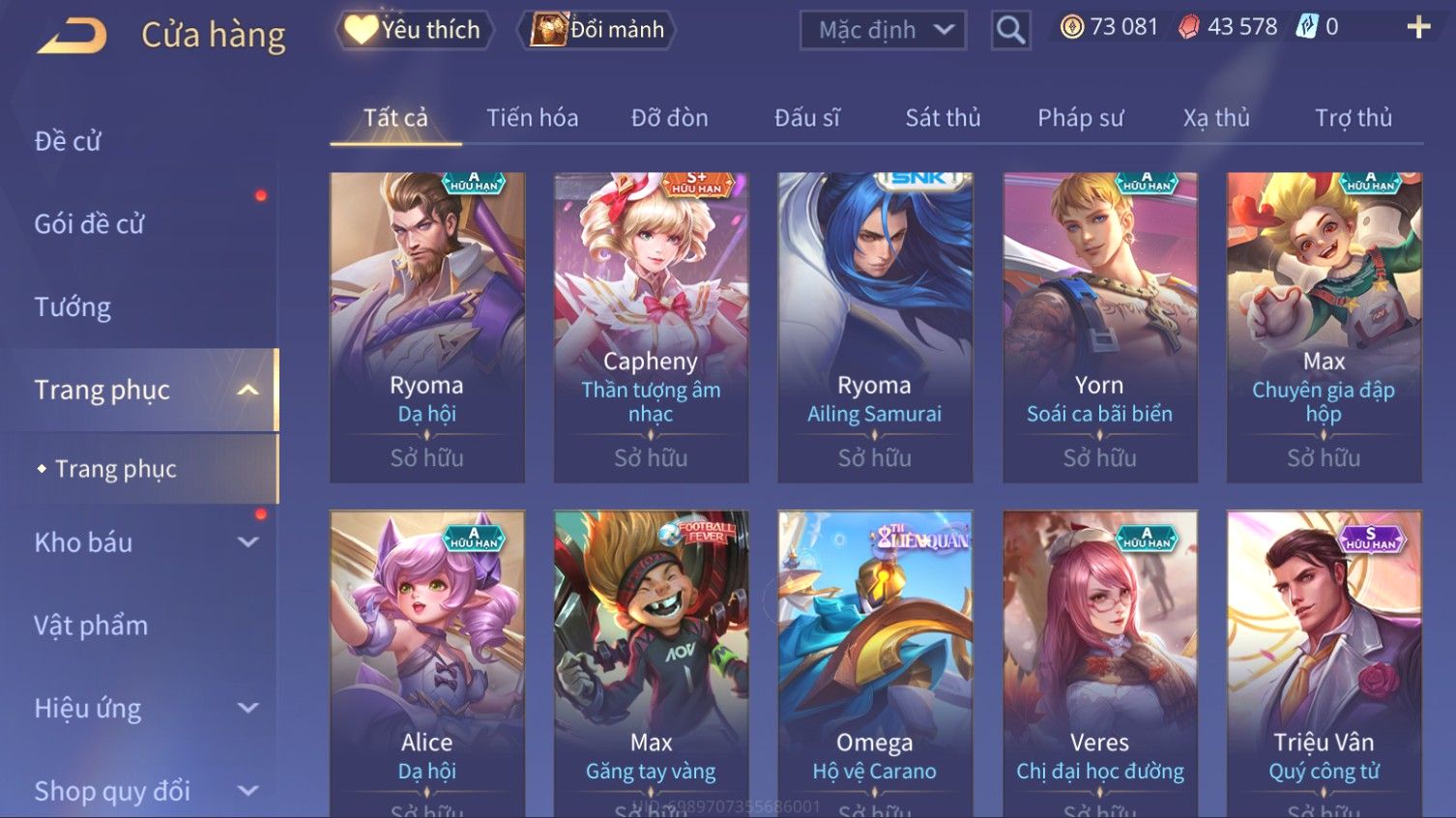 Nổi bật: Skin: Elsu Sử Giả Tận Thế×Elsu Hỏa diệm chu tước×Aoi Hoàng Kim Công Chúa×Full Ngọc, Nhiều Skin SS Đẹp