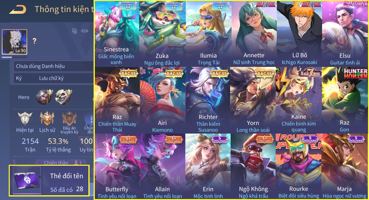 Nổi bật: Skin: Raz Chiến Thần Muay Thái×Raz Gon×Airi Kiemono×Richter Thần Kiếm Susanoo×Yorn Long Thần Soái×Elsu Guitar Tình Ái×Full Ngọc, Nhiều Skin SS Đẹp