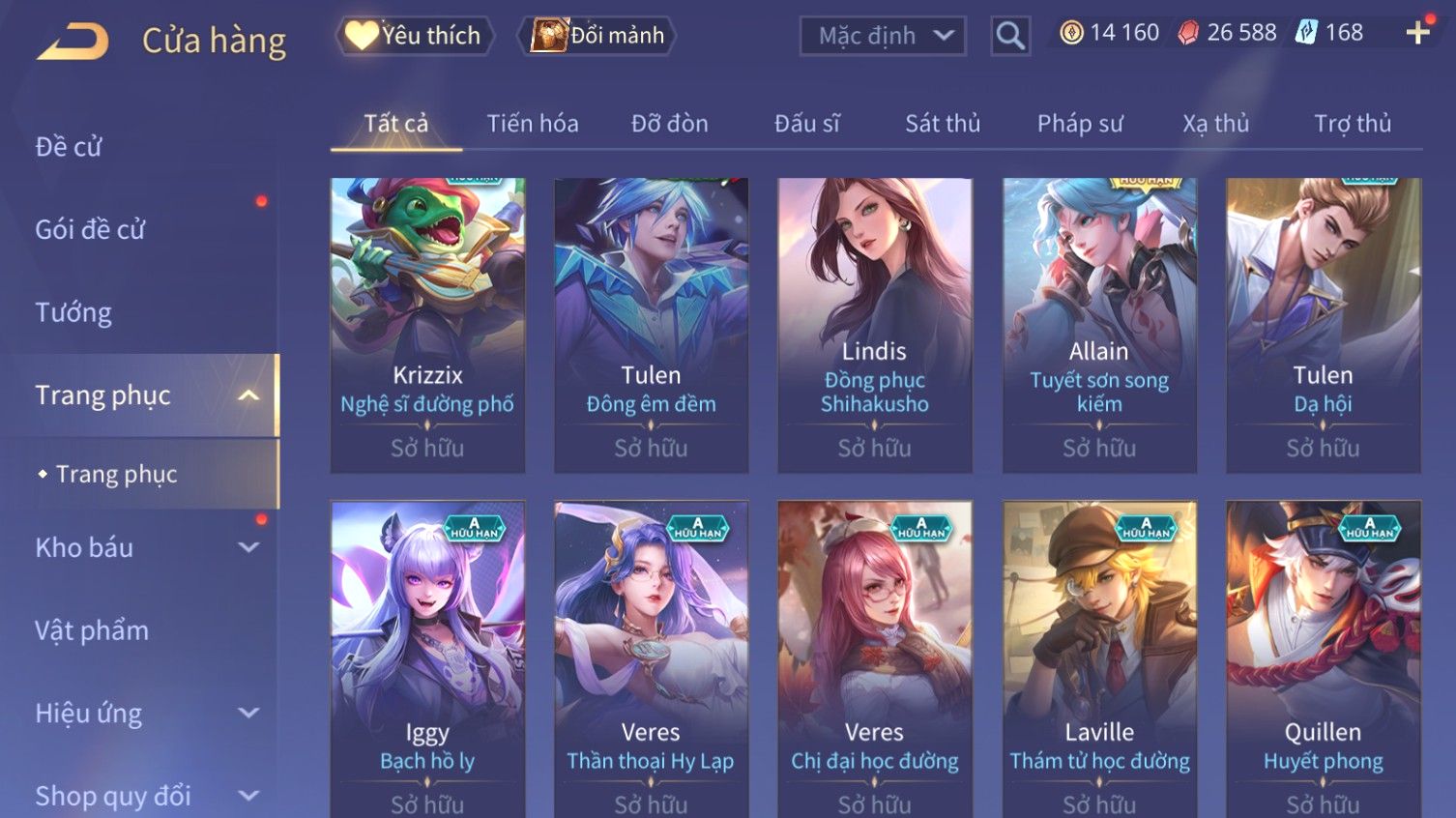 Nổi bật: Skin: Allain Tuyết Sơn Song Kiếm×Violet Thần Long Tỷ Tỷ×Full Ngọc, Nhiều Skin Đẹp