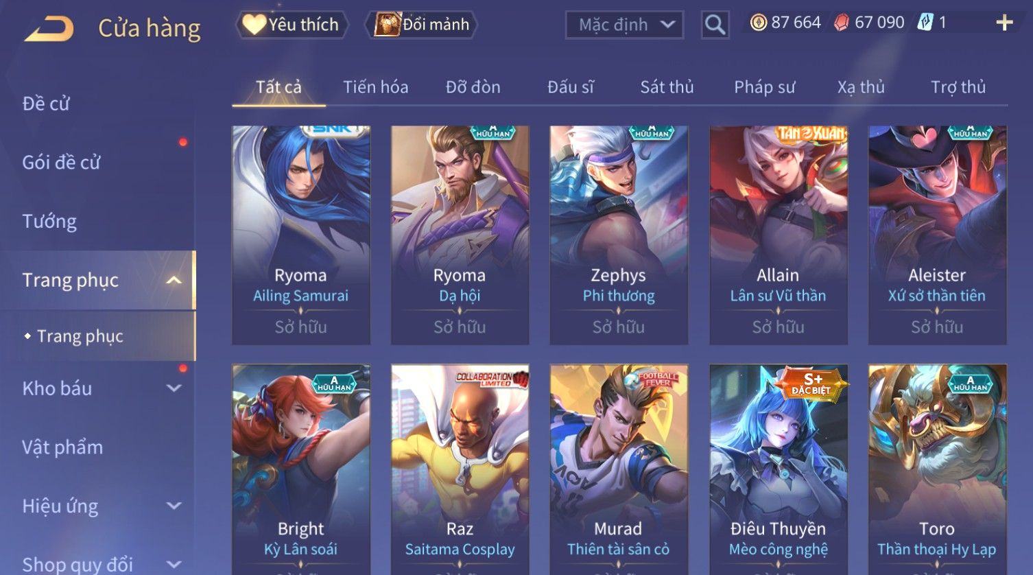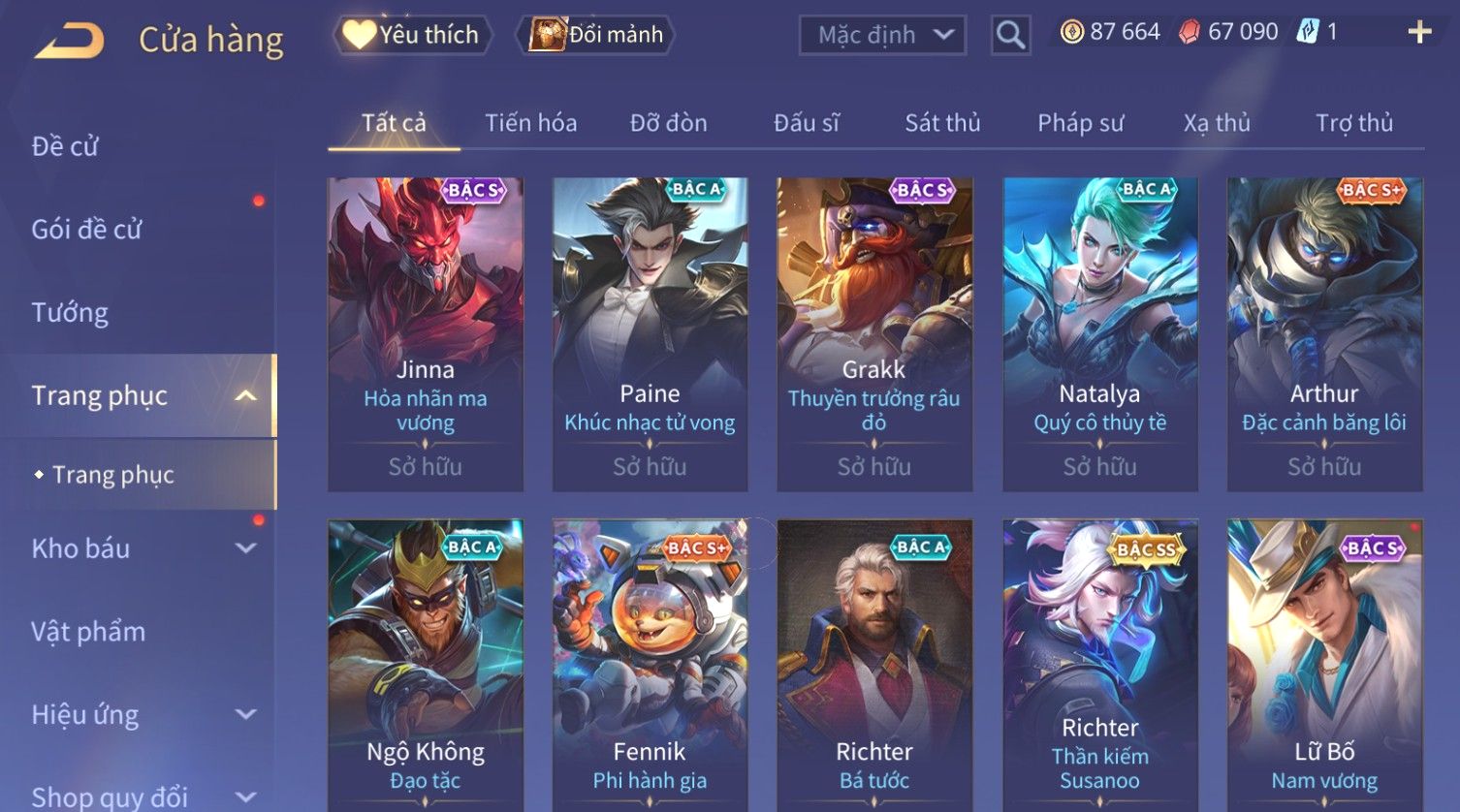 Nổi bật: Full Ngọc, Nhiều Skin SS Đẹp