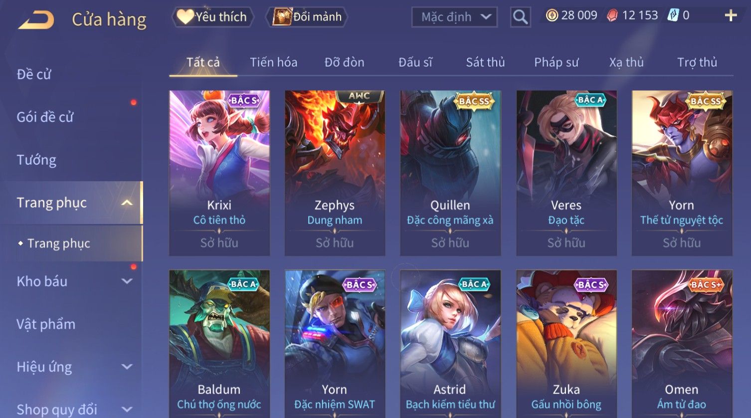 Nổi bật: Skin: Ryoma Sumarai Huyền Thoại×Laville Xạ thần Tinh Vệ×Quillen Đặc Công Mãng Xà×Full Ngọc, Nhiều Skin SS Đẹp