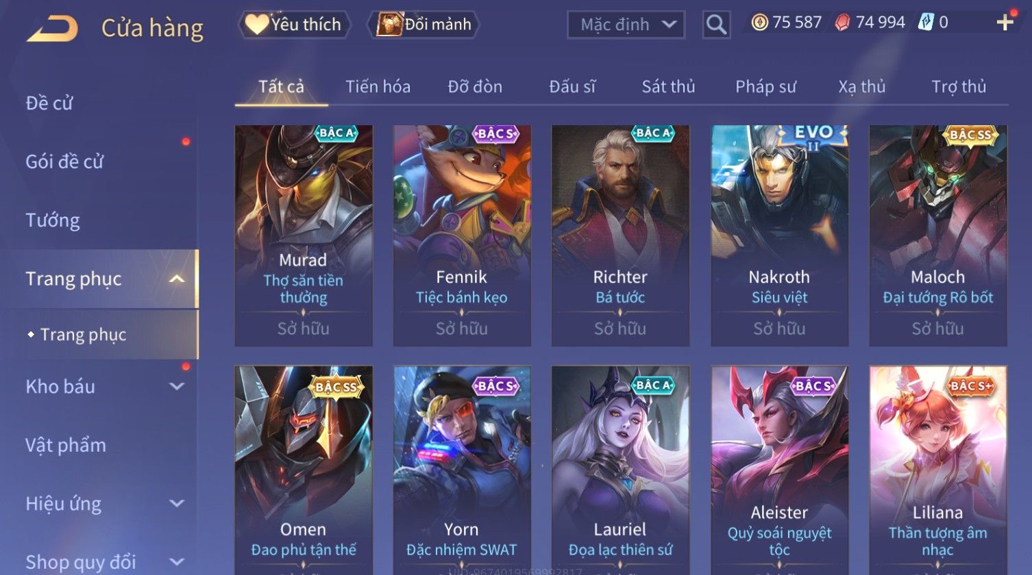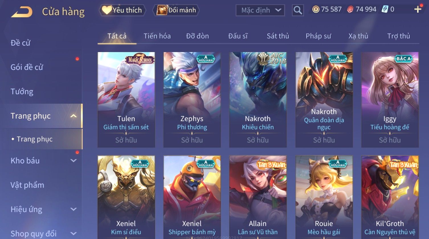 Trạng Thái: Nick có SĐT or Gmail Của Shop( Có Thể Thay Đổi)