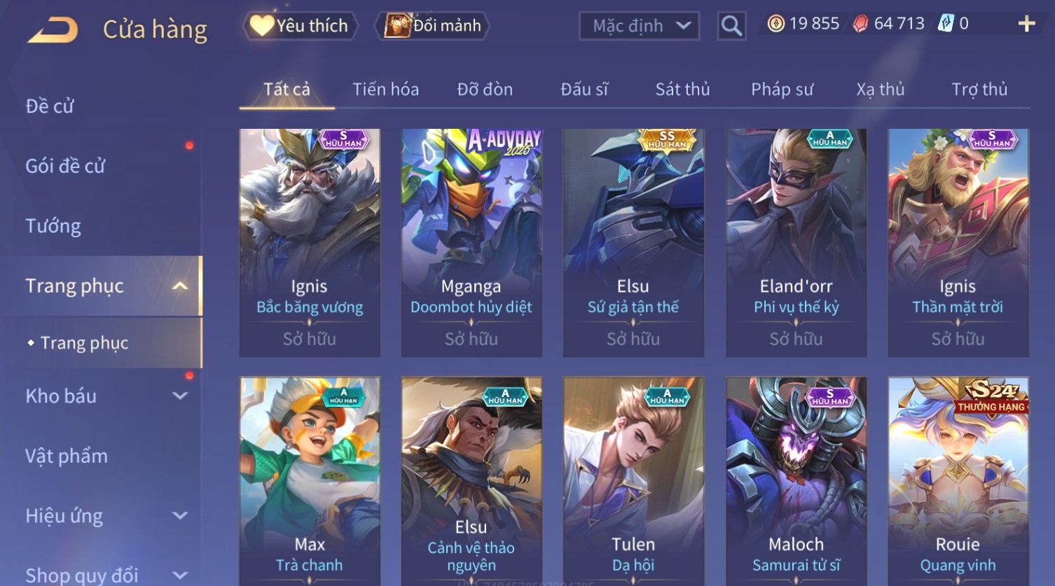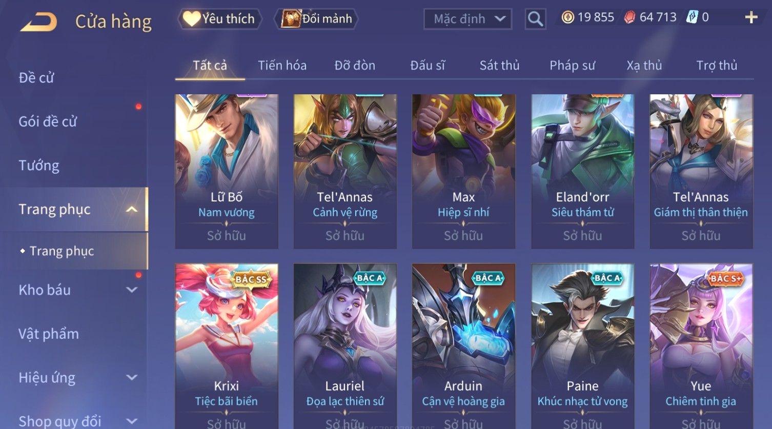 Nổi bật: Skin: Nakroth Lôi Quang Sứ×Violet Tiệc Bãi Biển×Elsu Sử Giả Tận Thế×Taara Tiệc Bãi Biển×Tulen Tiêu Dao Vũ Thần×Capheny Kimono×Yorn Long Thần Soái×Maloch Đại Tướng Rô Bốt×Richter Thống Soái Kháng Chiến×Omen Chiến Binh Trăng Khuyết×Full Ngọc, Nhiều Skin SS Đẹp