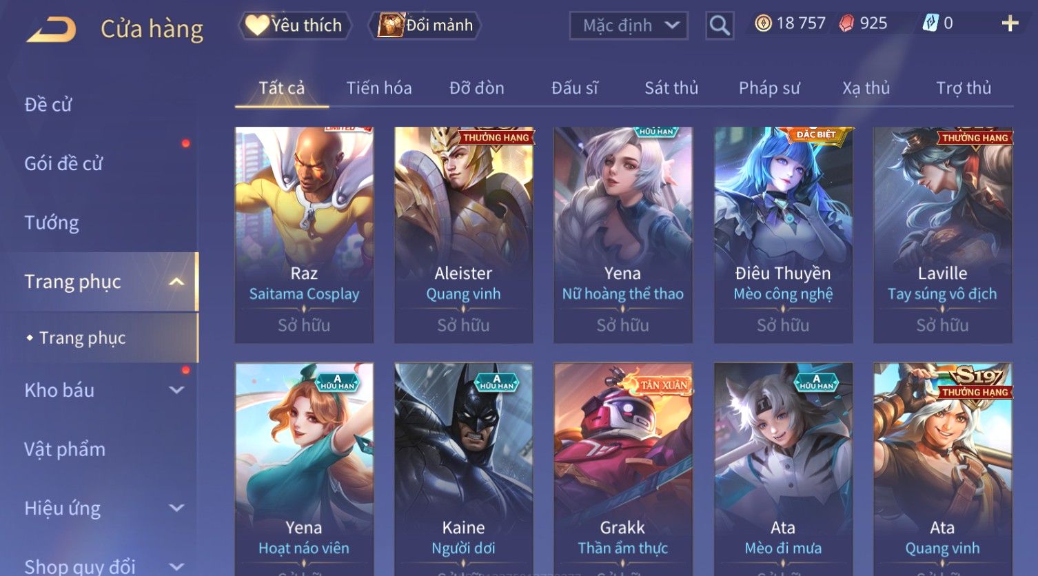 Nổi bật: Full Ngọc, Nhiều Skin SS Đẹp