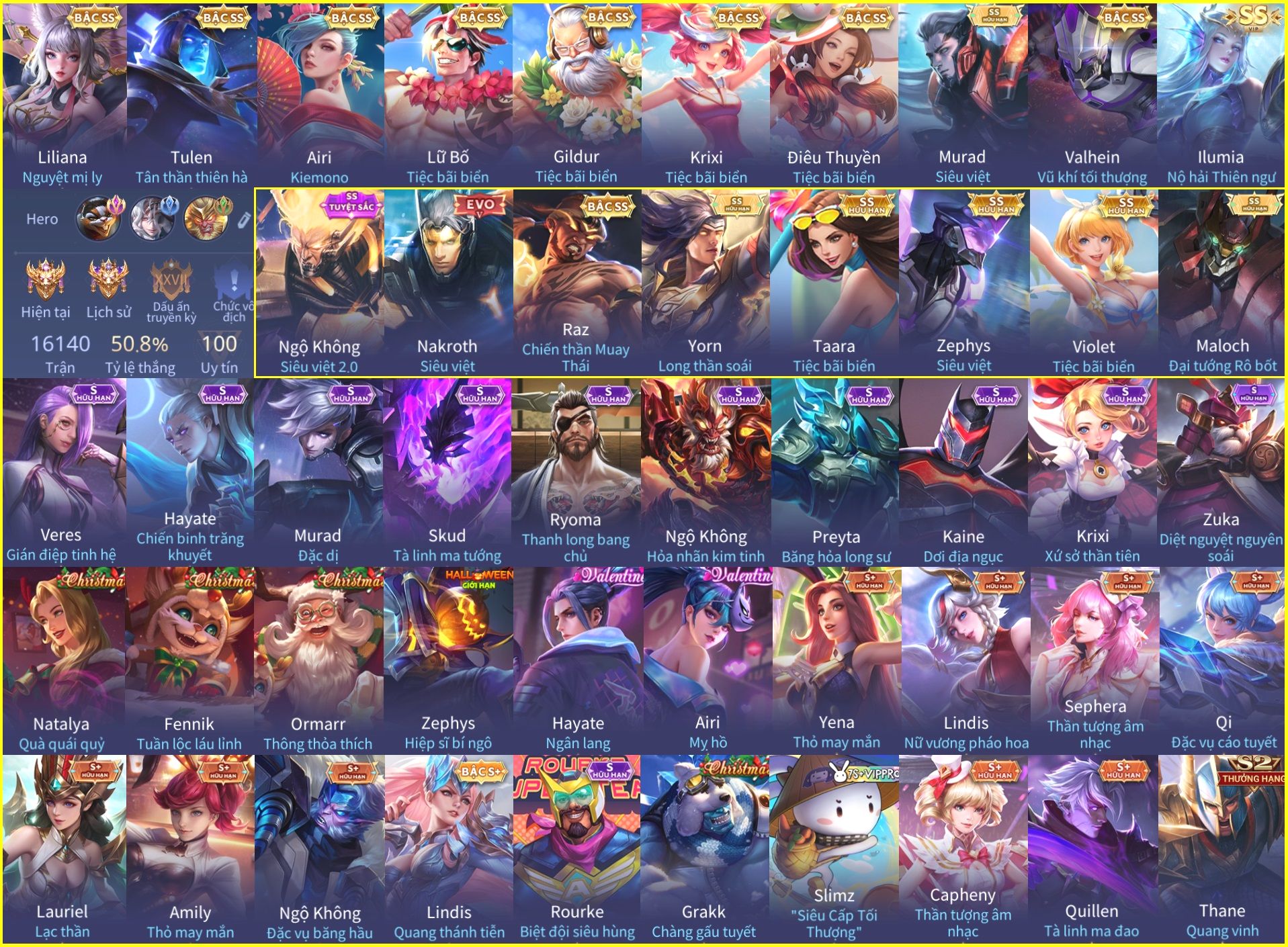 Nổi bật: HÀNG HIẾM 27 ẤN, NAK NÂNG FUL, NHIỀU SKIN ĐẸP, FUL NGỌC