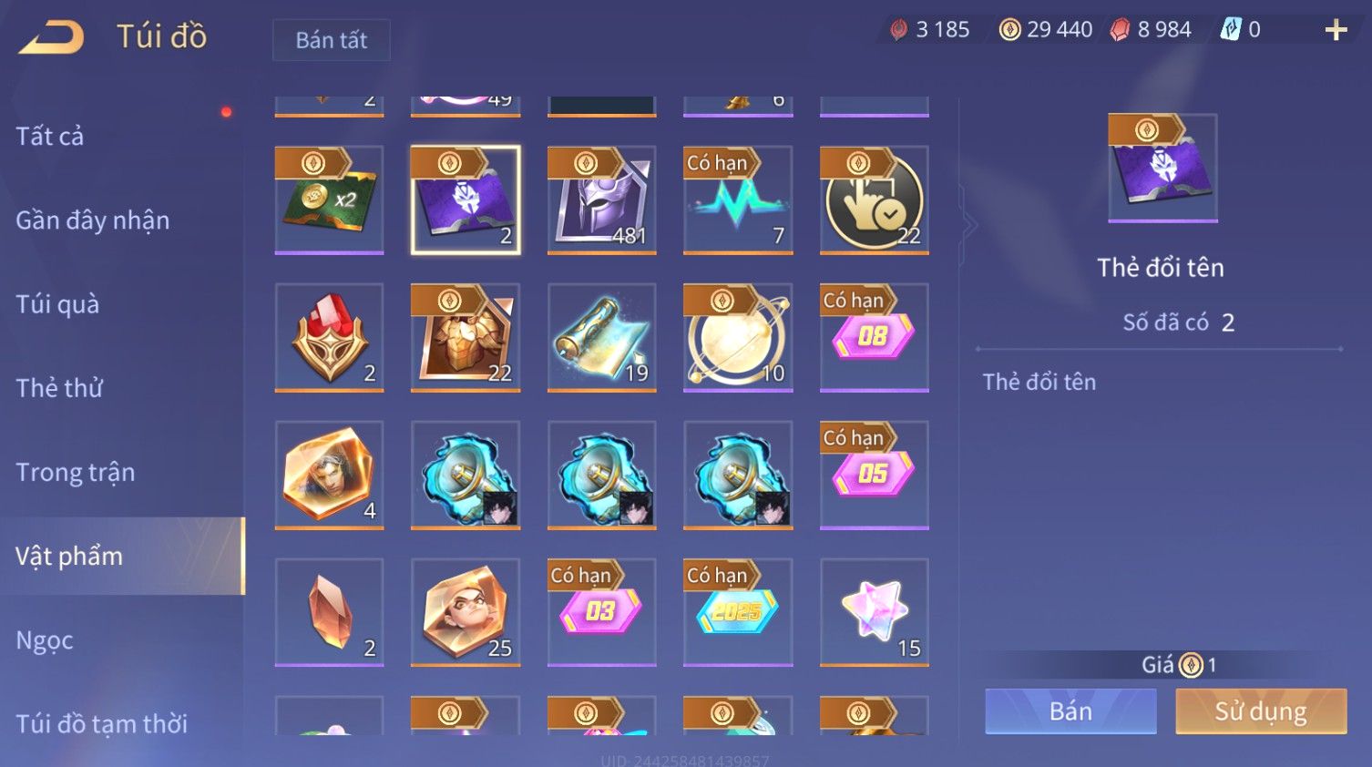 Trạng Thái: Nick có SĐT or Gmail Của Shop( Có Thể Thay Đổi)