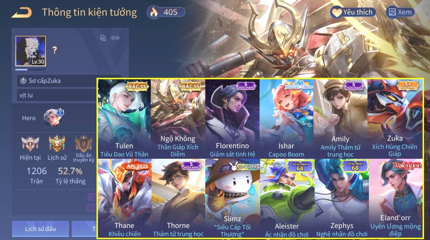 Nổi bật: Skin: Tulen Tiêu Dao Vũ Thần×Ngộ Không Thần Giáp Xích Diễm×Florentino Giám Sát Tinh Hệ×