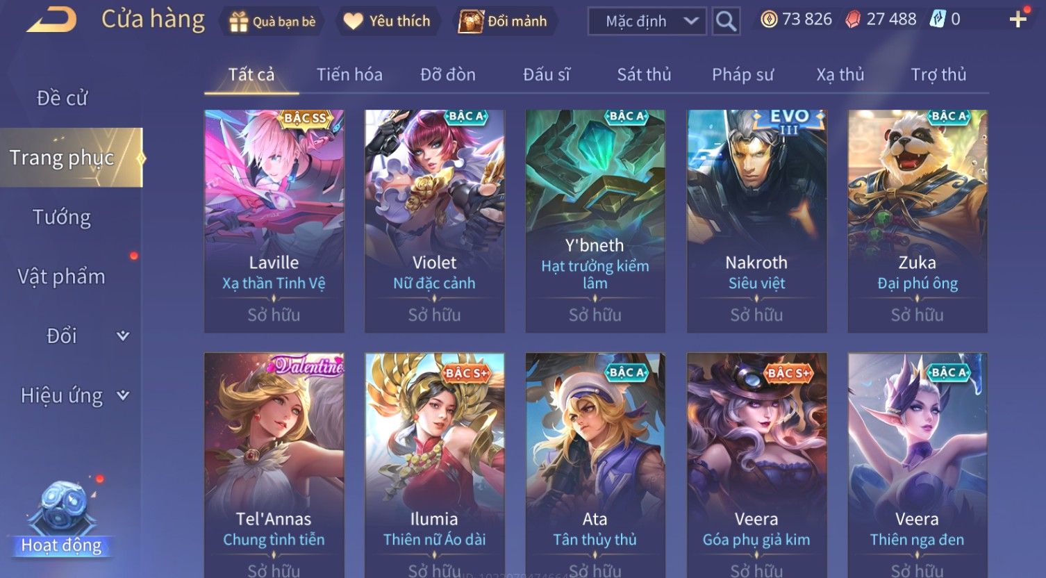 Nổi bật: Laville Xạ Thần Tinh Vệ,Full Ngọc, Nhiều Skin Đẹp