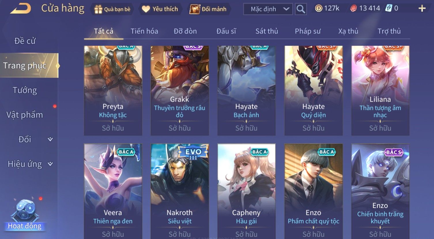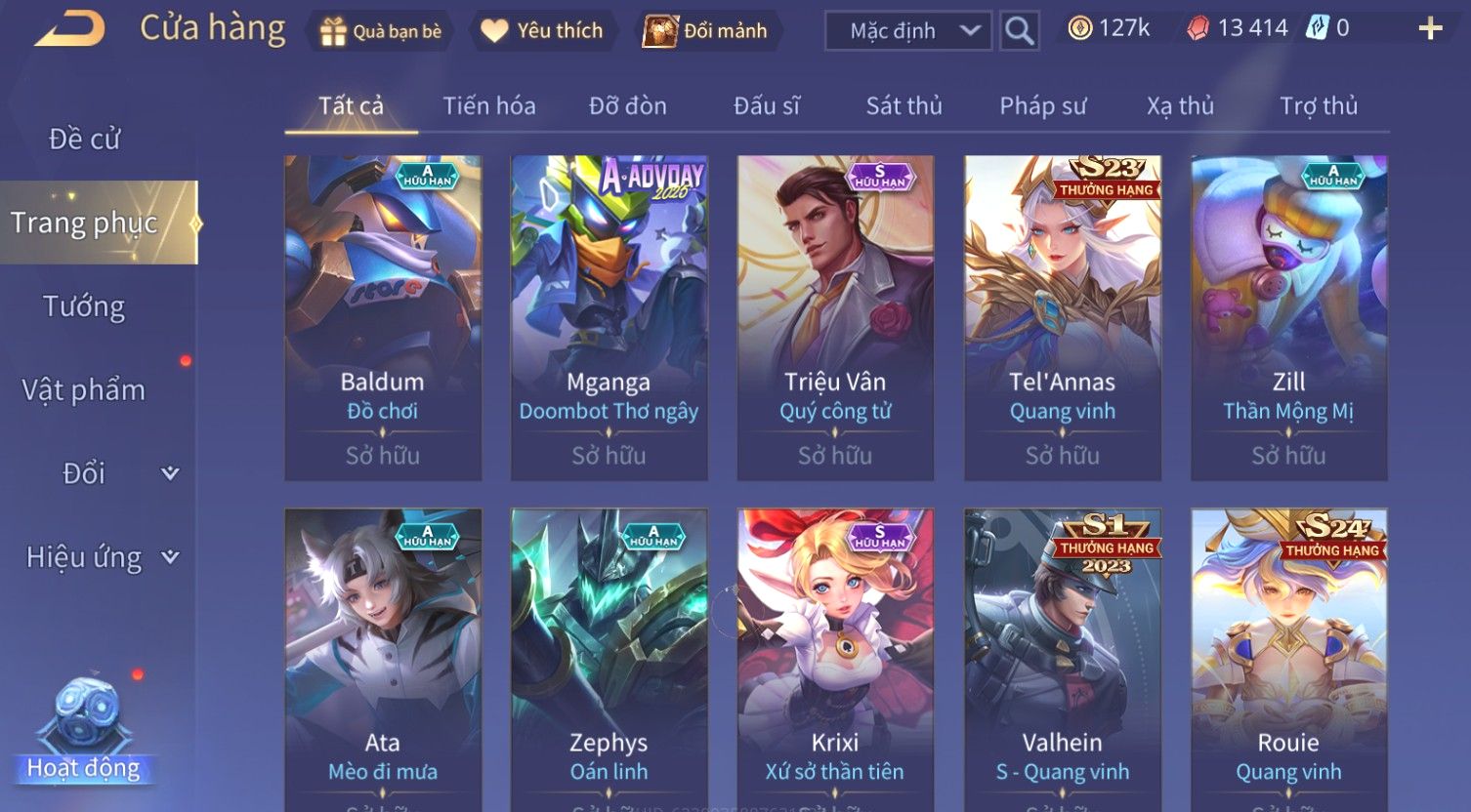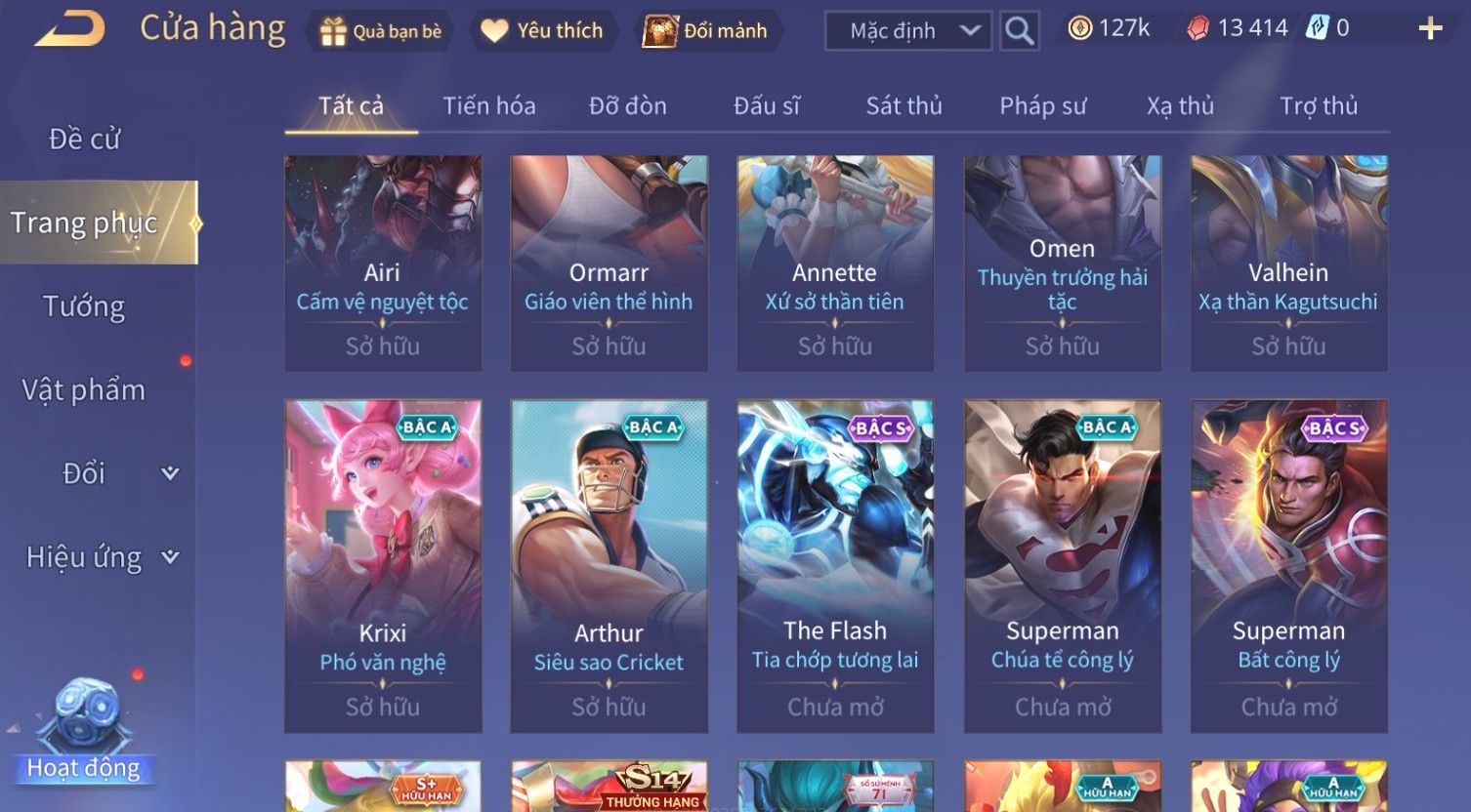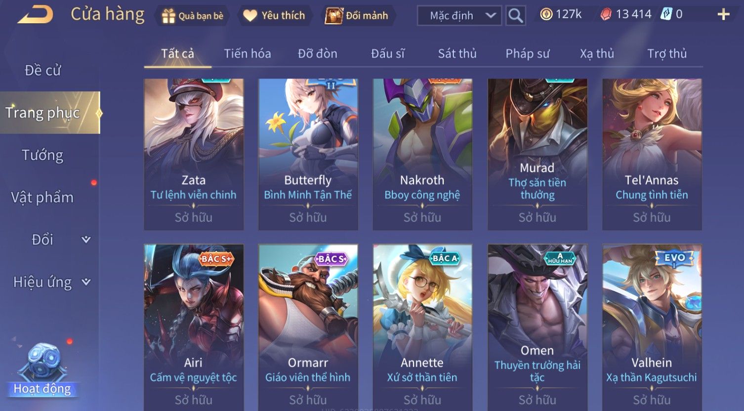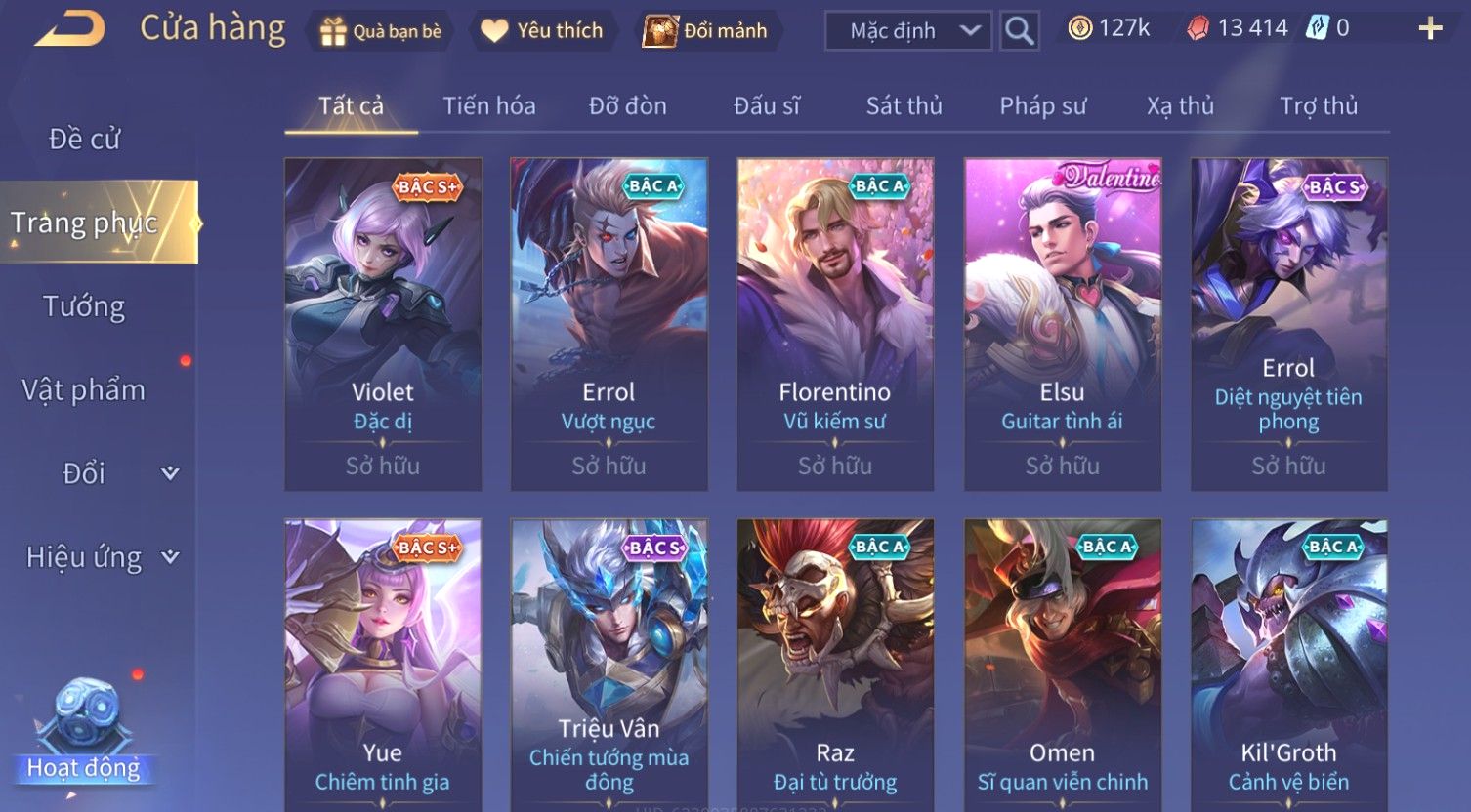 Nổi bật: Skin: Laville Xạ thần Tinh Vệ×Violet Tiệc Bãi Biển×Omen Quái Kiệt Guitar×Full Ngọc, Nhiều Skin Đẹp