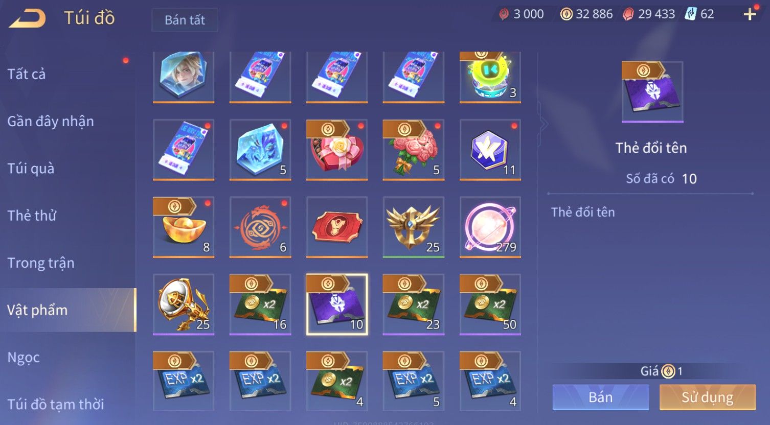 Trạng Thái: Nick có SĐT or Gmail Của Shop( Có Thể Thay Đổi)