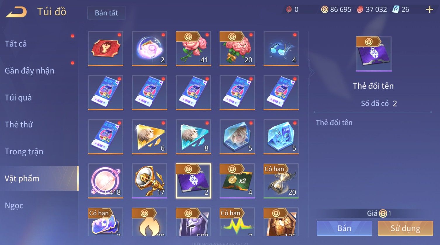 Trạng Thái: Nick có SĐT or Gmail Của Shop( Có Thể Thay Đổi)