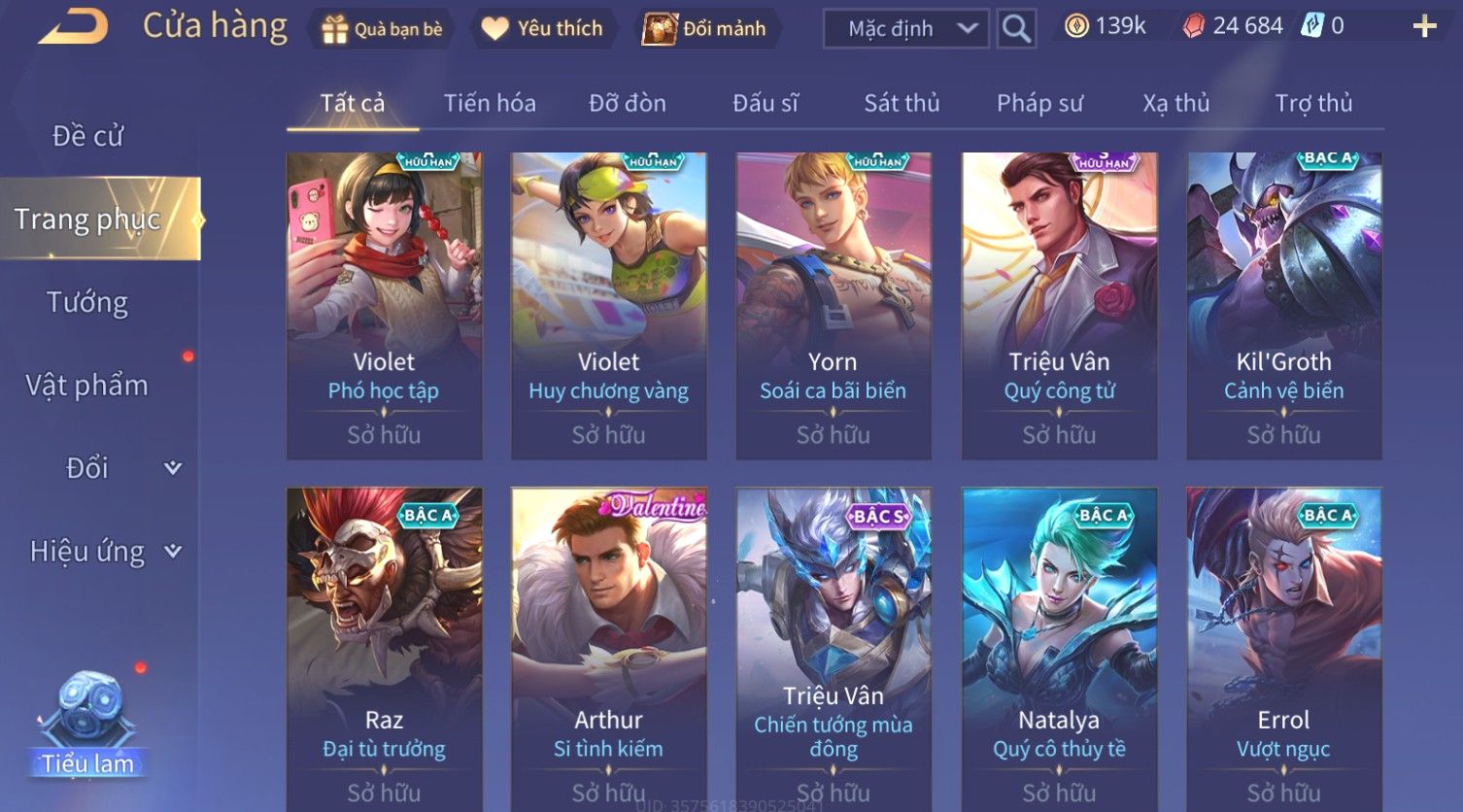 Nổi bật: NICK NGON, SKIN ĐẸP GIÁ RẺ