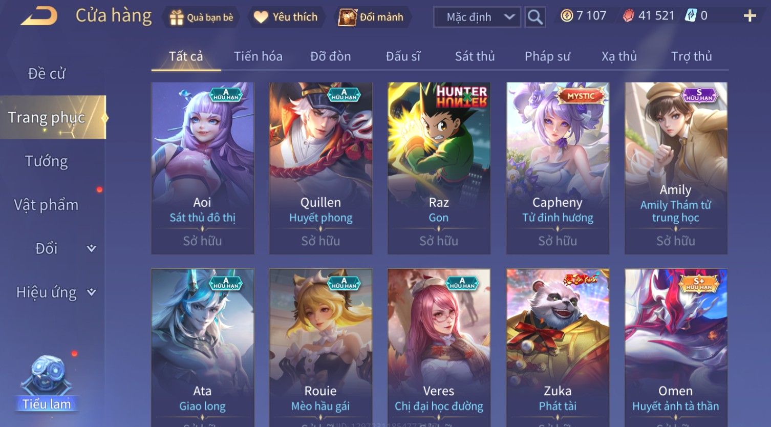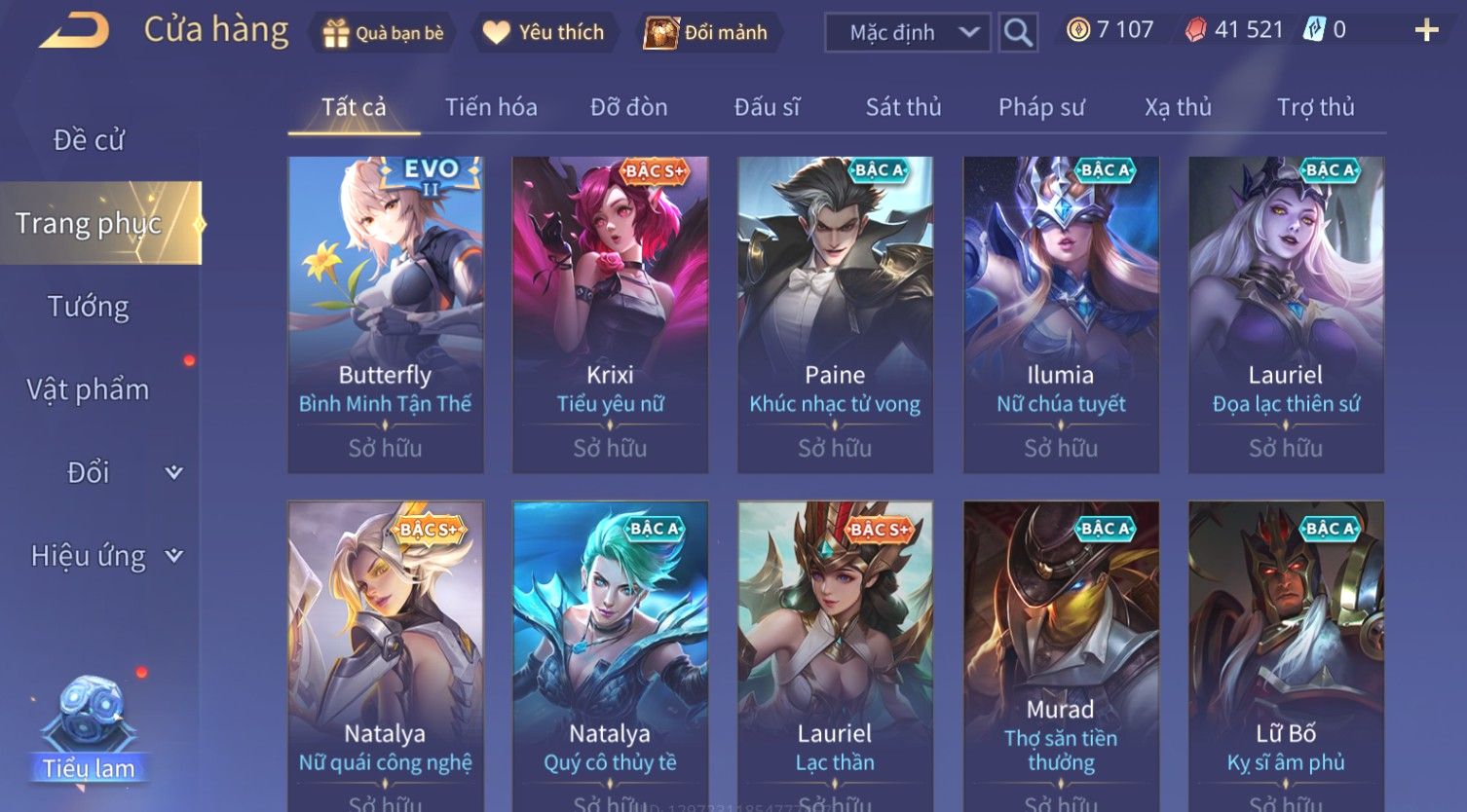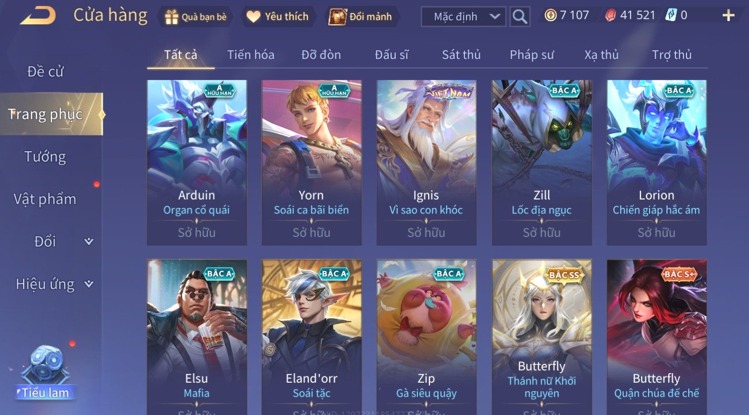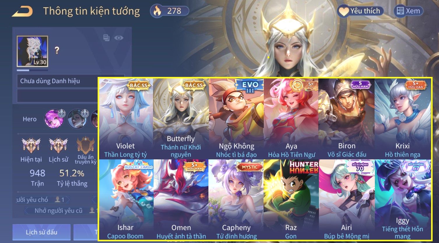 Nổi bật: Skin: Violet Thần Long Tỷ Tỷ×Butterfly Thánh Nữ Khởi Nguyên×Ngộ Không Nhóc Tì Bá Đạo×Capheny Tử Đinh Hương×Raz Gon×