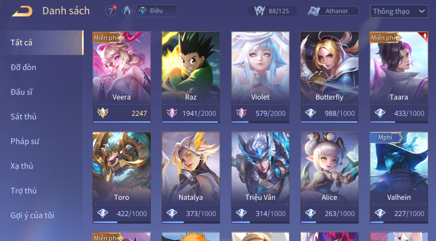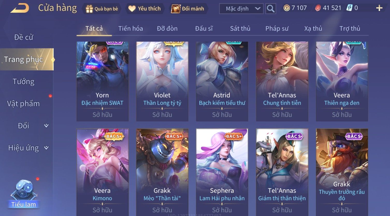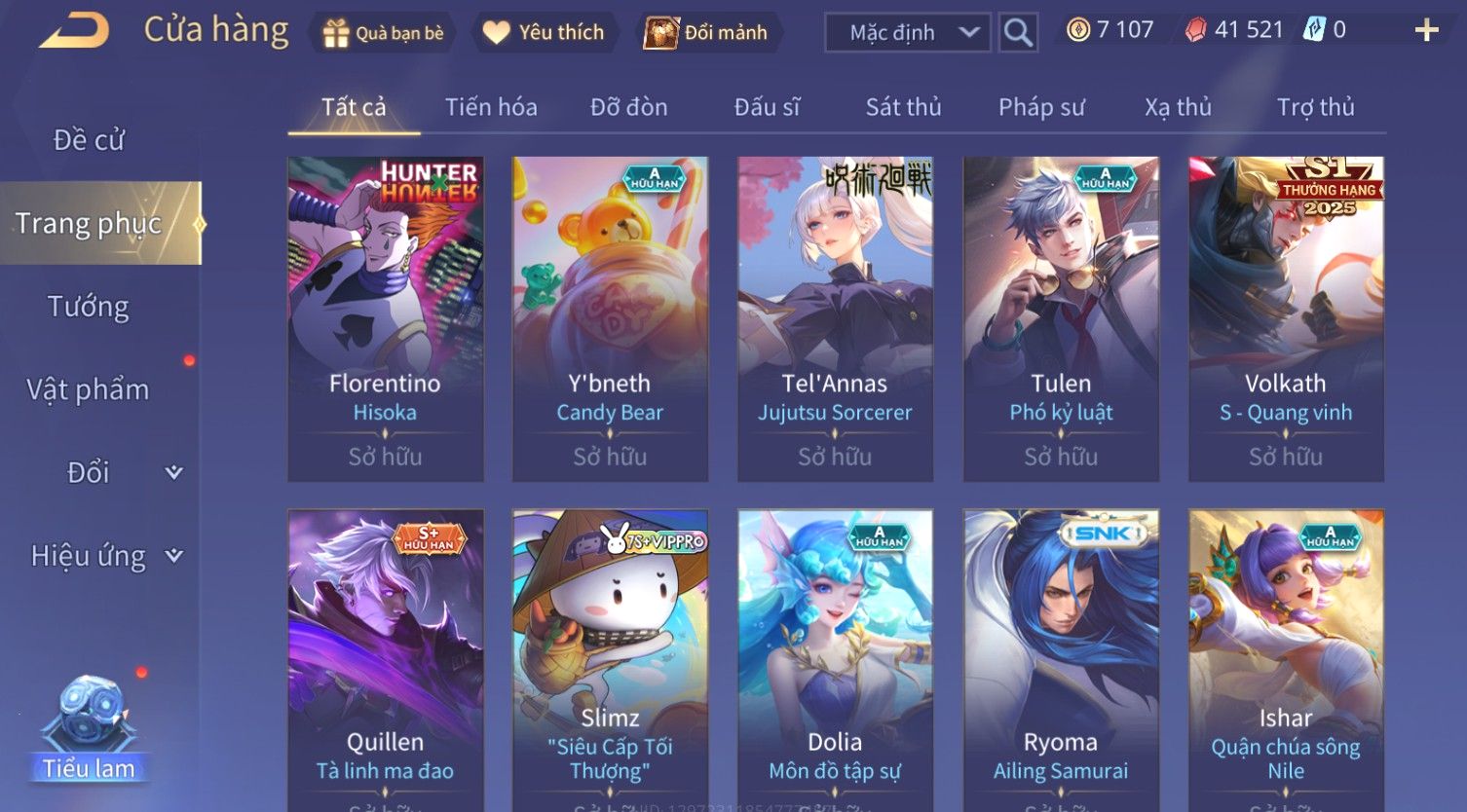 Nổi bật: Skin: Violet Thần Long Tỷ Tỷ×Butterfly Thánh Nữ Khởi Nguyên×Ngộ Không Nhóc Tì Bá Đạo×Capheny Tử Đinh Hương×Raz Gon×
