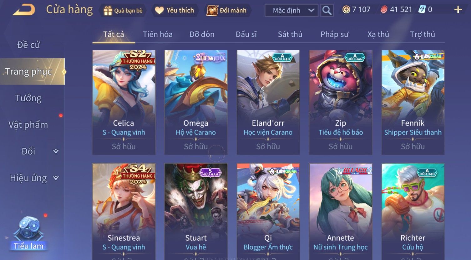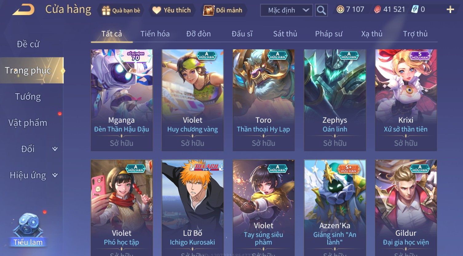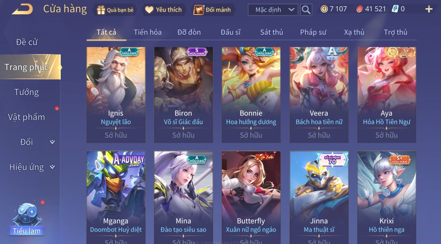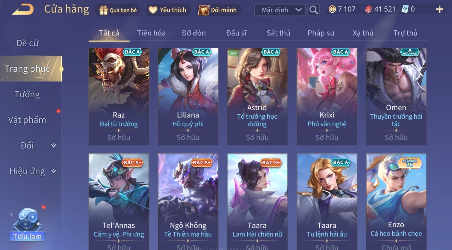 Nổi bật: Skin: Violet Thần Long Tỷ Tỷ×Butterfly Thánh Nữ Khởi Nguyên×Ngộ Không Nhóc Tì Bá Đạo×Capheny Tử Đinh Hương×Raz Gon×
