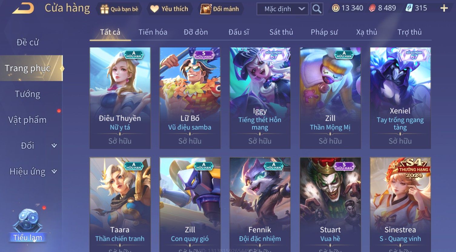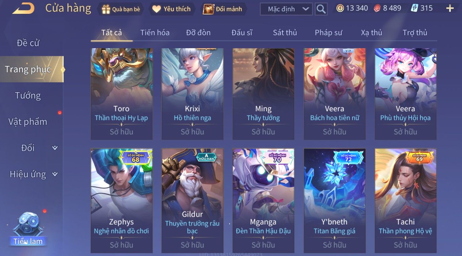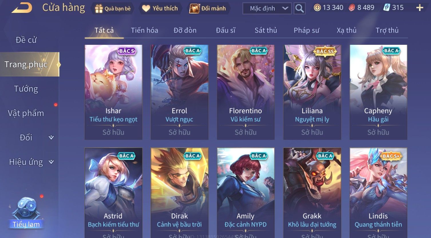 Nổi bật: Skin: Yorn Long Thần Soái×Điêu Thuyền Tiệc Bãi Biển×Liliana Nguyệt Mị Ly×Laville Xạ thần Tinh Vệ×Capheny Tử Đinh Hương×