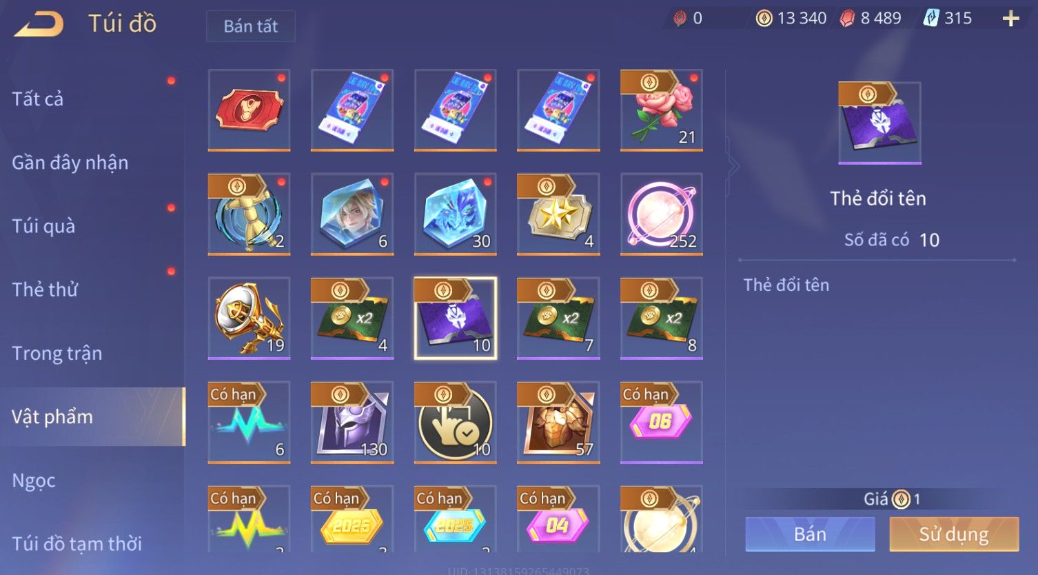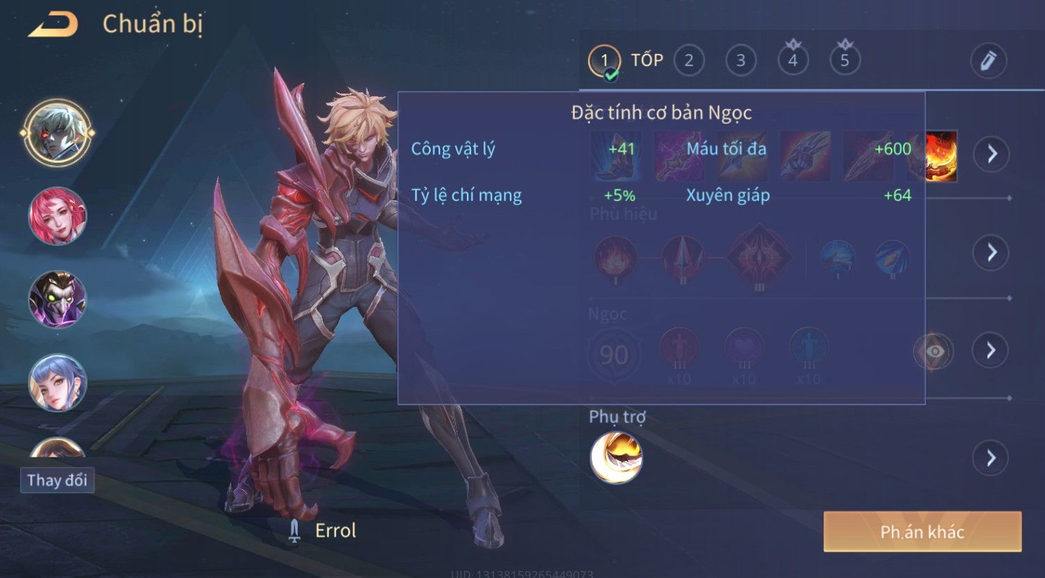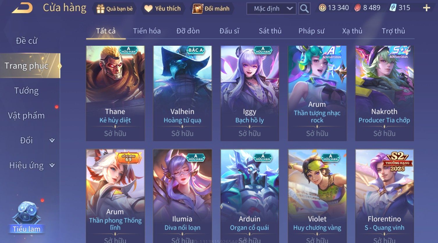 Nổi bật: Skin: Yorn Long Thần Soái×Điêu Thuyền Tiệc Bãi Biển×Liliana Nguyệt Mị Ly×Laville Xạ thần Tinh Vệ×Capheny Tử Đinh Hương×