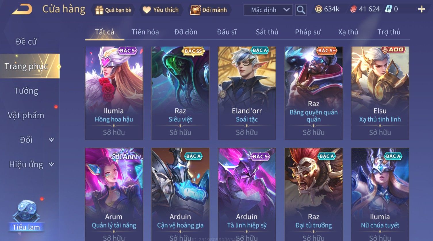 Nổi bật: Skin: Nakroth Thứ Nguyên Vệ Thần×Tel'Annas Tân Niên Vệ Thần×Butterfly Phượng Cửu Thiên×Cùng Dàn SS VIP