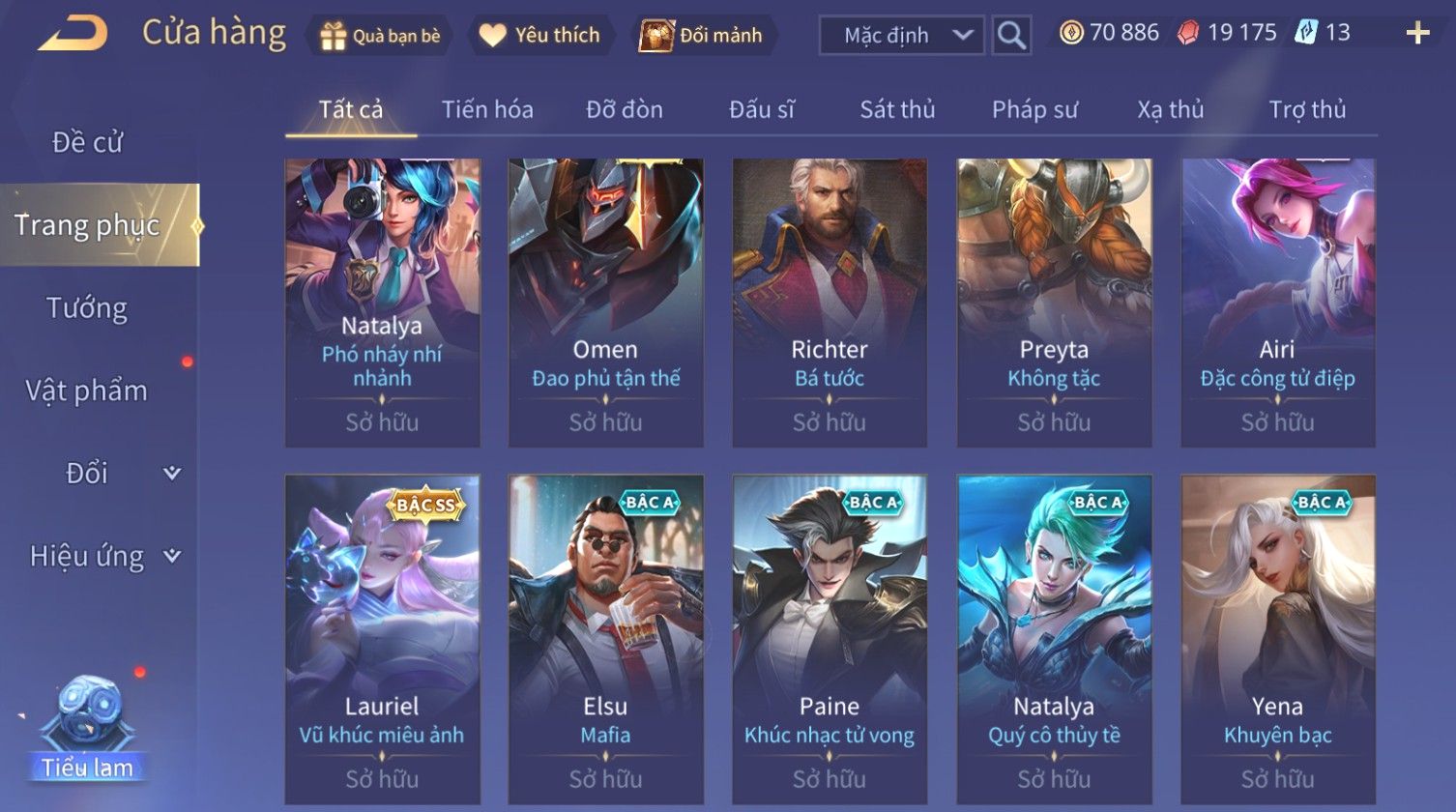 Nổi bật: Skin: Natalya Nguyệt Ảnh Kiếm Tiên×Lauriel Vũ Khúc Miêu Ảnh×Lauriel Thánh Quang Sứ×Omen Đao Phủ Tận Thế×Erin Tình Yêu Cổ Tích
