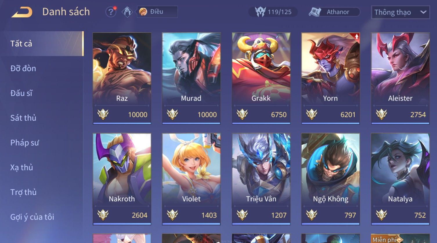Nổi bật: RAZ CHIẾN THẦN MUAY THÁI, Full Ngọc, Nhiều Skin Đẹp