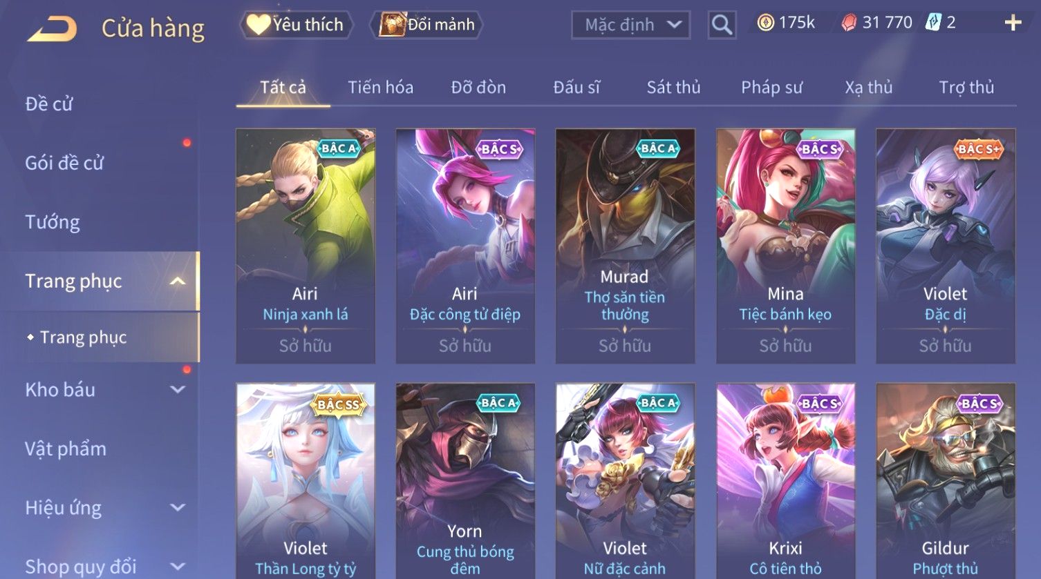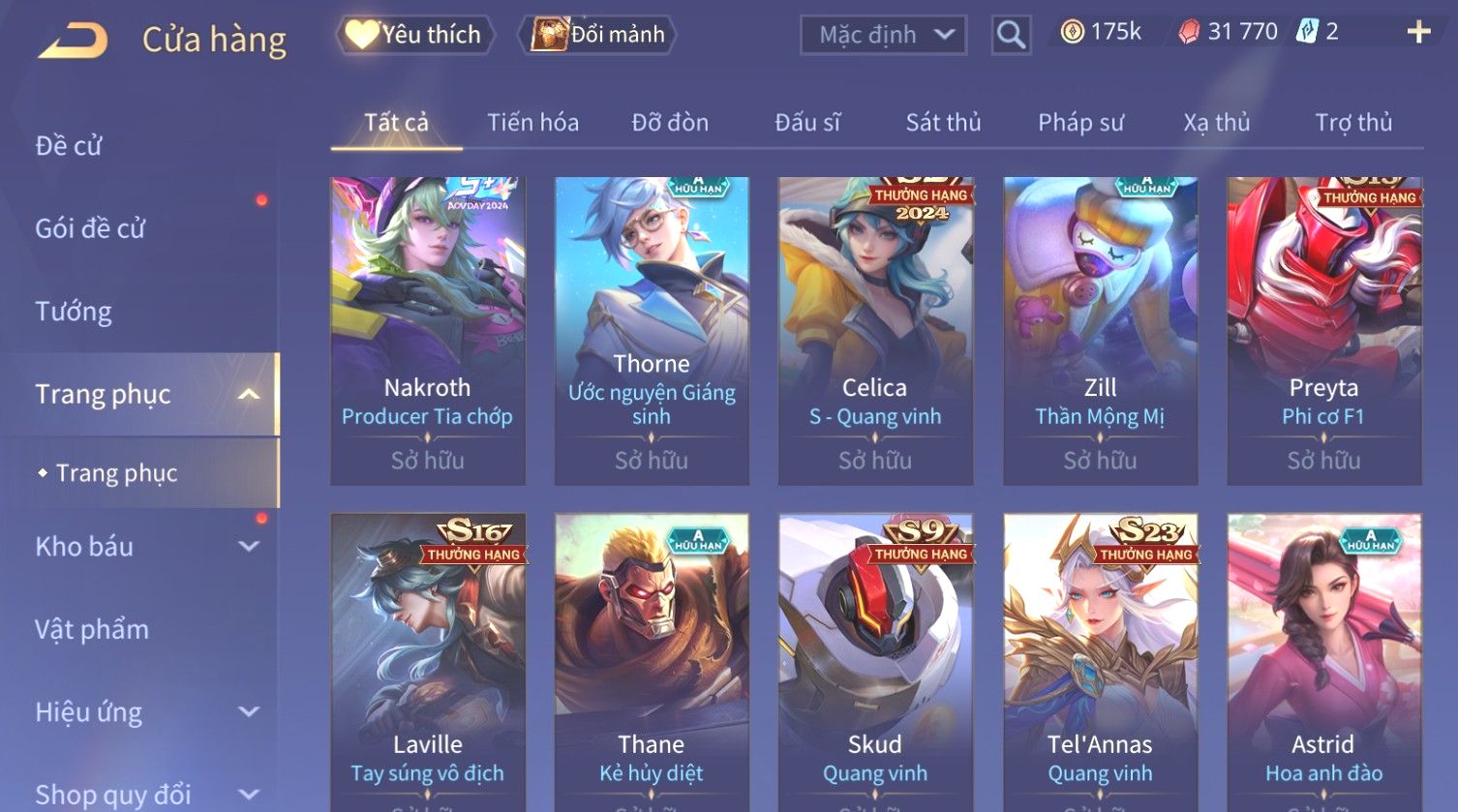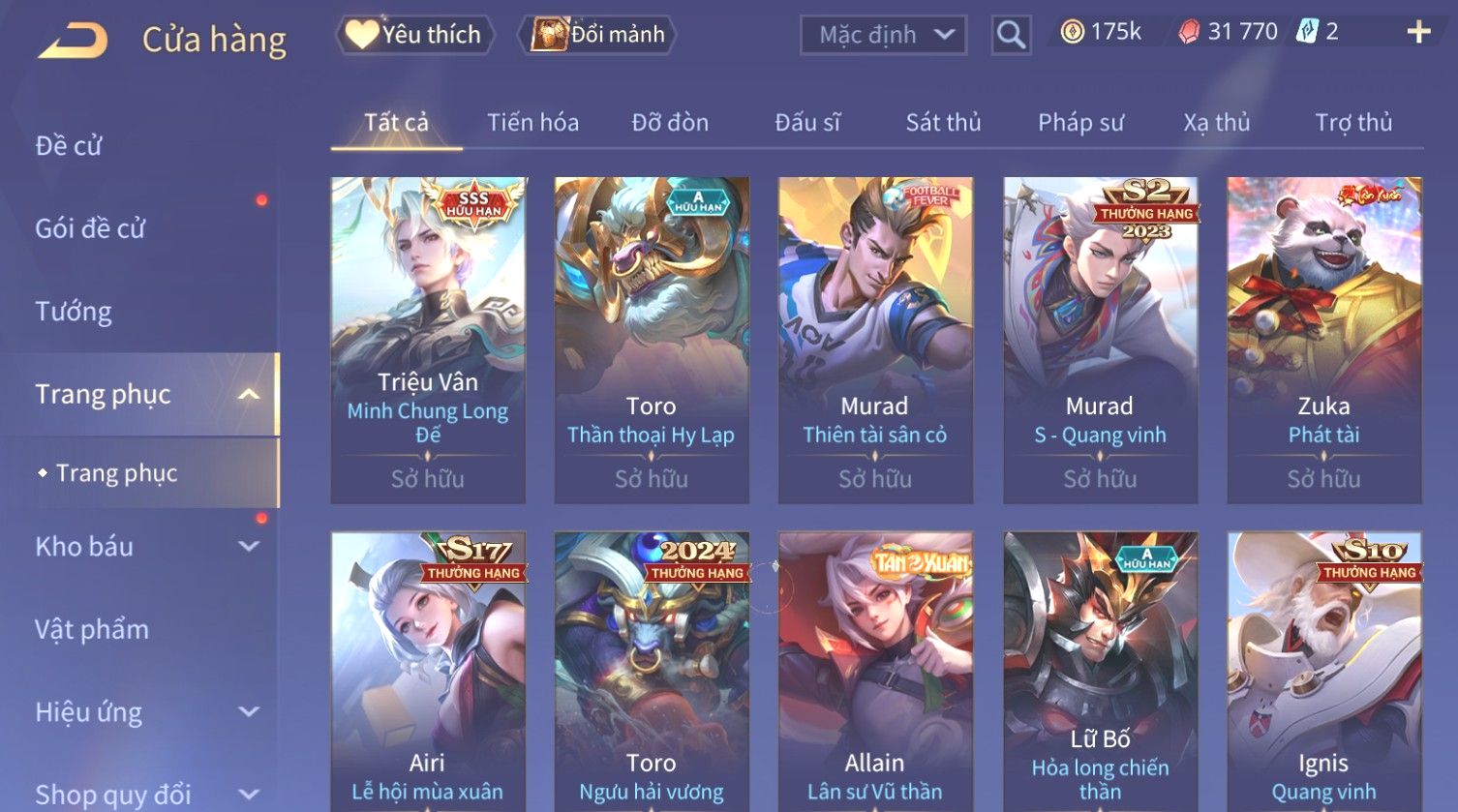 Nổi bật: Skin: Triệu Vân Minh Chung Long Đế×Raz Chiến Thần Muay Thái×Violet Thần Long Tỷ Tỷ×Tulen Tân Niên Vệ Thần×