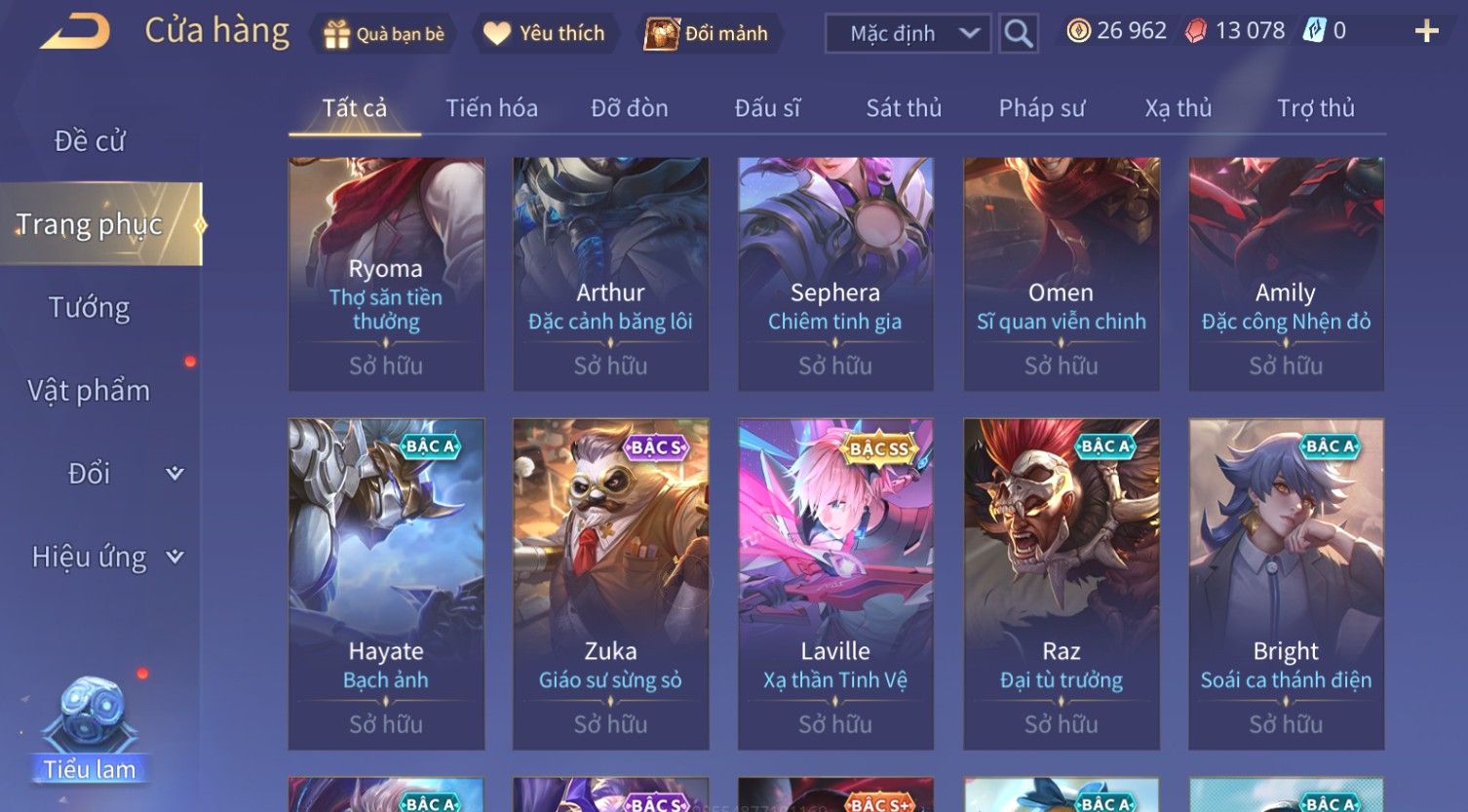 Nổi bật: Skin: Zephys Siêu Việt×Laville Xạ thần Tinh Vệ×Veres Gián Điệp Tinh Hệ×Murad Đặc Dị×