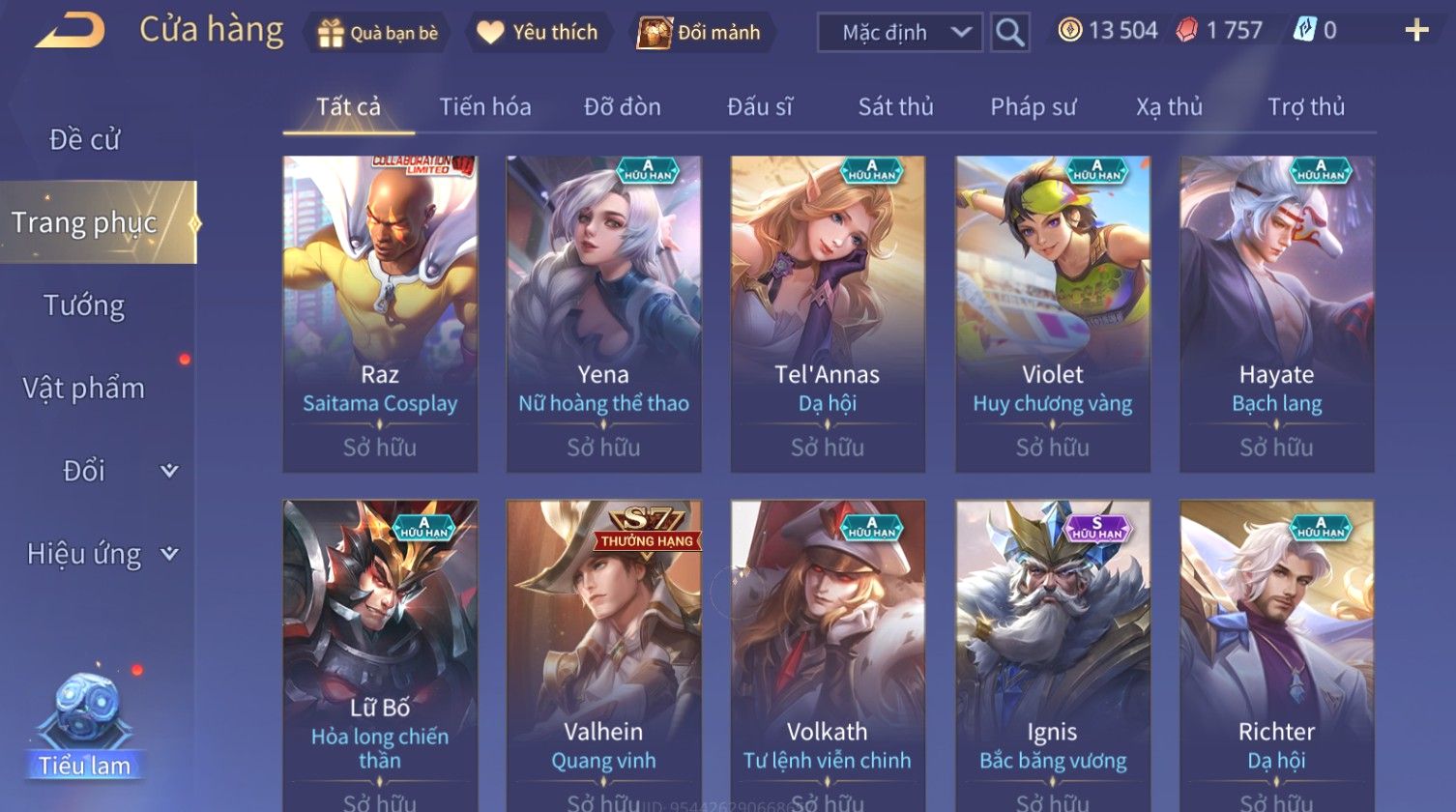 Nổi bật: Skin: Nakroth Lôi Quang Sứ×Raz Siêu Việt×Florentino Giám Sát Tinh Hệ×Violet Tiệc Bãi Biển×