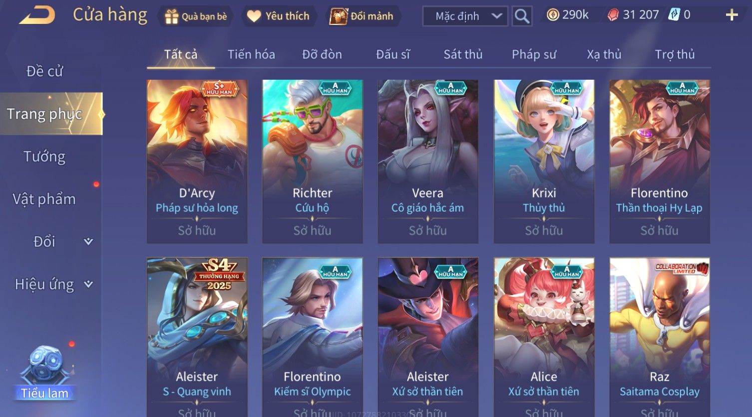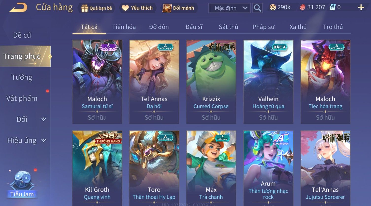 Nổi bật: Skin: Raz Chiến Thần Muay Thái×Yorn Long Thần Soái×Tulen Tân Niên Vệ Thần×Maloch Đại Tướng Rô Bốt×Ngộ Không Tân Niên Võ Thần×