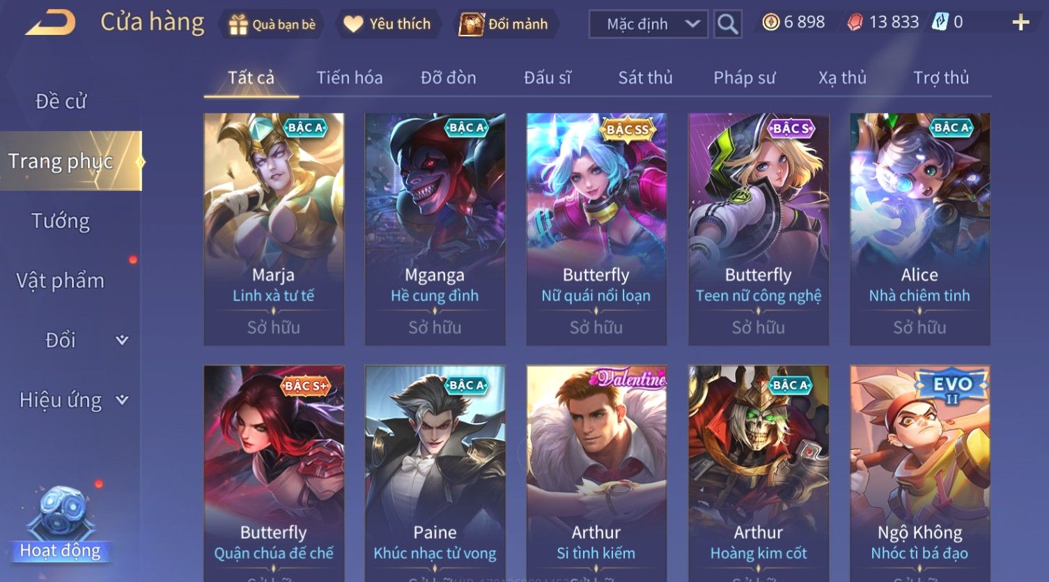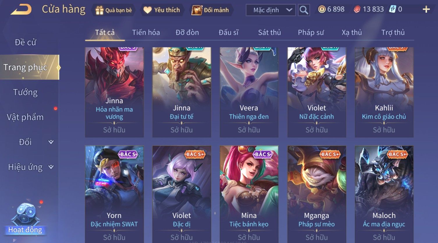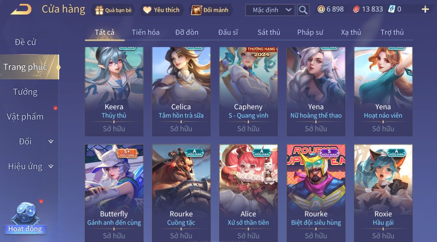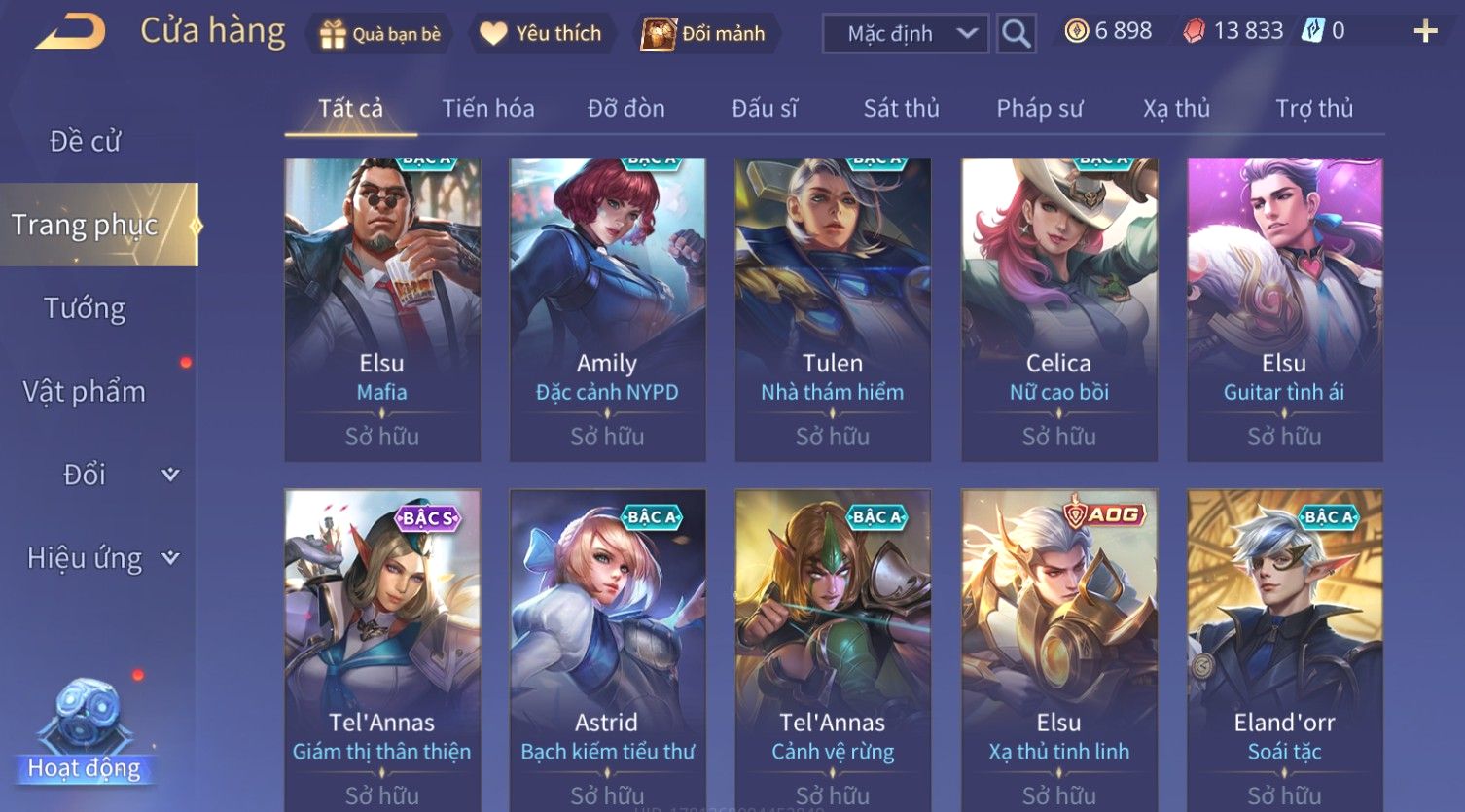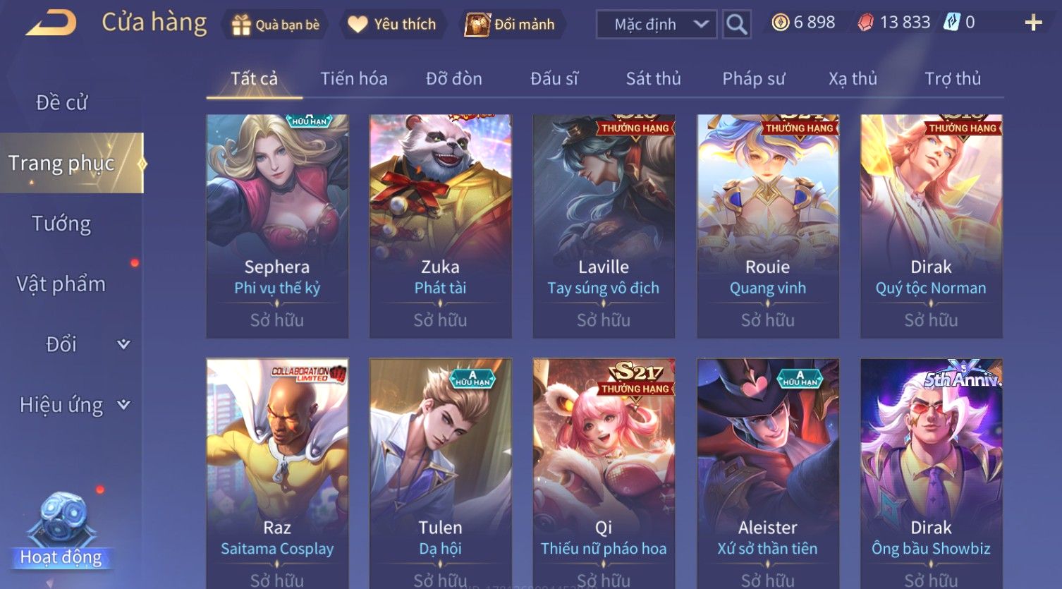 Nổi bật: Skin: Capheny Kimono×Raz Siêu Việt×Laville Xạ thần Tinh Vệ×Butterfly Nữ Quái Nổi Loạn×Omen Đao Phủ Tận Thế×Elsu Guitar Tình Ái×Full Ngọc, Nhiều Skin SS Đẹp