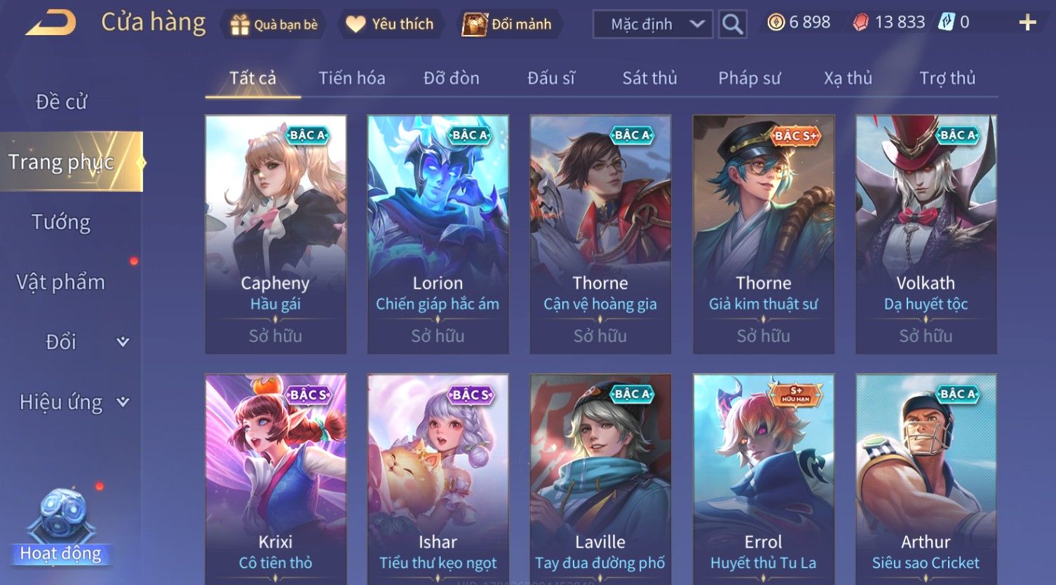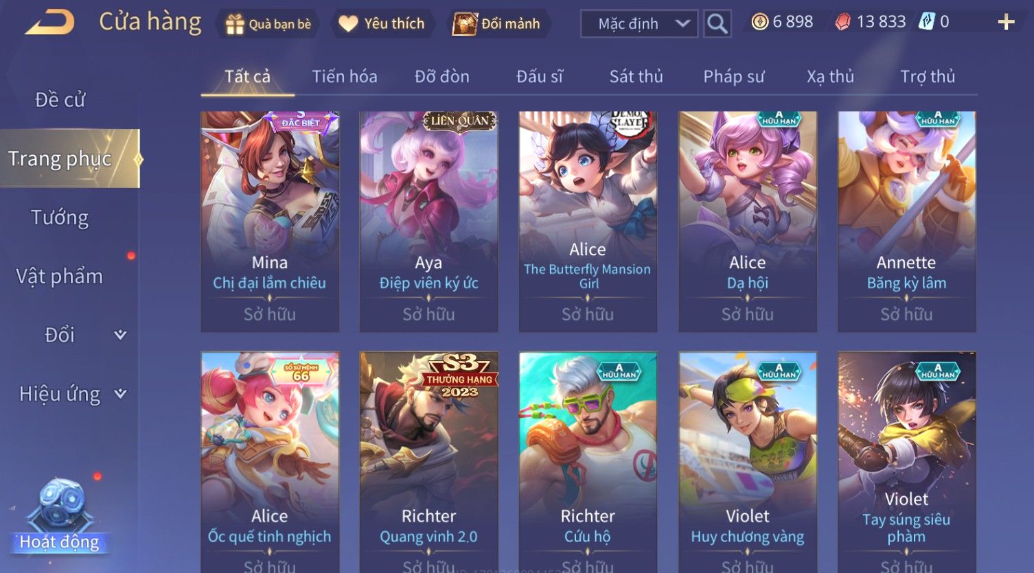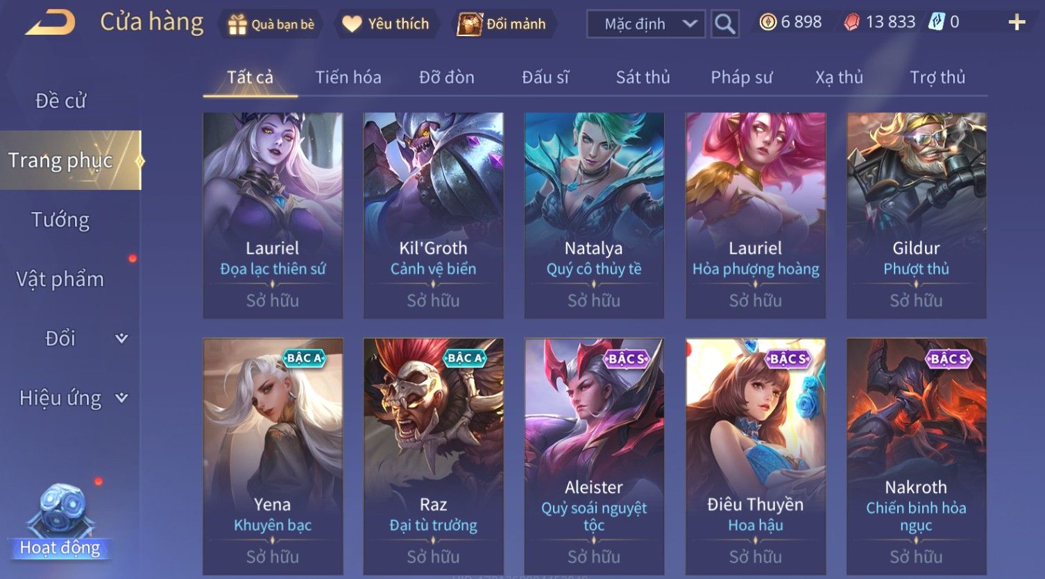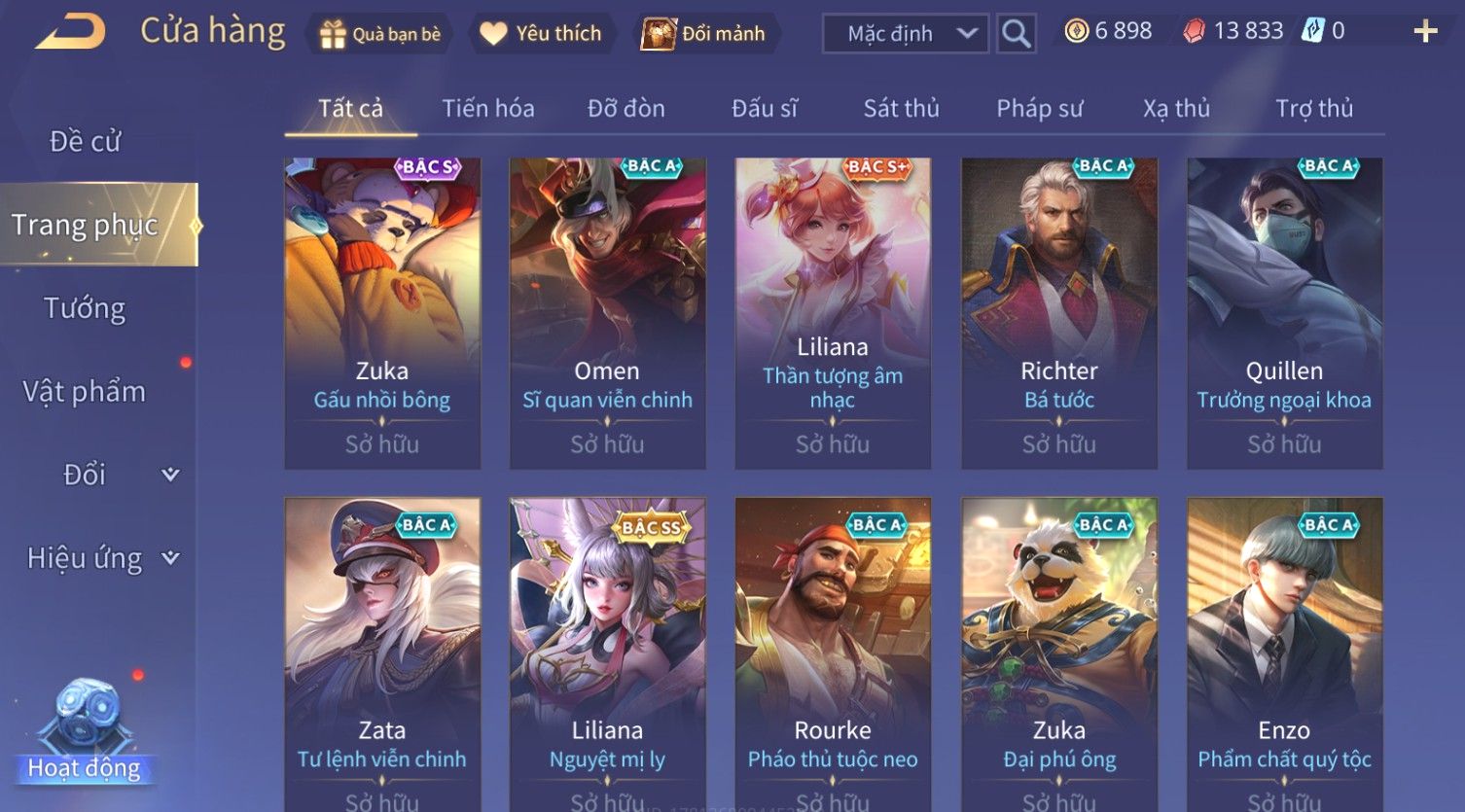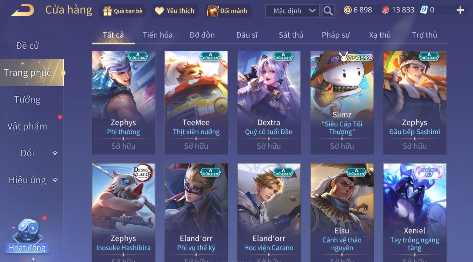 Nổi bật: Skin: Capheny Kimono×Raz Siêu Việt×Laville Xạ thần Tinh Vệ×Butterfly Nữ Quái Nổi Loạn×Omen Đao Phủ Tận Thế×Elsu Guitar Tình Ái×Full Ngọc, Nhiều Skin SS Đẹp