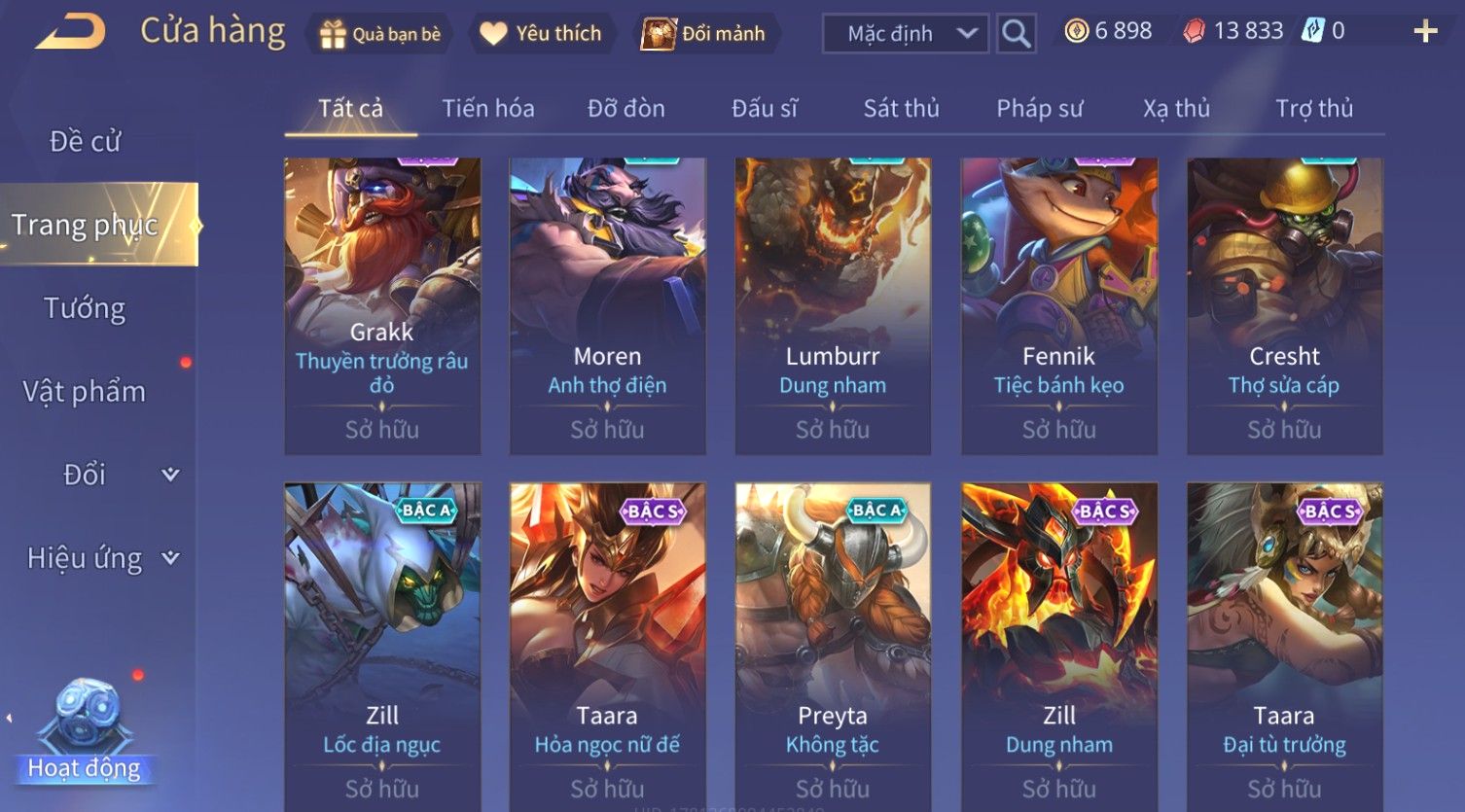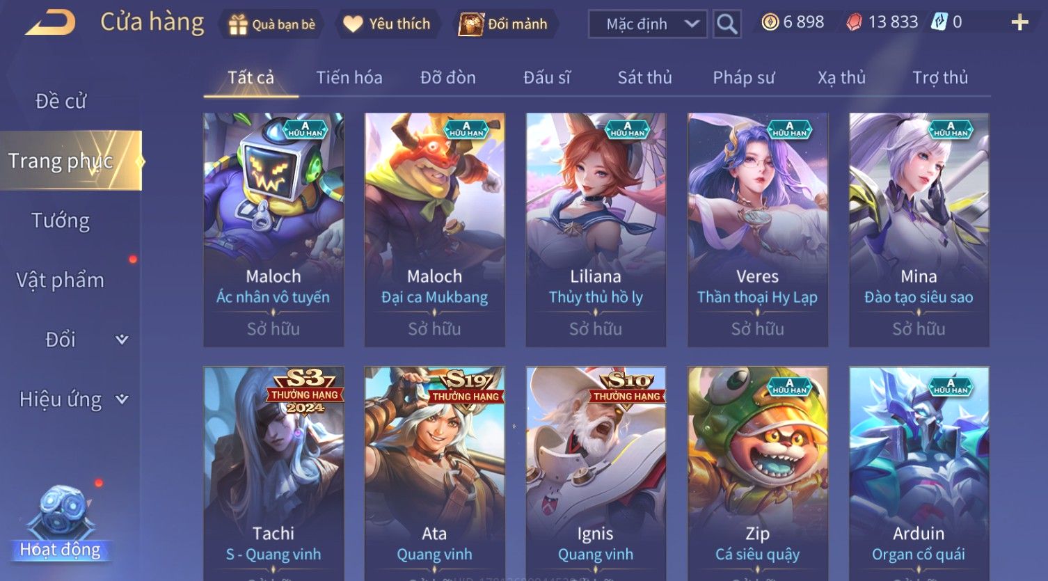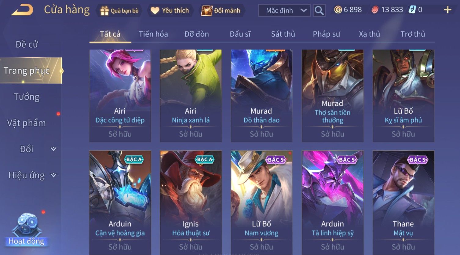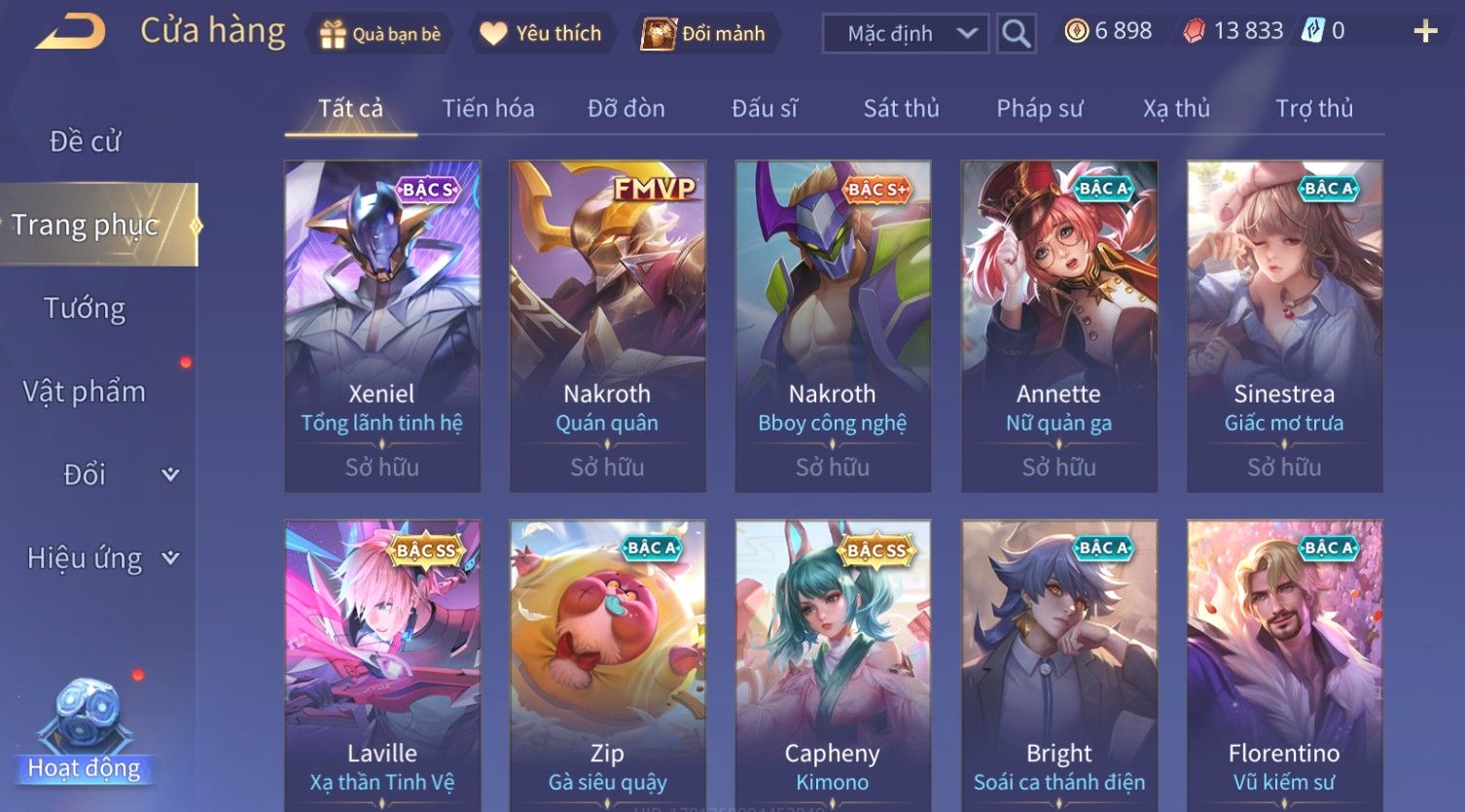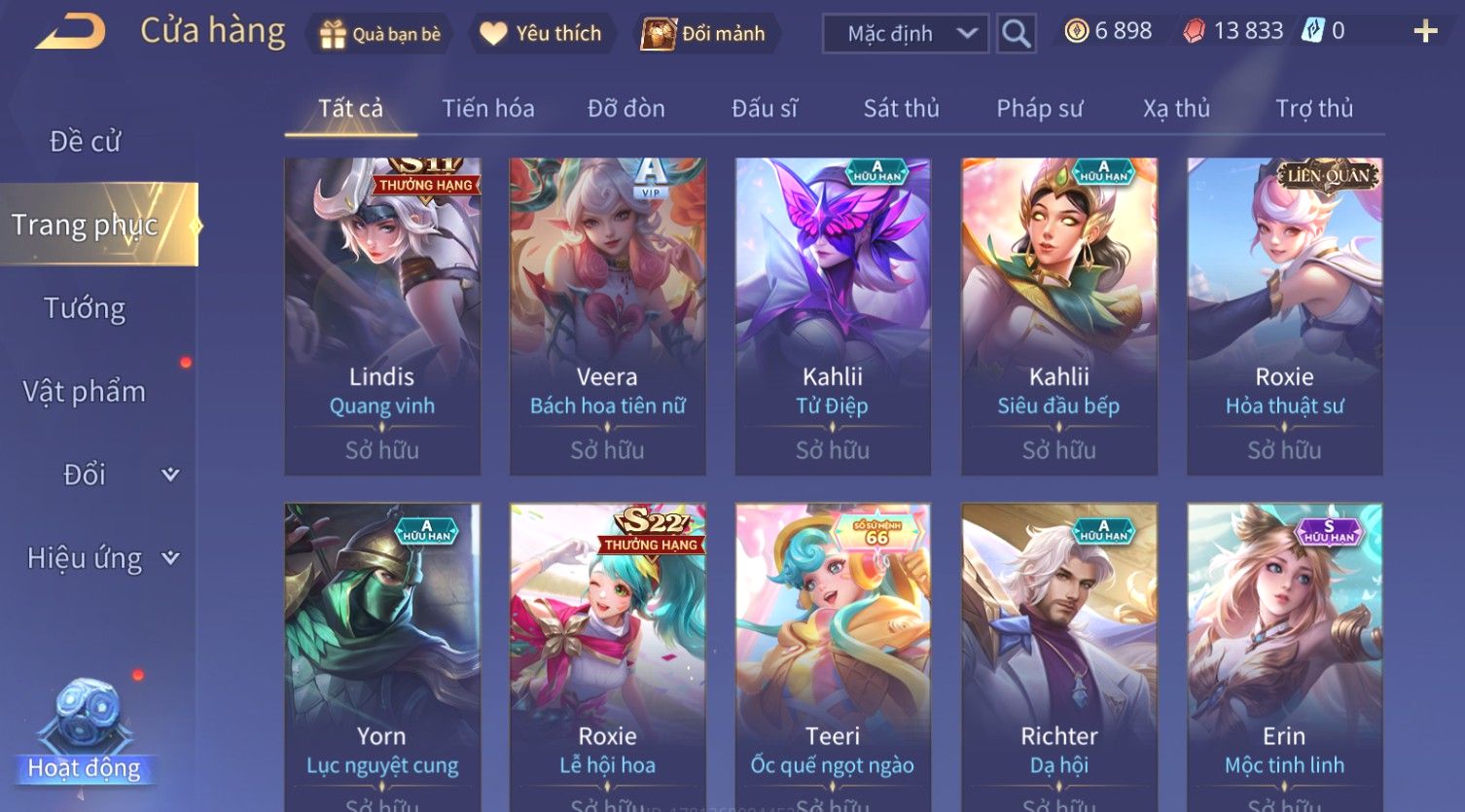 Nổi bật: Skin: Capheny Kimono×Raz Siêu Việt×Laville Xạ thần Tinh Vệ×Butterfly Nữ Quái Nổi Loạn×Omen Đao Phủ Tận Thế×Elsu Guitar Tình Ái×Full Ngọc, Nhiều Skin SS Đẹp