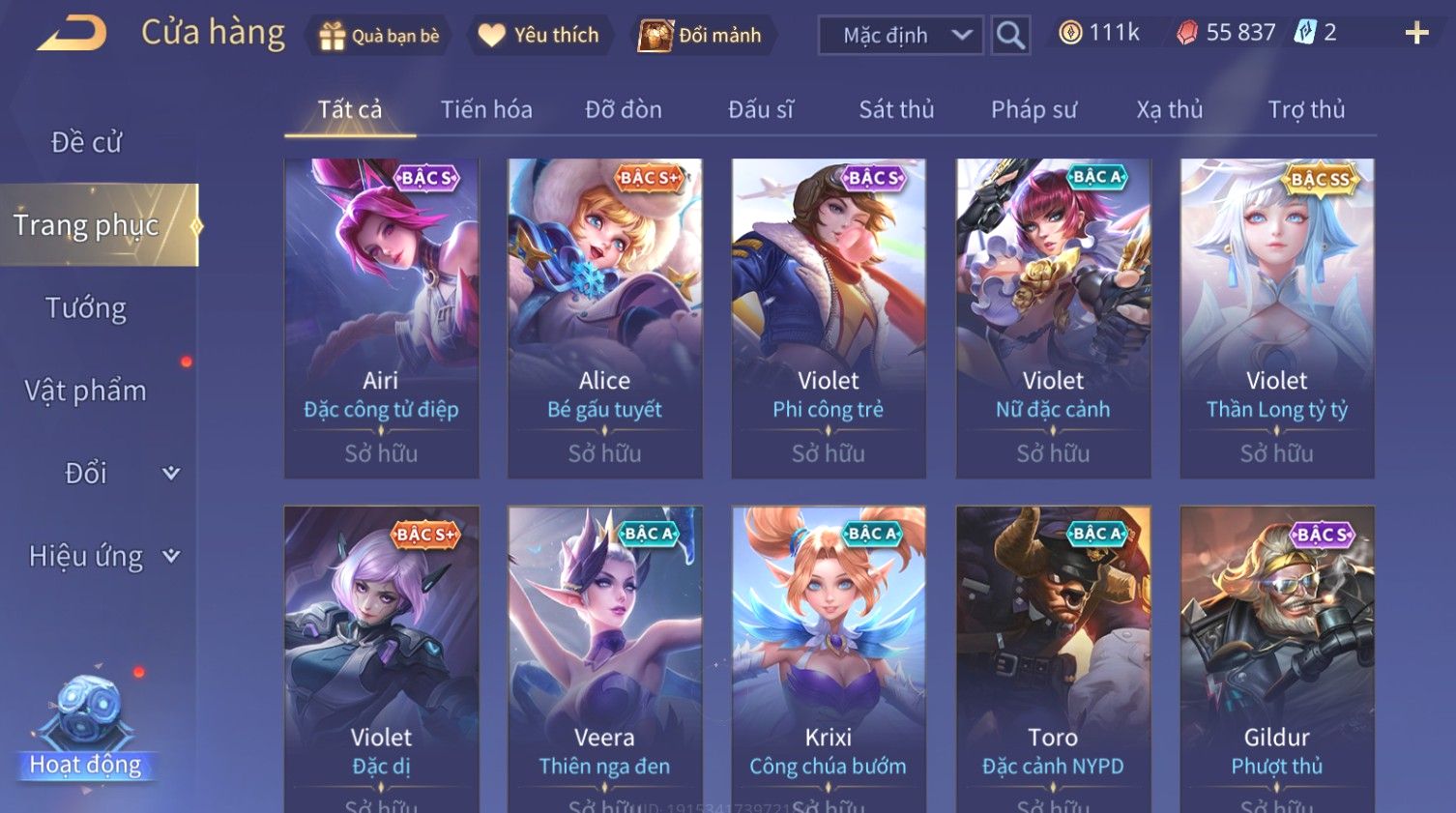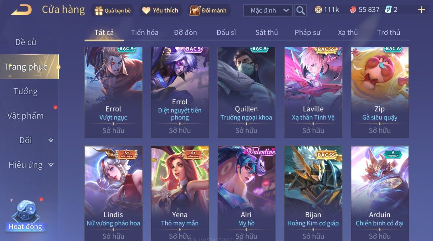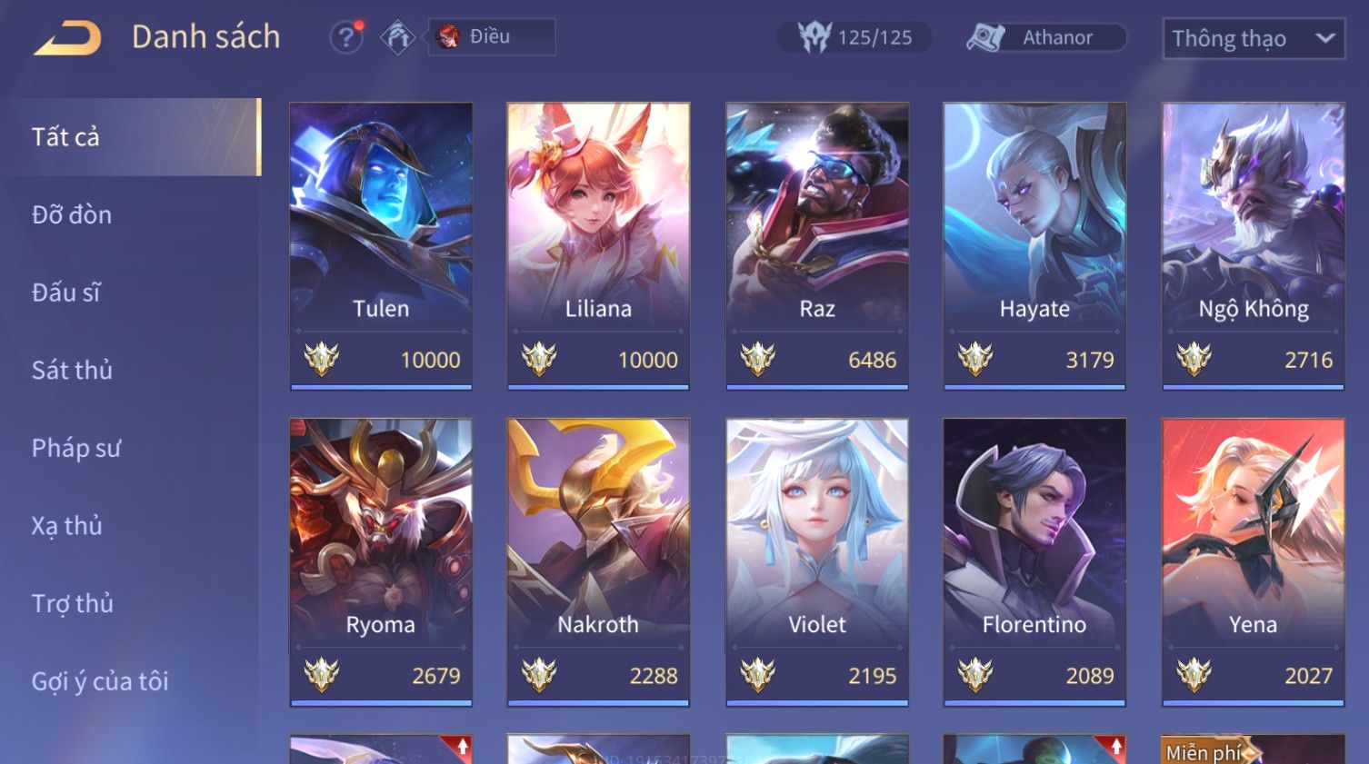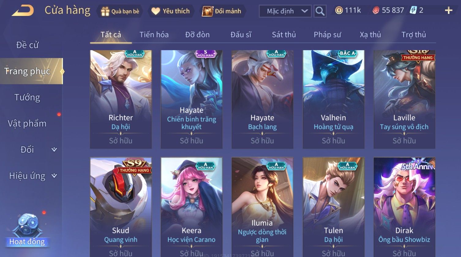 Nổi bật: Skin: Bijan Hoàng Kim Cơ Giáp×Laville Xạ thần Tinh Vệ×Violet Thần Long Tỷ Tỷ×Yena WaVe×Florentino Giám Sát Tinh Hệ×Hayate Chiến Binh Trăng Khuyết×Full Ngọc, Nhiều Skin SS Đẹp