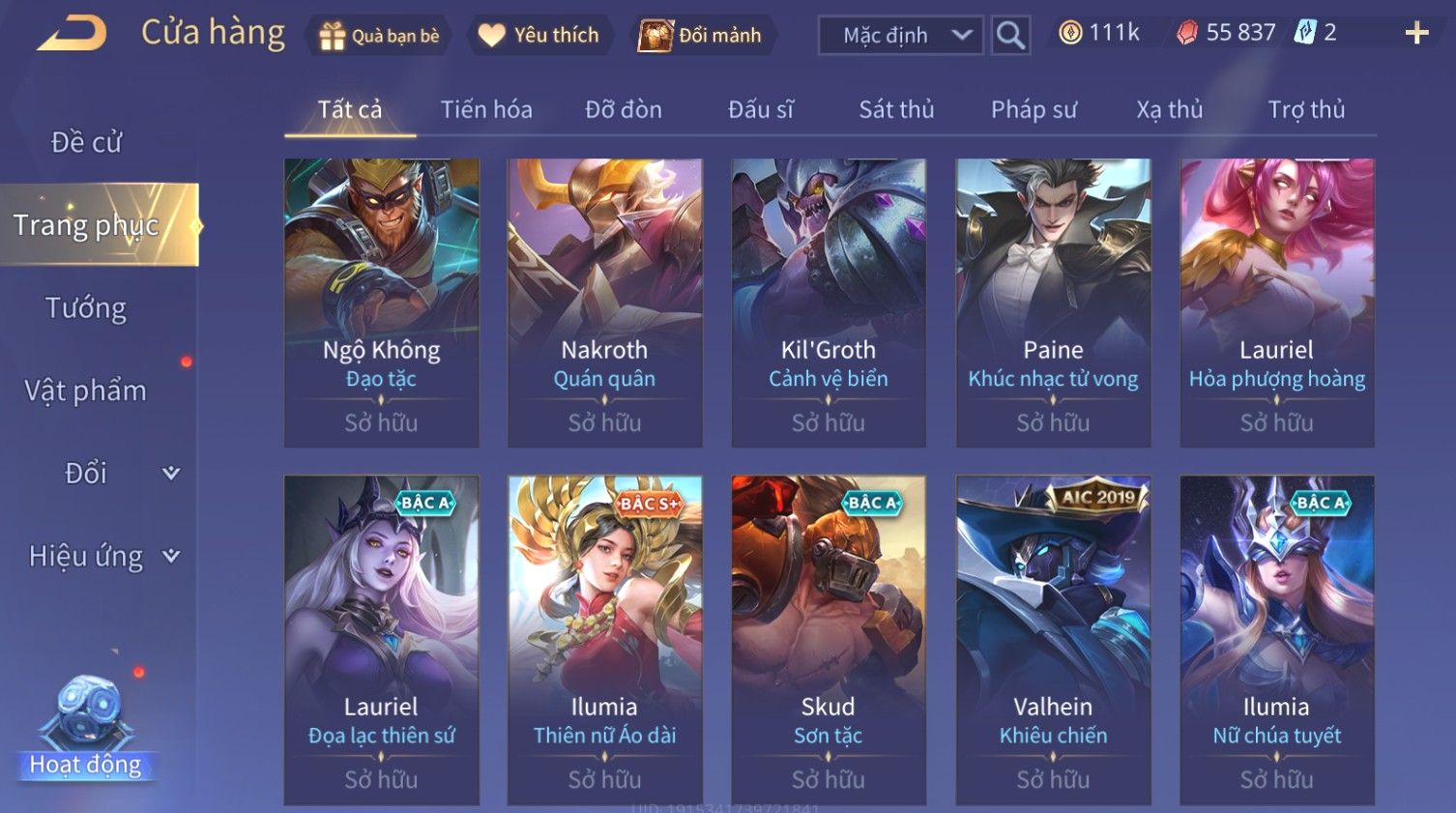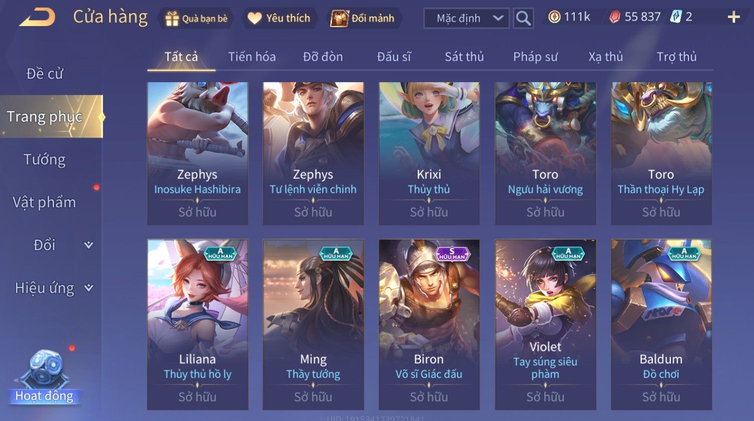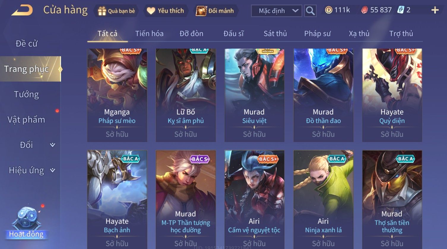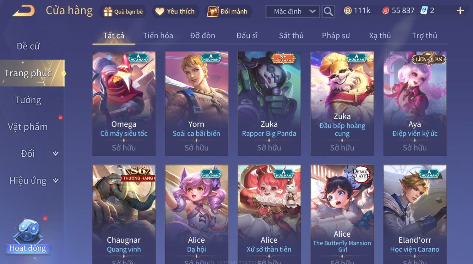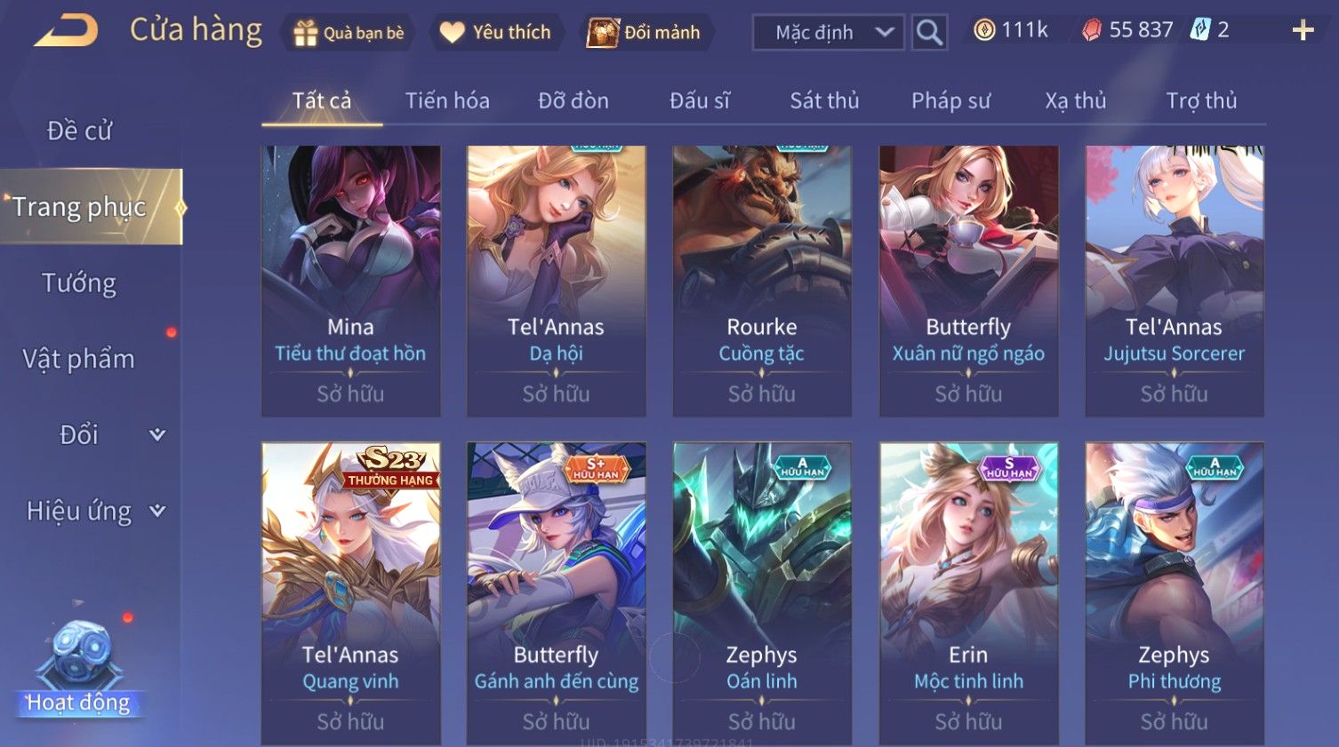 Nổi bật: Skin: Bijan Hoàng Kim Cơ Giáp×Laville Xạ thần Tinh Vệ×Violet Thần Long Tỷ Tỷ×Yena WaVe×Florentino Giám Sát Tinh Hệ×Hayate Chiến Binh Trăng Khuyết×Full Ngọc, Nhiều Skin SS Đẹp