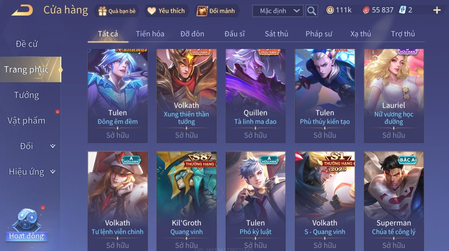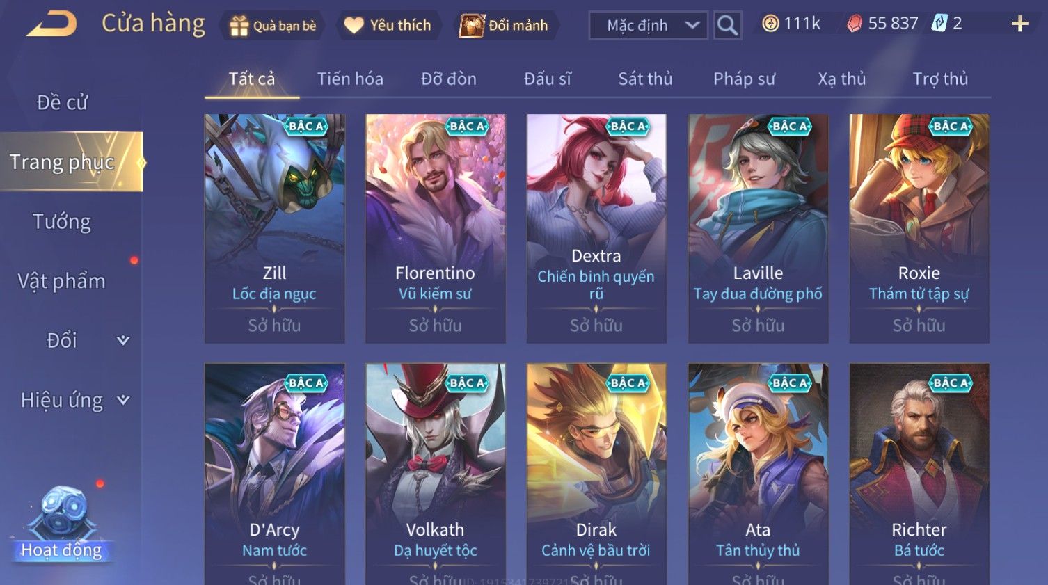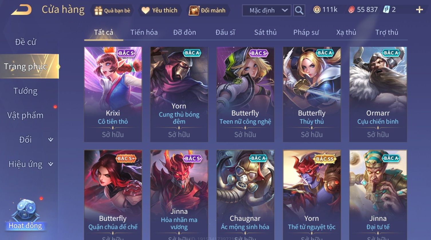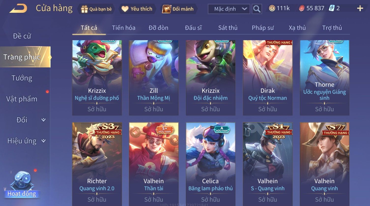 Nổi bật: Skin: Bijan Hoàng Kim Cơ Giáp×Laville Xạ thần Tinh Vệ×Violet Thần Long Tỷ Tỷ×Yena WaVe×Florentino Giám Sát Tinh Hệ×Hayate Chiến Binh Trăng Khuyết×Full Ngọc, Nhiều Skin SS Đẹp