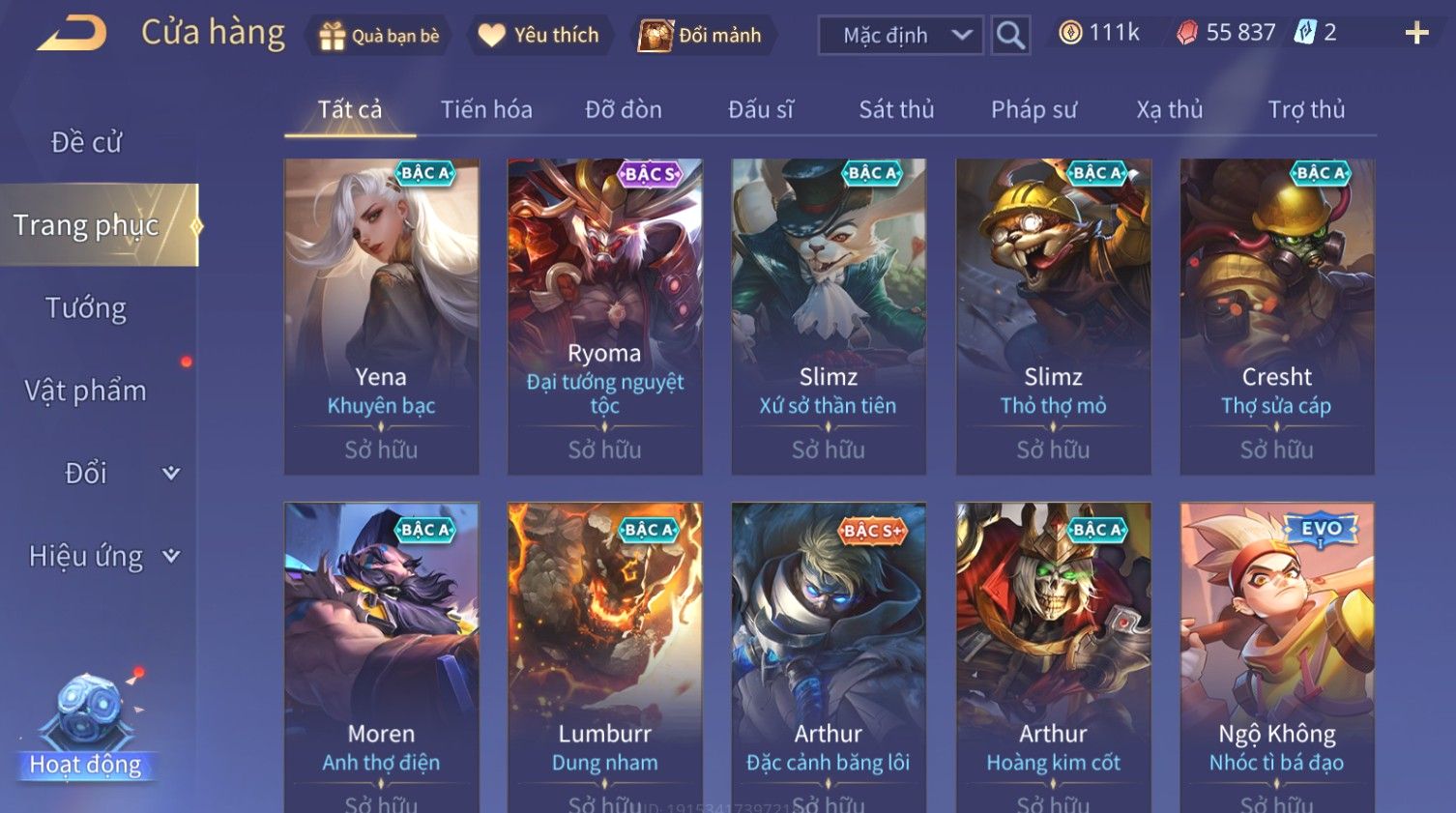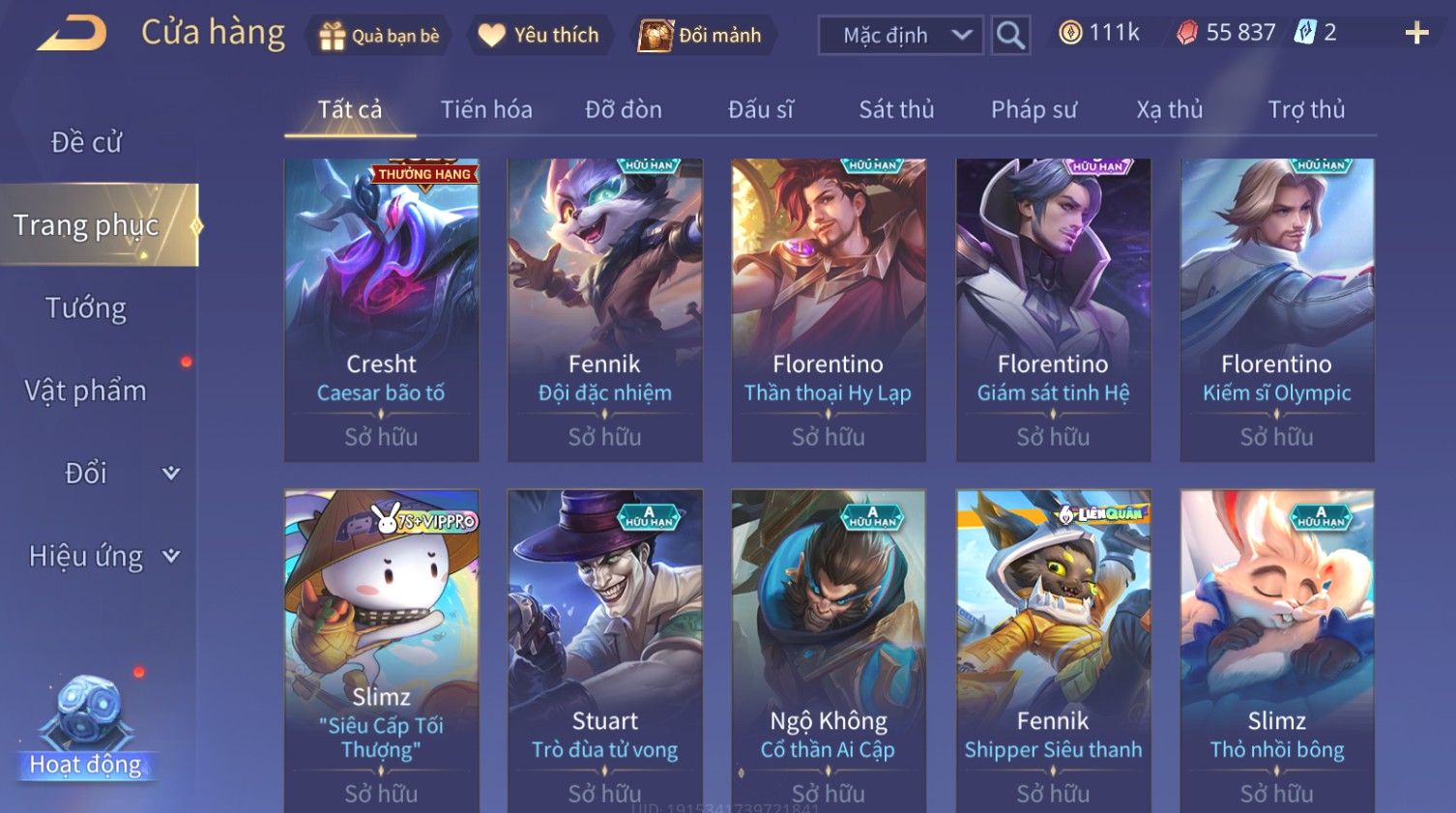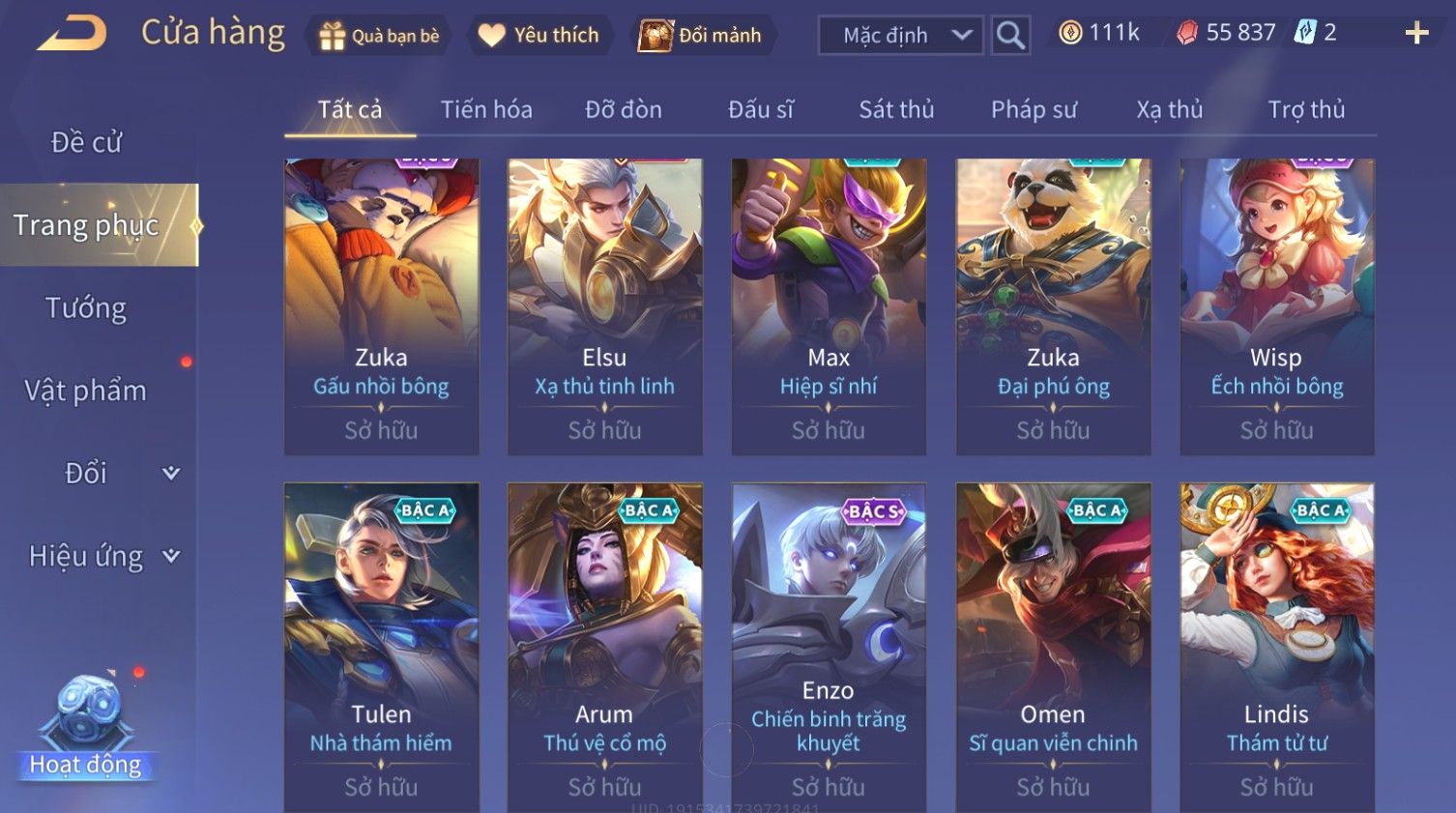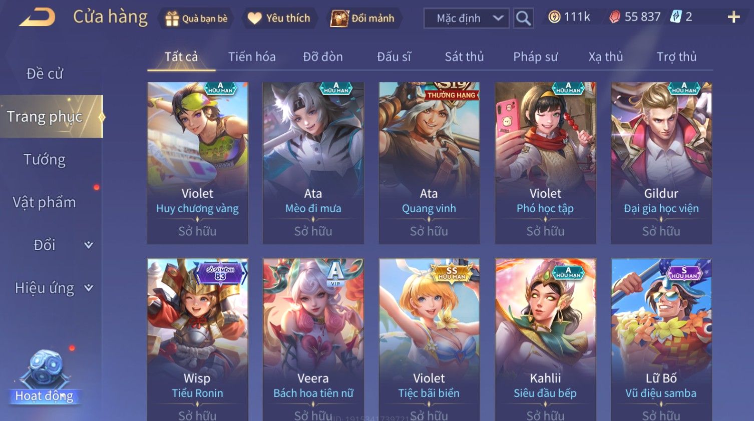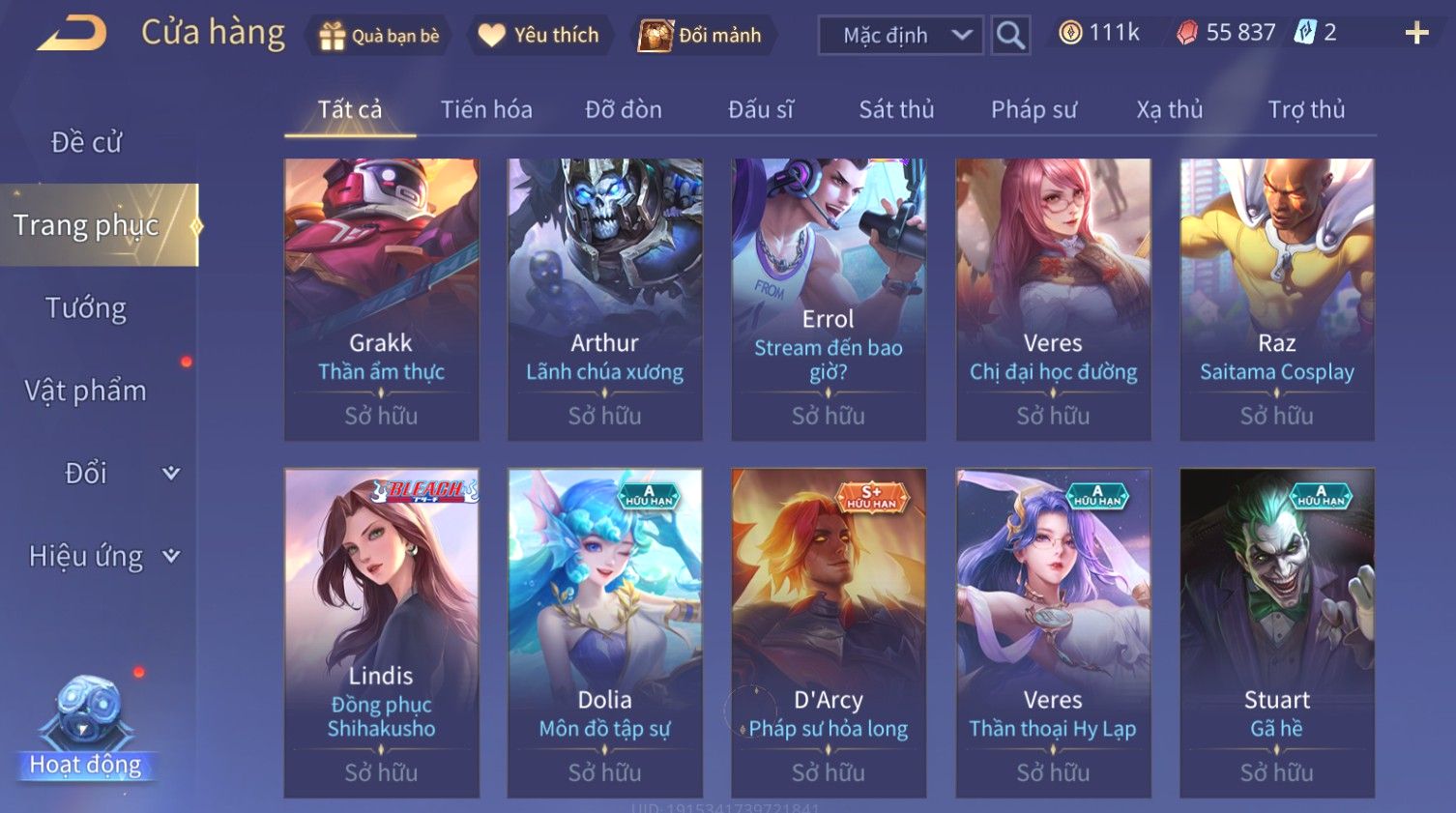 Nổi bật: Skin: Bijan Hoàng Kim Cơ Giáp×Laville Xạ thần Tinh Vệ×Violet Thần Long Tỷ Tỷ×Yena WaVe×Florentino Giám Sát Tinh Hệ×Hayate Chiến Binh Trăng Khuyết×Full Ngọc, Nhiều Skin SS Đẹp