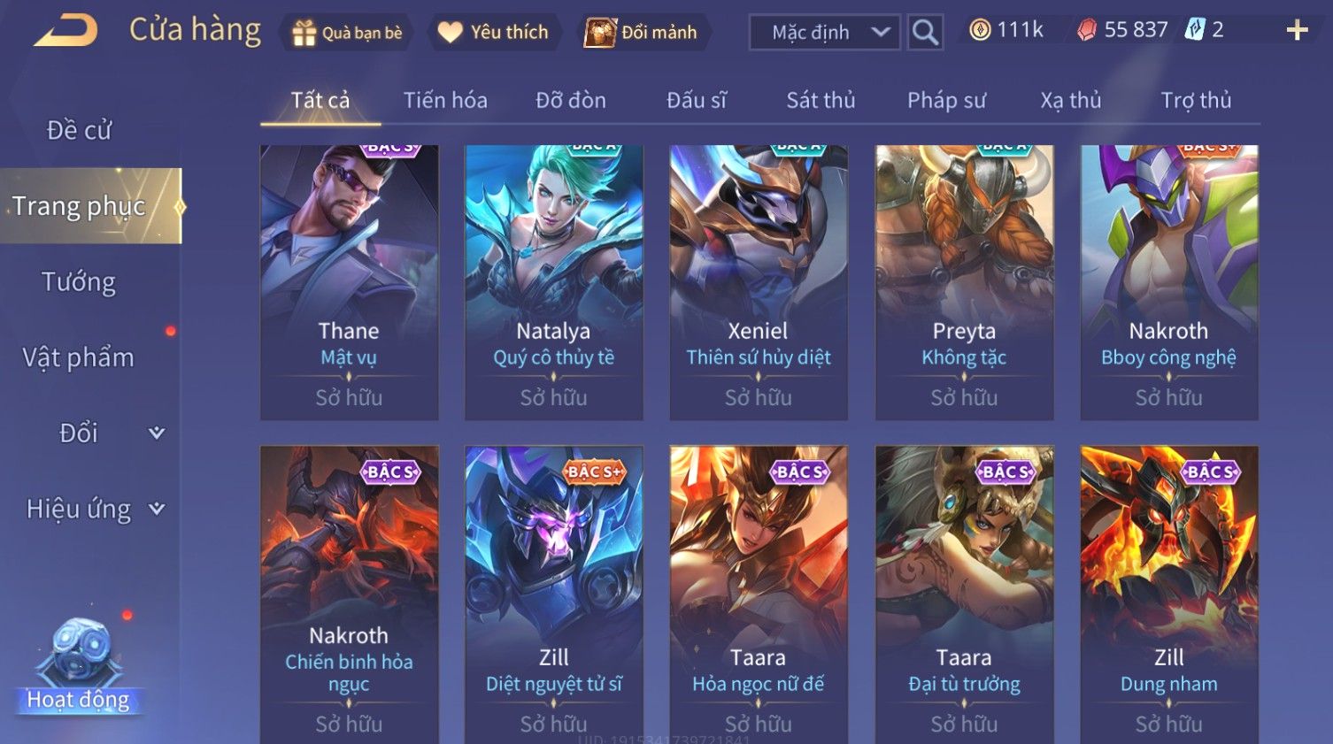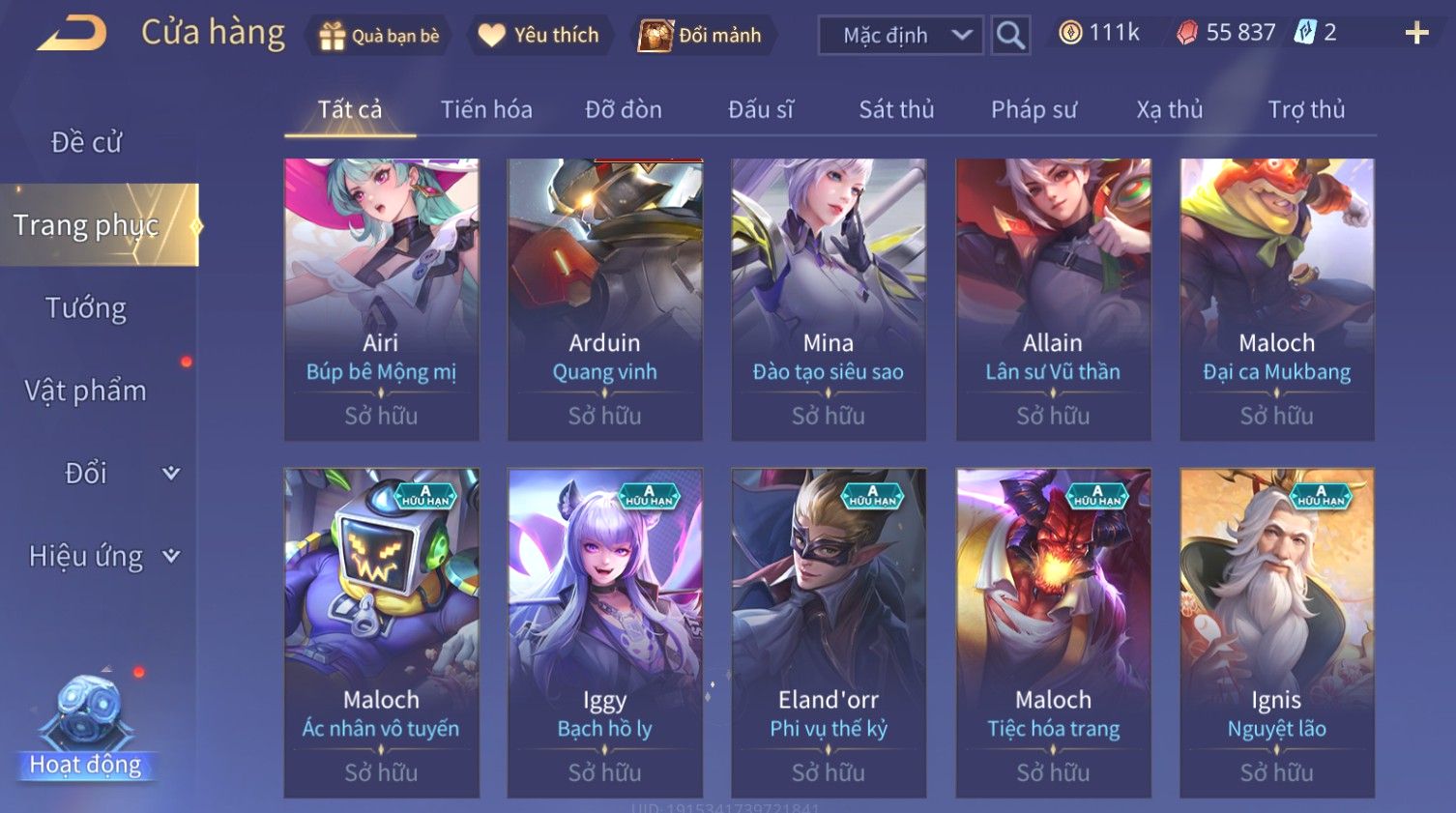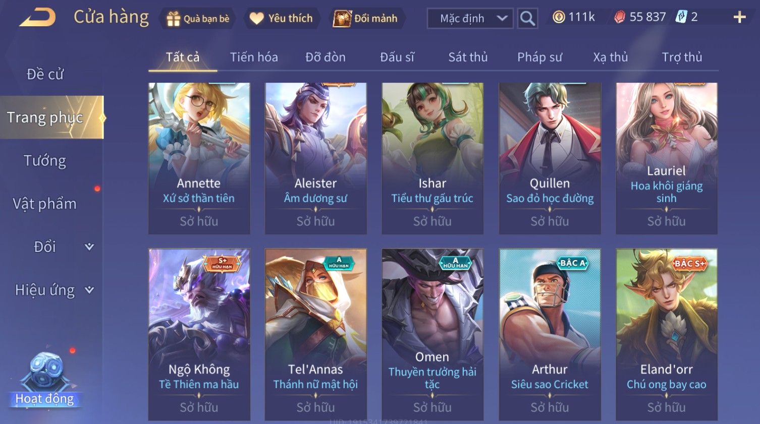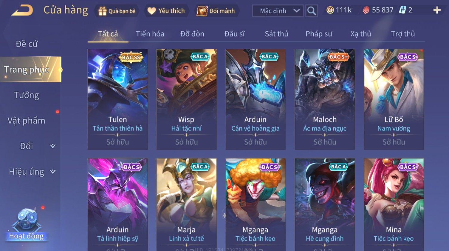 Nổi bật: Skin: Bijan Hoàng Kim Cơ Giáp×Laville Xạ thần Tinh Vệ×Violet Thần Long Tỷ Tỷ×Yena WaVe×Florentino Giám Sát Tinh Hệ×Hayate Chiến Binh Trăng Khuyết×Full Ngọc, Nhiều Skin SS Đẹp