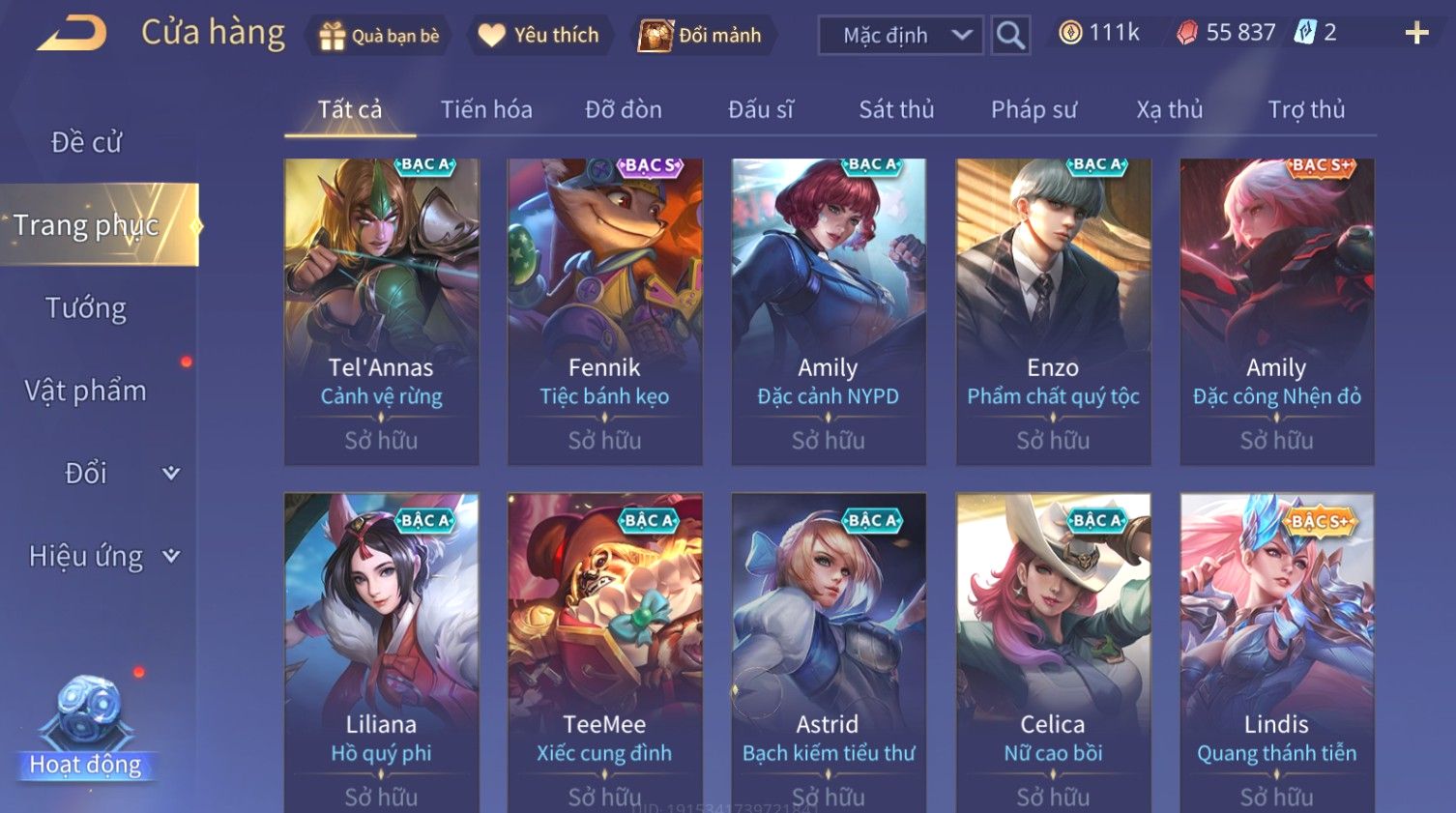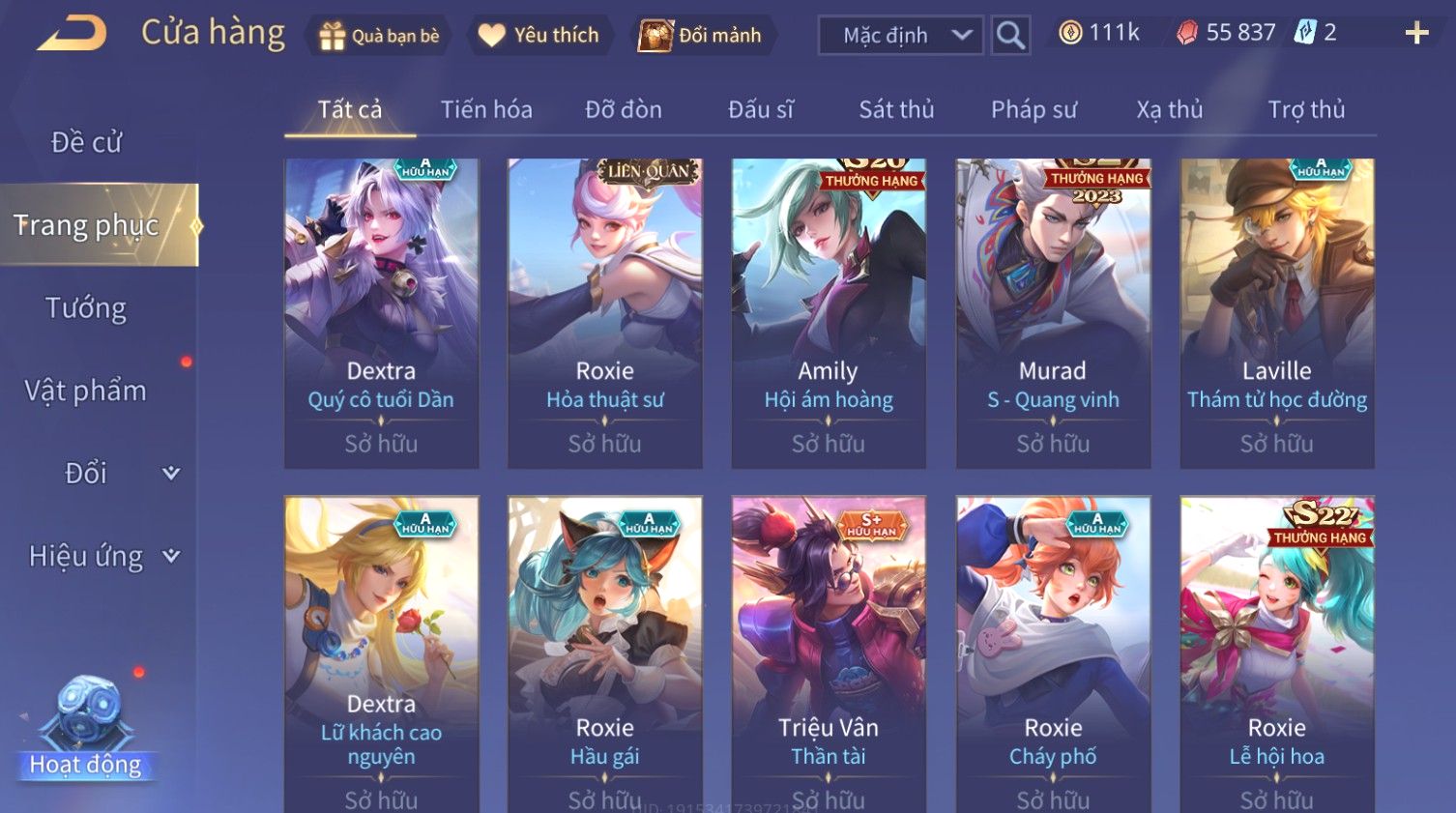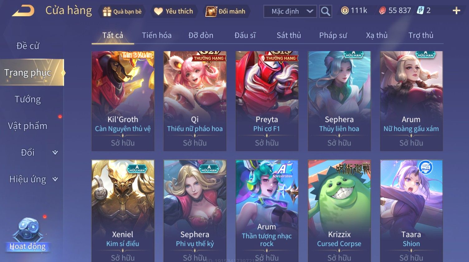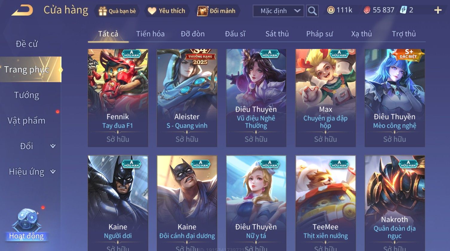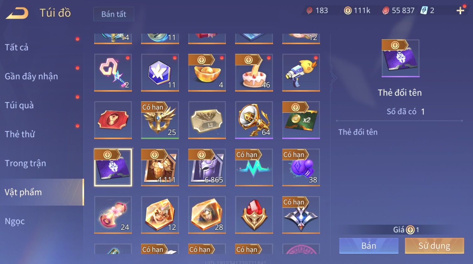 Nổi bật: Skin: Bijan Hoàng Kim Cơ Giáp×Laville Xạ thần Tinh Vệ×Violet Thần Long Tỷ Tỷ×Yena WaVe×Florentino Giám Sát Tinh Hệ×Hayate Chiến Binh Trăng Khuyết×Full Ngọc, Nhiều Skin SS Đẹp
