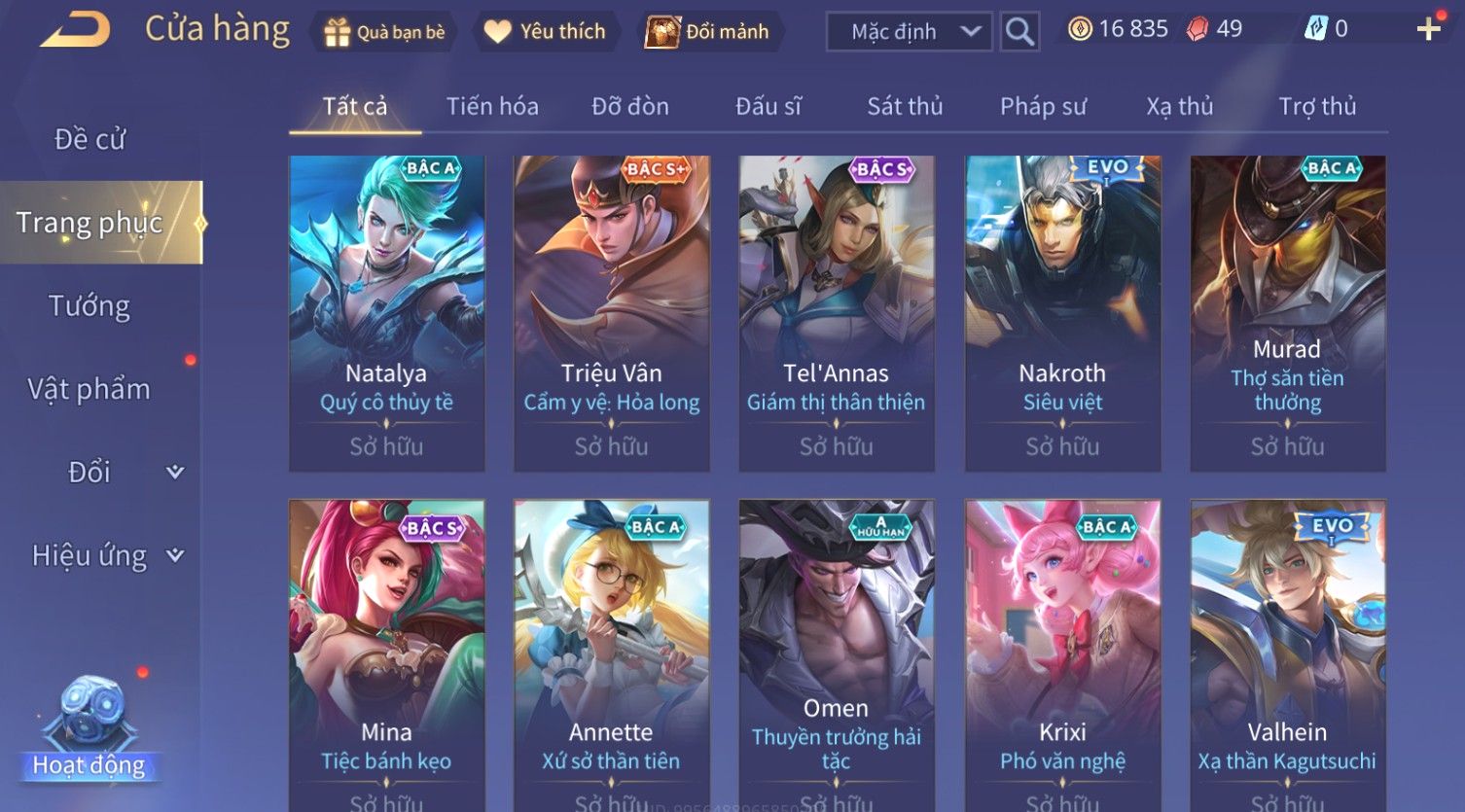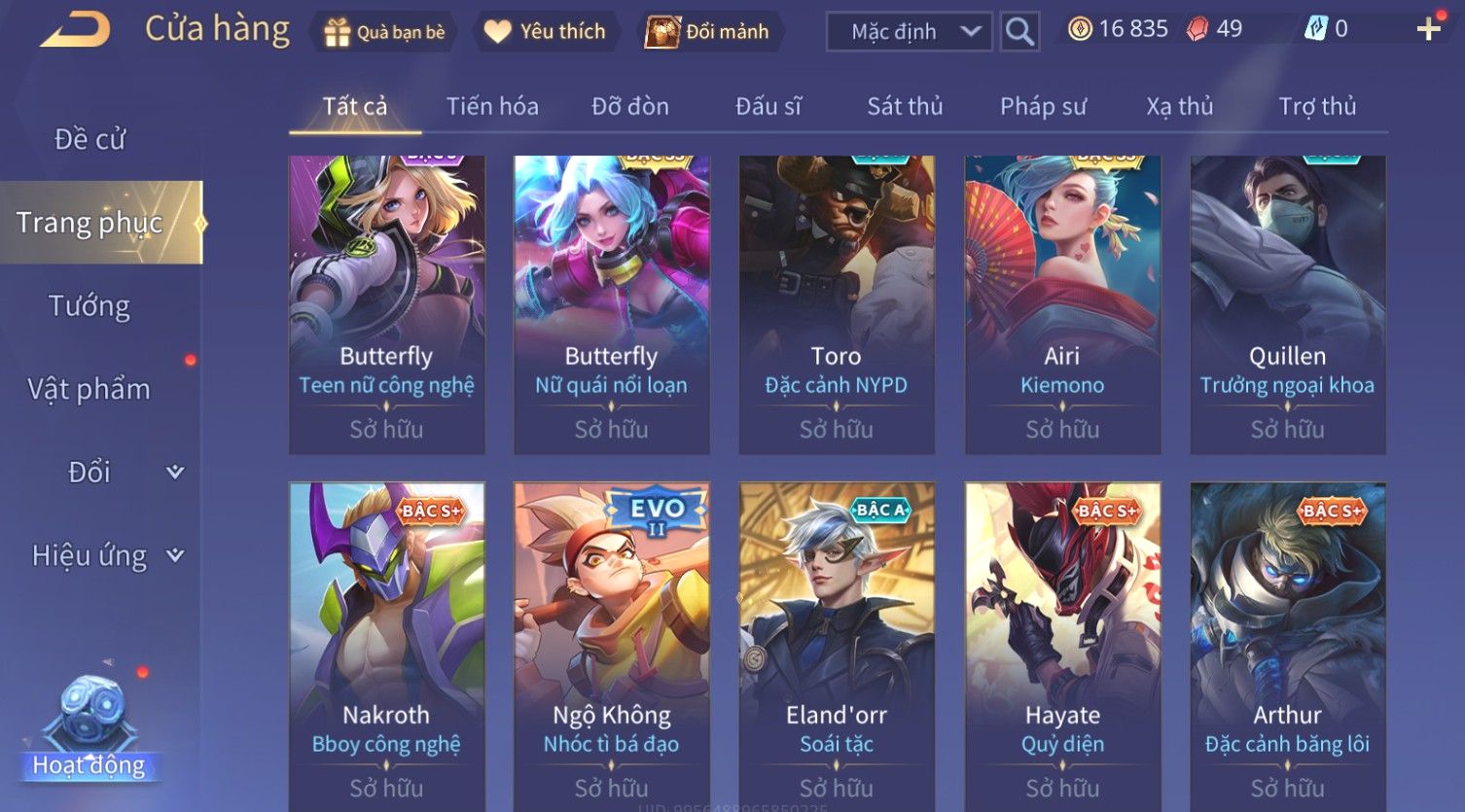 Nổi bật: Skin: Butterfly Nữ Quái Nổi Loạn×Airi Kiemono×Raz Siêu Việt×Tel'Annas Vũ Khúc Yêu Hồ×