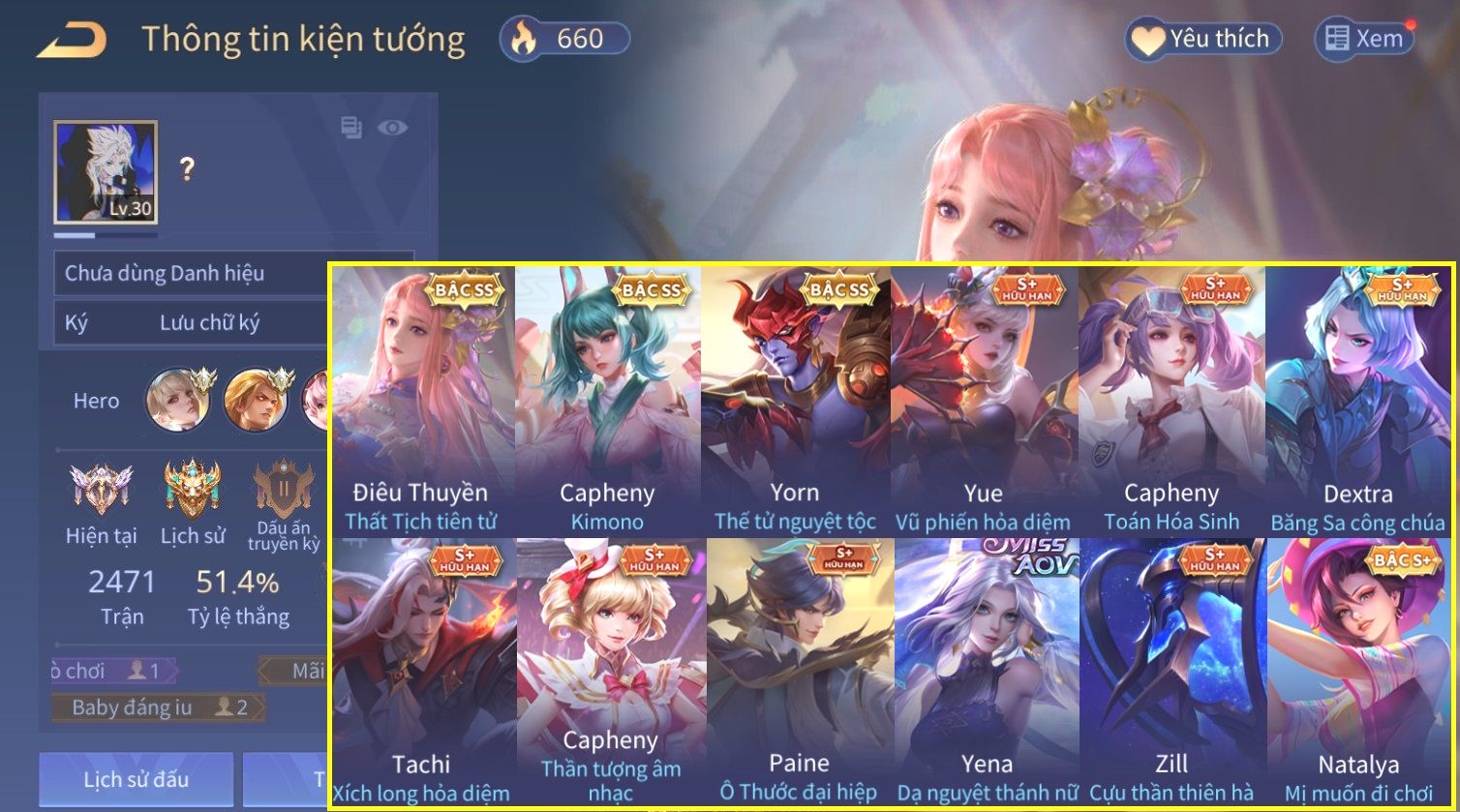 Nổi bật: Skin: Điêu Thuyền Thất Tịch Tiên Tử×Capheny Kimono×Capheny Toán Hóa Sinh×Yue - Vũ Phiếm Hỏa Diệm×Paine Ô Thước Đại Hiệp×